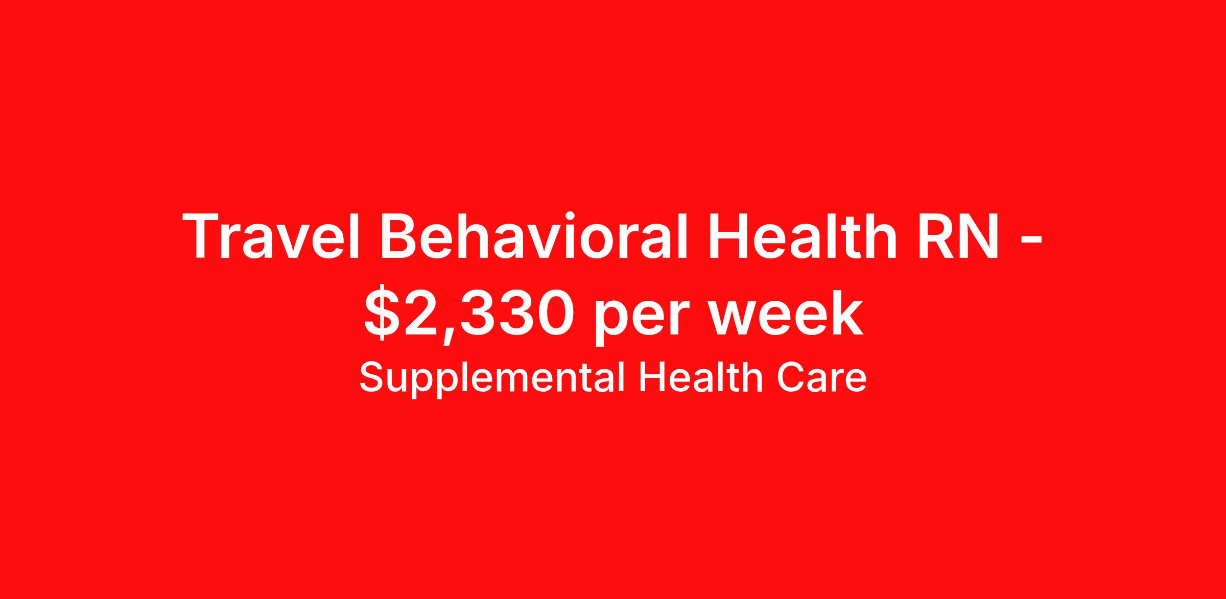 Supplemental Health Care is seeking a travel nurse RN Psychiatric for a travel nursing job in Concord, New Hampshire. Job Description & Requirements Specialty: Psychiatric Discipline: RN Start Date: ASAP Duration: 13 weeks 40 hours per week Shift: 8 hours, days Employment Type: Travel Job Description: Supplemental Health Care is hiring Psychiatric Registered Nurses for contract assignments at a partnering Behavioral Health facility in Concord, New Hampshire. Whether you’re looking to travel or stay local, we’re committed to helping Psych RNs find the right fit with top healthcare facilities across the country. With more than 40 years of experience in healthcare staffing, Supplemental Health Care offers reliable support, competitive pay, and great benefits every step of the way. Qualifications: New Hampshire RN License American Heart Association BLS 2 Years of recent nursing experience Prior Psych nursing experience preferred Psychiatric RN Contract Details: $2,128 - $2,330 per week* AM shift available 13-week contract with possibility to extend *Estimated weekly payment may include both taxable wages and tax-free reimbursements for meals, housing, and incidentals. Please speak with a recruiter for details. Skills Needed: Ability to review and implement Recovery/Treatment plans Ability to support medical and psycho-social care for members served Ability to administer oral and injectable medications Ability to act as a team member and provide input via reporting observations and concerns and asking appropriate questions Ability to review and implement recovery treatment plans for members served Demonstrated ability to implement physical crisis and de-escalation techniques Apply today to get started with this Psychiatric RN contract opportunity, or talk to our team about the full range of Registered Nurse opportunities available. What We Offer: Full medical, dental, vision, life, and even pet insurance! Round the clock support. No matter where you are or what time it is, Supplemental Health Care is standing by. SHC's Share the Care referral program is the most dynamic, profitable referral program in the industry. 401(k) Retirement Savings Program with a wide range of investment options. Discounted and free online access to CEU courses through Supplemental University. Supplemental Health Care is an Equal Opportunity Employer. All candidates, including veterans and those with disabilities, are encouraged to apply. SHC will consider for employment qualified applicants with criminal histories in a manner consistent with the requirements of applicable local, state, or federal law. To learn more, visit www.shccares.com/eeo Supplemental Health Care Job ID 1471486. Pay package is based on 8 hour shifts and 40 hours per week (subject to confirmation) with tax-free stipend amount to be determined. Posted job title: Psych Registered Nurse - RN About Supplemental Health Care At Supplemental Health Care, a simple belief in the power of caring guides a unique commitment to world-class service in healthcare staffing. For 40 years, we’ve supported talented professionals pursuing their life calling in hospitals, schools, home health, corrections, behavioral health, and other settings. At SHC, we inspire vital connections and enrich lives and inspire better outcomes. As recipients of the Best in Staffing Awards for both Client and Talent, Supplemental Health Care is proud to be among only 2% of staffing companies singled out for the distinction based on the real feedback of our employees and the clients we serve. SHC has also earned The Joint Commission’s Gold Seal of Approval and is named among the Largest Health Care Staffing companies in the United States by Staffing Industry Analysts. We are also thrilled to recognize our very own SLP, Dr. Kelly Byrd as the American Staffing Association 2024 National Staffing Employee of the Year and Health Care Sector All-Star. We’re honored to connect Dr. Byrd to employment, share her incredible story, and support her family literacy nonprofit. For everyone that we serve, SHC is the place where caring hearts thrive. Benefits Referral bonus Benefits start day 1 401k retirement plan Continuing Education Discount program Health savings account