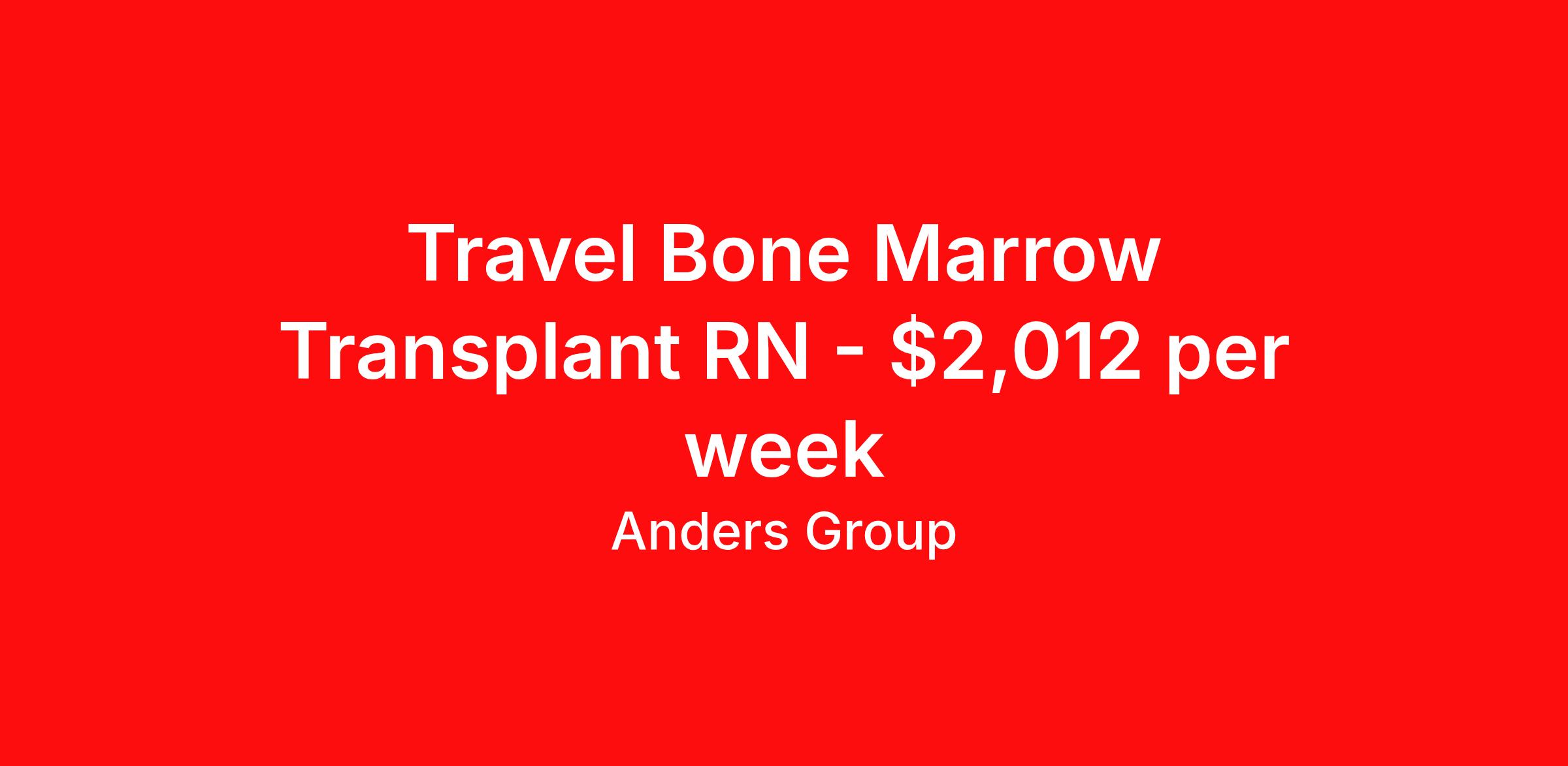 Travel Bone Marrow Transplant RN - $2,012 per week
