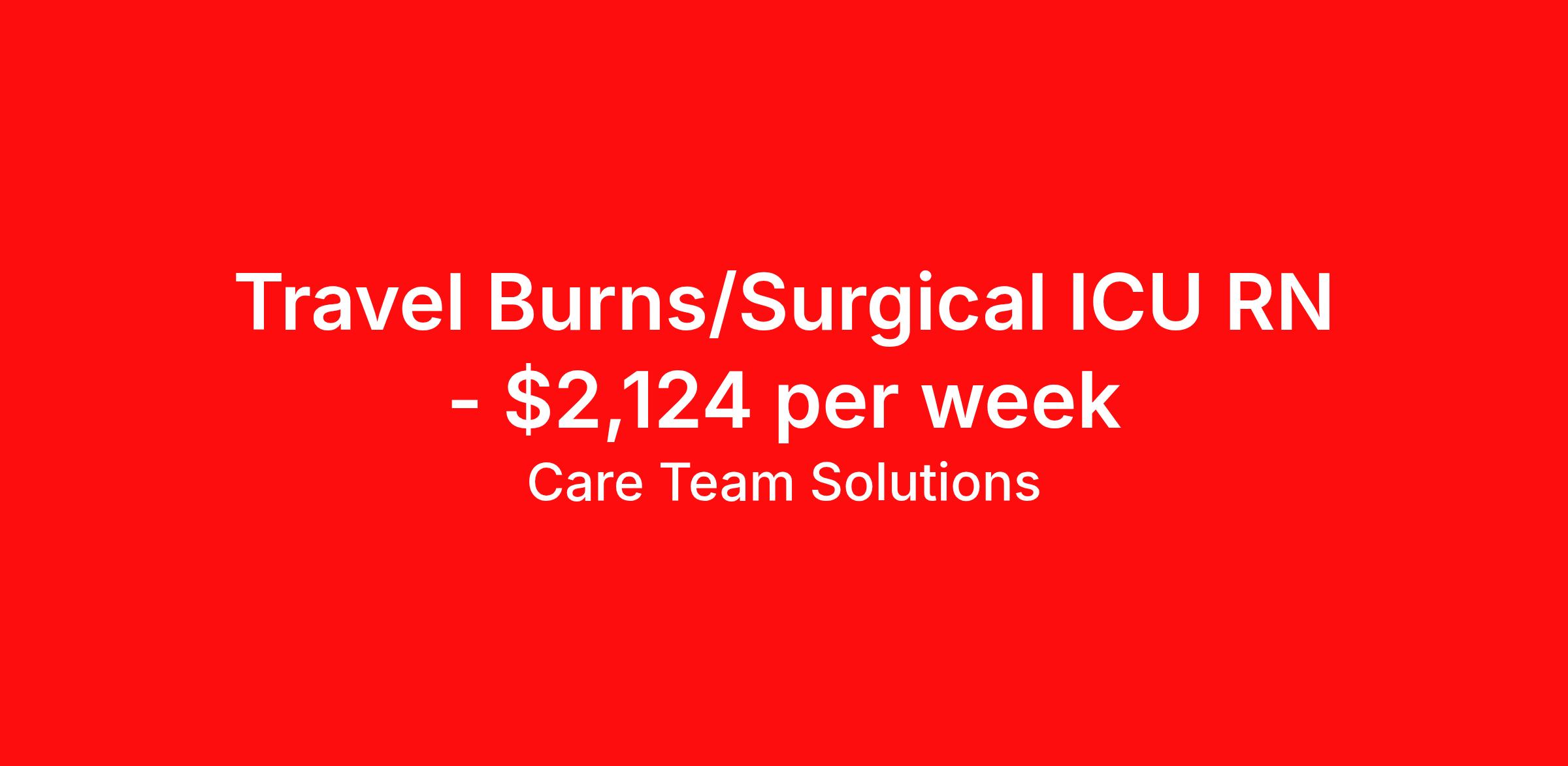 Care Team Solutions is seeking a travel nurse RN SICU - Surgical Intensive Care for a travel nursing job in Boston, Massachusetts. Job Description & Requirements Specialty: SICU - Surgical Intensive Care Discipline: RN Start Date: 04/12/2026 Duration: 13 weeks 36 hours per week Shift: 12 hours Employment Type: Travel Registered Nurse must have 2 years of recent experience in particular specialty Details: Must Have 2 Years of recent Intensive Care Unit experience. Specialty: Intensive Care Unit Discipline: Registered Nurse Start Date: 2026-04-12 Duration: 15 Weeks Shift: Hours Overnight shift. Hours Per Week: 36 Hours Employment Type: Contract Gross Weekly Pay: $2123.82 Six things that won’t happen if you apply to this job: You won’t have to guess what the downsides are. We’ll tell you up front. You won’t show up on day 1 and find out this is not what you signed up for. We won't leave your phone call ringing when it's inconvenient. Business hours for you are business hours for us. You won’t get shuffled to some customer service rep when a problem pops up. If we screw up something in securing your placement, we'll own it. That means it's on us to make it right. You won’t figure out your credentials alone. Our credentialing experts will walk you through it step by step. We've talked to thousands of travel nurses like you. We know you want good pay. You want to choose when you work. But the one thing nurse after nurse has said they want and don't have is someone in their corner. There's a lot in this business that’s messed up. We’re trying to be the people that fix it. You and every nurse with the guts to travel deserve it. We've worked hard for you to enjoy some one-of-a-kind benefits you'll not likely find anywhere else, because they benefit you more than they benefit us: Our early pay program Student loan reimbursement Free well-being tele-visits with a psychologist Care Team Solutions Job ID 583873. Pay package is based on 12 hour shifts and 36 hours per week (subject to confirmation) with tax-free stipend amount to be determined. Posted job title: Ellison 14 - Burns/Surgical ICU RN - Rotating About Care Team Solutions Two brothers who give an enormous damn. We're Justin and Kyle. Neither of us are nurses. It doesn’t take a nurse to see that the way travel nurses are treated sucks. Nursing is already hard enough. Travel nursing takes serious guts. You get the toughest assignments in places you’ve never been. Which can be fun, but it’s also stressful. You’re in your element but outside of your hometown. You can be a stranger on the team. If anyone deserves someone in their corner, it’s you. But that’s not how most agencies operate. Which is why travel nurses hate working with them. We got into this business because we saw bucket-loads of nurses moving through the "churn and burn" travel machinery. We absolutely hate that. You'll do your best work when you have the placements you want and feel fully supported in your work. We pay our people well because we want them to treat you well. Our recruiters are amazing (we picked each of them ourselves), but if you've got a problem too big for them, they can come straight to us. We work like ten feet away. The "Churners and Burners" promise you the same benefits. They might as well copy/paste them from each other. We have them too: 401k, holiday pay, healthcare, dental, travel reimbursement, etc But we've worked hard for you to enjoy some one-of-a-kind benefits you'll not likely find anywhere else, because they benefit you more than they benefit us: Our early pay program Student loan reimbursement Free well-being tele-visits with a psychologist Benefits Weekly pay Holiday Pay Guaranteed Hours 401k retirement plan Wellness and fitness programs Referral bonus Medical benefits Dental benefits Vision benefits School loan reimbursement
