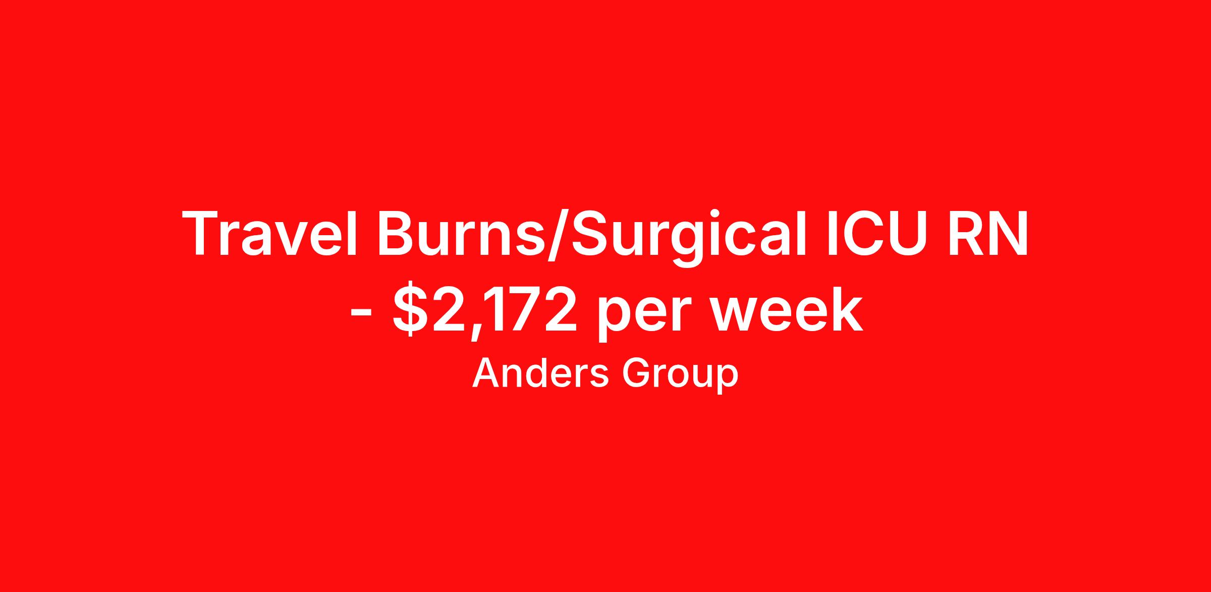 Anders Group is seeking a travel nurse RN SICU - Surgical Intensive Care for a travel nursing job in Boston, Massachusetts. Job Description & Requirements Specialty: SICU - Surgical Intensive Care Discipline: RN Start Date: 04/12/2026 Duration: 13 weeks 36 hours per week Shift: 12 hours Employment Type: Travel Anders Group Job ID 994177. Pay package is based on 12 hour shifts and 36 hours per week (subject to confirmation) with tax-free stipend amount to be determined. Posted job title: Ellison 14 - Burns/Surgical ICU RN - Rotating About Anders Group WHY ANDERS? Anders Group is a Joint Commission accredited staffing agency and stands out from other agencies by our commitment to making sure our travelers are given the best customer service. Our team works hard to find the best jobs with the most aggressive rates! Anders Group offers rewarding assignments and competitive compensation packages, nationwide! We offer the following benefits from day one: Health Insurance, Including a Buy-up Option Dental Insurance Vision Insurance Life Insurance 401(k) Licensure Reimbursement Premium Pay Packages CEU Reimbursements Daily Per Diems Travel Reimbursements Rental Car Allowances Continuing Education Resources Referral Bonus And Many More! THE ANDERS DIFFERENCE You're committed to providing exceptional healthcare. We're committed to you. Anders Group was founded by a team of healthcare recruiters who had built strong relationships with healthcare facilities and professionals nationwide. As staffing firms shifted their focus to numbers and margins, these recruiters saw a need for a company to take a different approach to staffing. Anders Group was founded in 2010 to do just that. We focus on individual and facility goals to make quality placements. Great people working with great facilities make for the best placements. Through our focus on providing the best experience to Allied and Nursing health care professionals, Anders Group has grown to be a top staffing firm in Healthcare. We look forward to working with you! Benefits Medical benefits Dental benefits Vision benefits Life insurance 401k retirement plan License and certification reimbursement Continuing Education Referral bonus