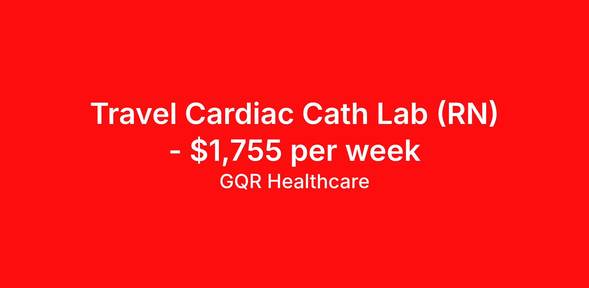 GQR Healthcare is seeking a travel nurse RN Cardiac Cath Lab for a travel nursing job in Murfreesboro, Tennessee. Job Description & Requirements Specialty: Cardiac Cath Lab Discipline: RN Start Date: ASAP Duration: 13 weeks 36 hours per week Shift: 12 hours, days Employment Type: Travel GQR Healthcare is representing a well-known health system seeking experienced Catheterization Laboratory providers to add to their team. If you are passionate about providing exceptional care and looking to explore a rewarding career opportunity, we'd love to hear from you! Apply now, and a dedicated GQR consultant will connect with you to discuss the role, answer your questions, and guide you through the process. About GQR Healthcare: At GQR Healthcare, we are committed to supporting healthcare professionals at every stage of their careers. When you partner with us, you gain access to a wide range of benefits and support, including: Day 1 Benefits: Enjoy comprehensive healthcare coverage, including medical, dental, and vision plans, starting on your first day. Guaranteed Hours: We provide contract stability by offering guaranteed hours, ensuring you have the predictability you need. Continuing Education & Development: We invest in your growth by offering opportunities for professional development and ongoing education. 24/7 Consultant Support: Our dedicated consultants are available around the clock to assist with any needs or questions you have. Seamless Placement Process: We handle all the details, from onboarding to interviews, so you can focus on what you do best - providing exceptional patient care. Partnering with GQR means more than just finding your next job - it's about building a meaningful career with a team that truly supports your goals. GQR Job ID 220287. Pay package is based on 12 hour shifts and 36 hours per week (subject to confirmation) with tax-free stipend amount to be determined. Posted job title: Registered Nurse (RN) About GQR Healthcare GQR’s Healthcare team specializes in connecting experts within the industry to highly skilled healthcare professionals across the US market. In the competitive healthcare market, we recognize that the industry’s common goals of improved quality of care and patient outcomes are wholly reliant upon the professionals directly supporting these initiatives. Leveraging our extensive candidate network, we deliver continuity of care for the communities our partners serve to ensure the patient experience is of the highest quality. Through deep market specialization and a unique approach to talent acquisition, GQR Healthcare provides an unparalleled and personalized experience across all medical specialties in nursing and within diverse healthcare platforms across the industry.