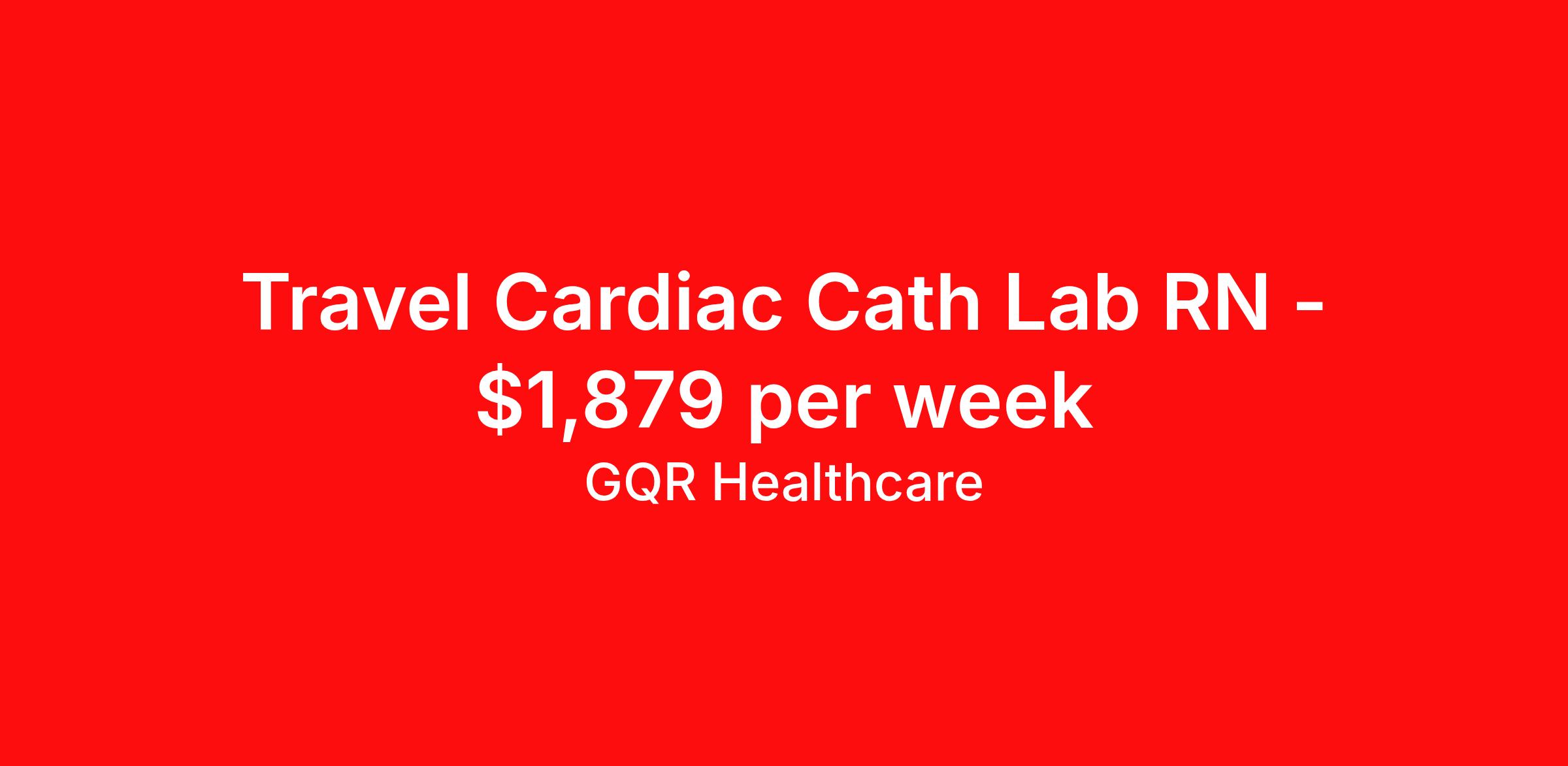 GQR Healthcare is seeking a travel nurse RN Cardiac Cath Lab for a travel nursing job in Largo, Florida. Job Description & Requirements Specialty: Cardiac Cath Lab Discipline: RN Start Date: ASAP Duration: 13 weeks 36 hours per week Shift: 12 hours, days Employment Type: Travel Catheterization Laboratory RN Job Location: Largo, FL Profession: Registered Nurse Estimated Pay: $1879.20 Duration (weeks): 13 Specialty: Catheterization Laboratory Shift Details: Day *Estimated weekly pay includes projected hourly wages and weekly meal and lodging per diems for eligible clinicians based on nationally published GSA rates. Actual weekly pay and per diems may differ from the amount shown and are subject to change during an assignment. Benefits: Day 1 Insurance Cigna medical, MetLife dental and vision insurance License reimbursement for new licenses needed for each assignment Discounts with hotels and rental cars A dedicated recruiter and support team that will help you every step of the way to sure you start on time and have an exceptional experience Referral bonus up to $700 About the Company: Finding the right role is about more than just matching skills to a job—it’s about aligning with your goals, values, and the way you want to work. As an award-winning talent partner, we support healthcare professionals through every step of that process, offering meaningful opportunities, clear guidance, and long-term partnership. From our first conversation to your first day on the job (and beyond!), we’re here to help you move forward with confidence. GQR Job ID 776333. Pay package is based on 12 hour shifts and 36 hours per week (subject to confirmation) with tax-free stipend amount to be determined. Posted job title: Registered Nurse (RN) About GQR Healthcare GQR’s Healthcare team specializes in connecting experts within the industry to highly skilled healthcare professionals across the US market. In the competitive healthcare market, we recognize that the industry’s common goals of improved quality of care and patient outcomes are wholly reliant upon the professionals directly supporting these initiatives. Leveraging our extensive candidate network, we deliver continuity of care for the communities our partners serve to ensure the patient experience is of the highest quality. Through deep market specialization and a unique approach to talent acquisition, GQR Healthcare provides an unparalleled and personalized experience across all medical specialties in nursing and within diverse healthcare platforms across the industry.
