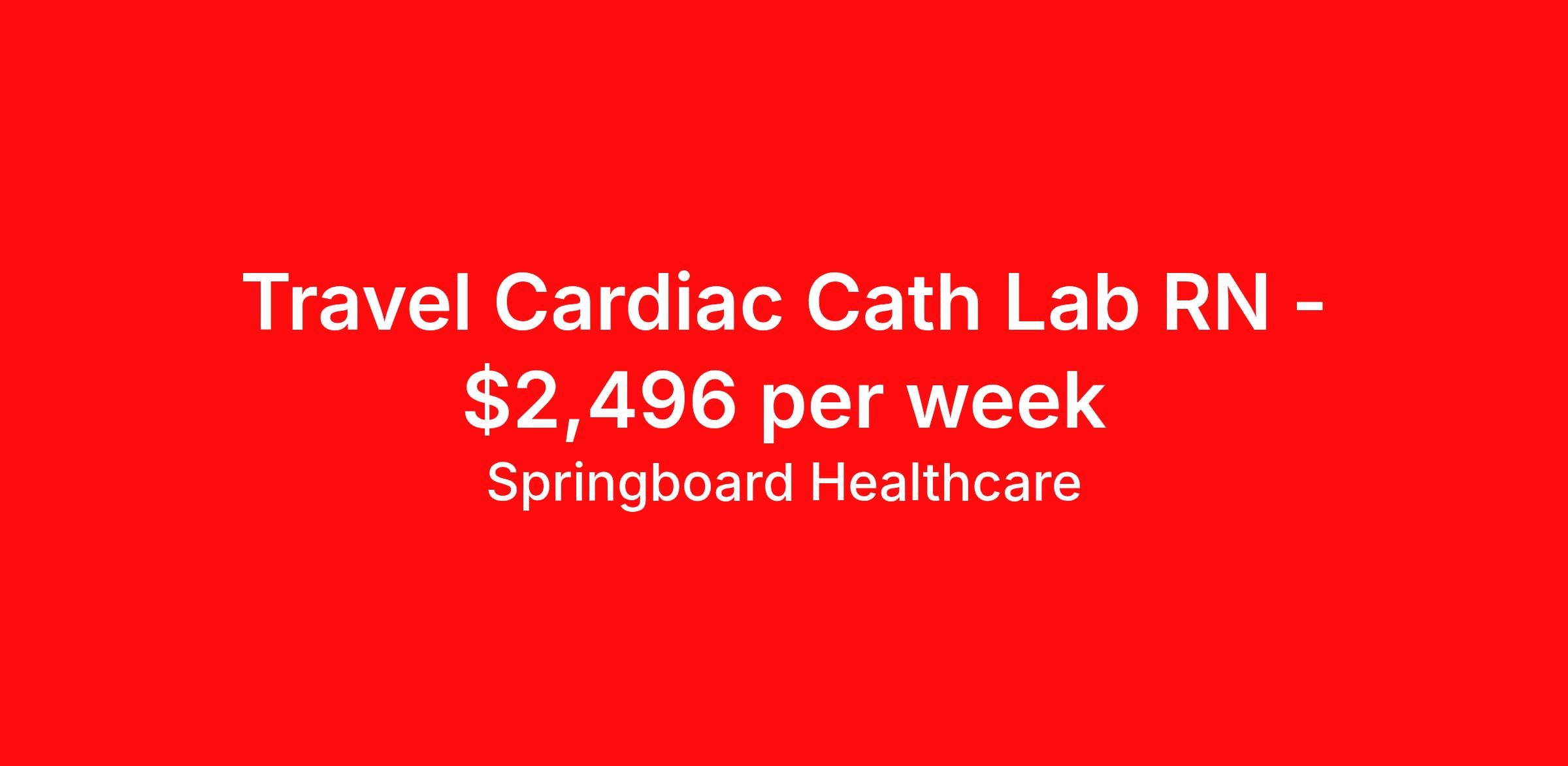 Springboard Healthcare is seeking a travel nurse RN Cardiac Cath Lab for a travel nursing job in Mishawaka, Indiana. Job Description & Requirements Specialty: Cardiac Cath Lab Discipline: RN Start Date: 04/06/2026 Duration: 13 weeks 40 hours per week Shift: 8 hours Employment Type: Travel Springboard Healthcare Job ID 804443. Pay package is based on 8 hour shifts and 40 hours per week (subject to confirmation) with tax-free stipend amount to be determined. Posted job title: Cath Lab RN