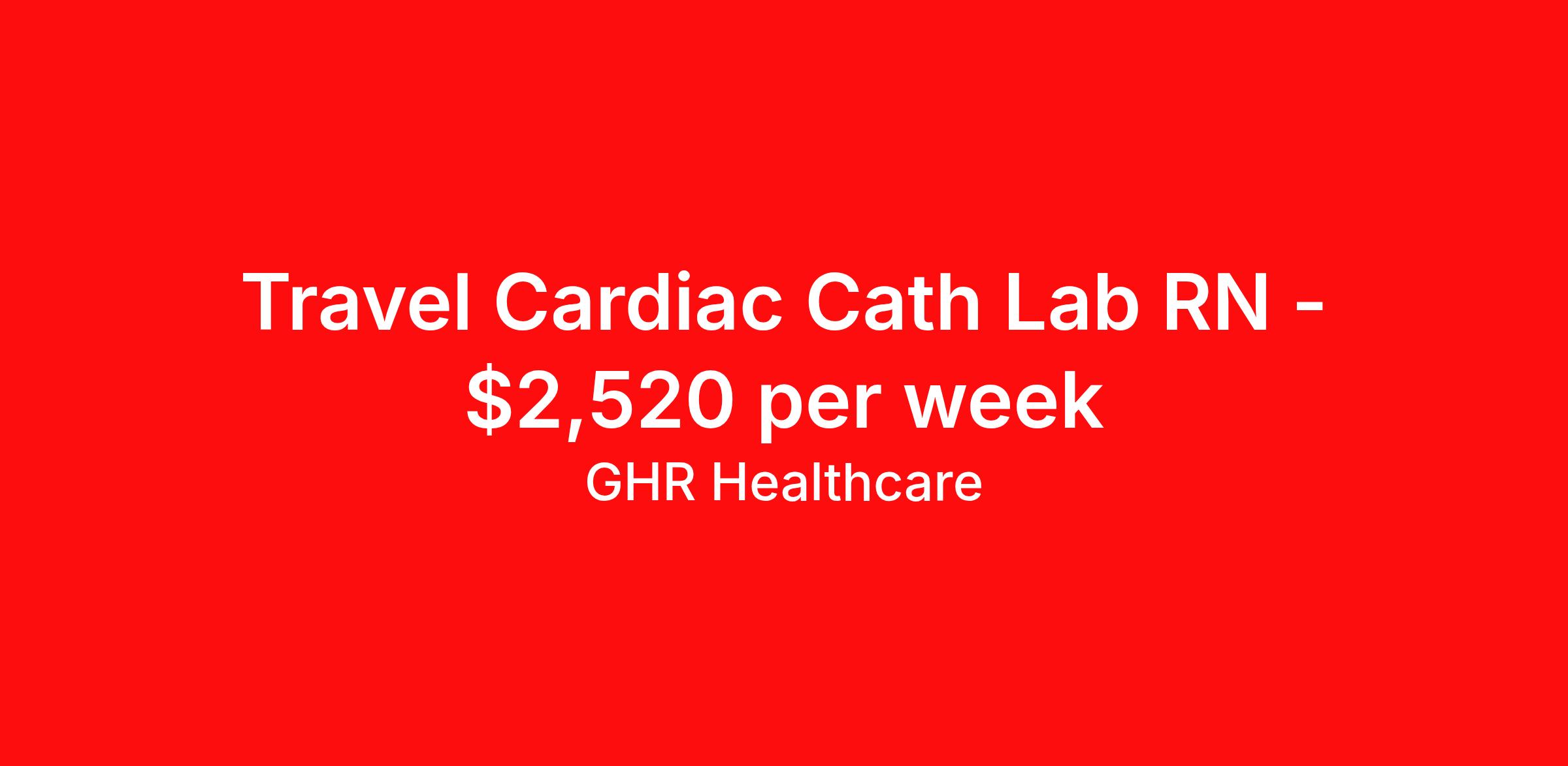 GHR Healthcare is seeking a travel nurse RN Cardiac Cath Lab for a travel nursing job in Cleveland, Ohio. Job Description & Requirements Specialty: Cardiac Cath Lab Discipline: RN Start Date: 04/26/2026 Duration: 13 weeks 36 hours per week Shift: 12 hours Employment Type: Travel GHR Healthcare Job ID 72741458. Pay package is based on 12 hour shifts and 36 hours per week (subject to confirmation) with tax-free stipend amount to be determined. About GHR Healthcare For over 30 years, GHR Healthcare has been the bridge between healthcare professionals and the facilities that need them nationwide. We're committed to uncovering your ideal fit, supported by GHR's dedication to competitive compensation, transparent communication, and a devoted team that genuinely cares about your career journey. You can trust us to stand by your side as your advocate, confidante, and partner in advancing your career. At GHR, care and consideration are at the heart of everything we do. Visit ghrhealthcare.com to learn more.
