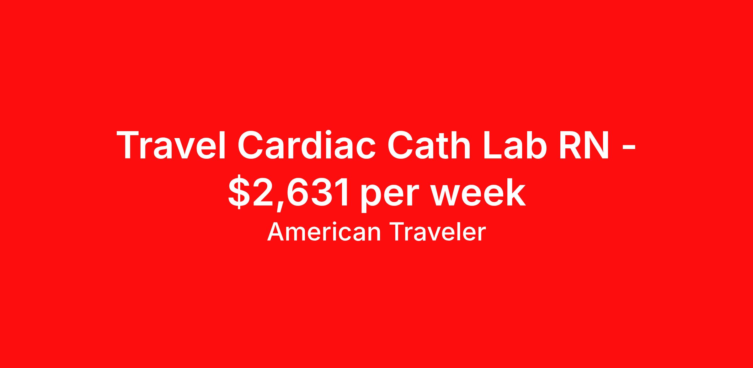 American Traveler is seeking a travel nurse RN Cardiac Cath Lab for a travel nursing job in Margate, Florida. Job Description & Requirements Specialty: Cardiac Cath Lab Discipline: RN Start Date: ASAP Duration: 13 weeks 40 hours per week Shift: 10 hours, days Employment Type: Travel Assignment Overview Shift: Days, 4x10hrs Hours: 40 hrs/wk Start Date: Mar 16, 2026 Length: 13 weeks Openings: 1 Description American Traveler is seeking an experienced RN for a Cardiac Cath Lab position in Margate, FL, requiring a minimum of 2 years of experience and an active FL or compact RN license. Details Located in a hospital-based Cardiac Cath Lab unit Day shift schedule, 7:00 AM – 5:30 PM 13-week contract Requirements Active FL or compact RN license required Minimum 2 years of recent Cardiac Cath Lab experience required Current BLS certification required (AHA or ARC accepted); certifications must not expire within the first 30 days of the assignment start Current ACLS certification required US SSN and date of birth required for consideration Two professional references required for this Florida-based position No gaps in work history of 90 days or more within the past 12 months Additional Information Candidates must reside more than 50 miles from the facility — local candidates are not eligible for this position American Traveler Job ID P-678680. Pay package is based on 10 hour shifts and 40 hours per week (subject to confirmation) with tax-free stipend amount to be determined. Posted job title: Travel RN - Cardiac Cath Lab About American Traveler With over 25 years of experience, American Traveler has established a reputation for outstanding customer service. Our team ensures a smooth, worry-free experience for those starting on or expanding their travel nursing and allied careers. With thousands of travel nursing and allied jobs nationwide, our attentive and approachable recruiters find positions that align perfectly with your career aspirations and personal requirements. American Traveler offers exceptional benefits, including premium medical, dental, vision and life insurance beginning day one of your assignment, generous 401(k) match, substantial housing stipends, and more. Additionally, with 24/7 support and access to our in-house clinicians, you are assured confidence and comfort throughout your assignment. With our team behind you, you can relax and enjoy a rewarding travel career.