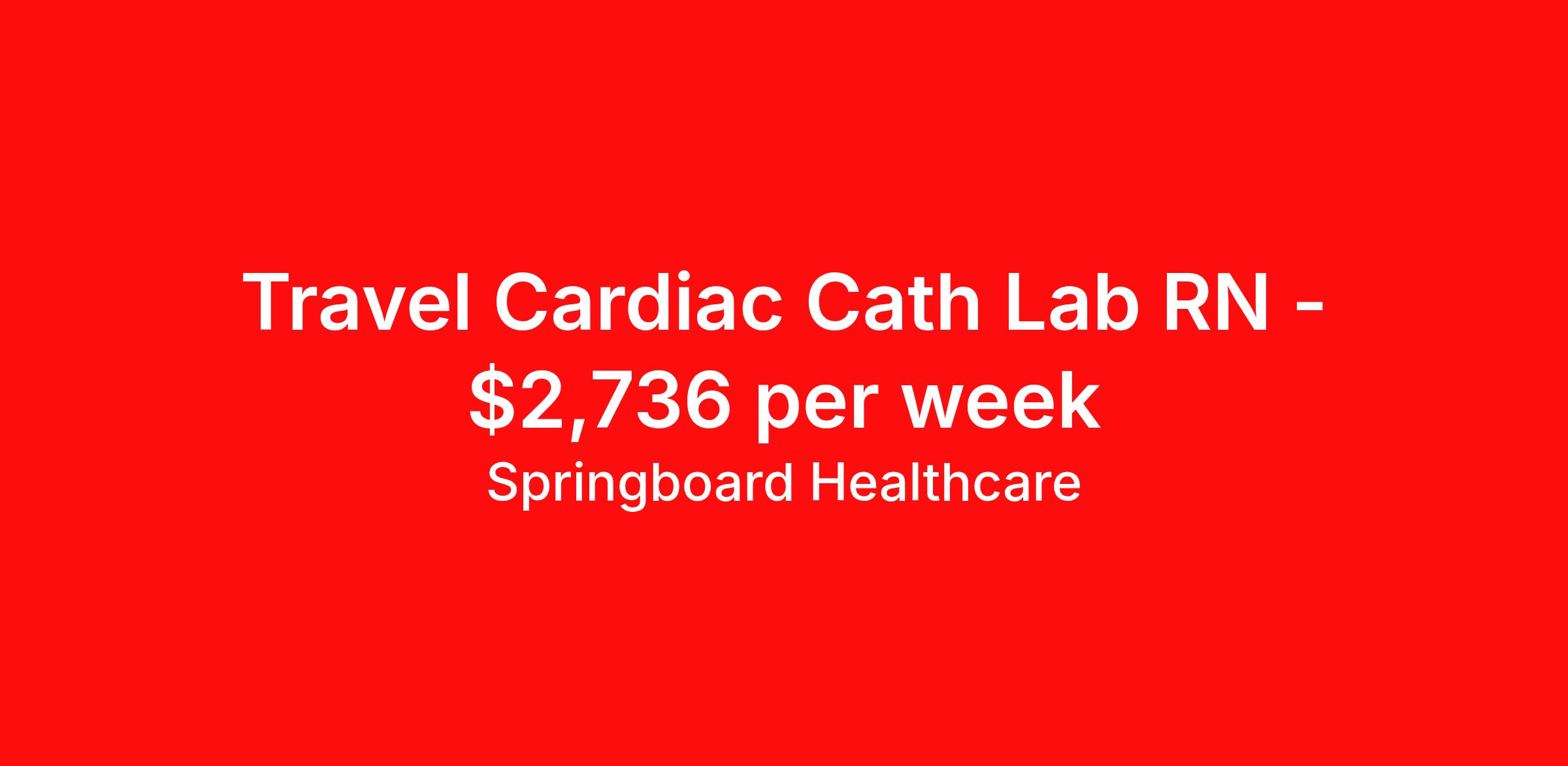 Springboard Healthcare is seeking a travel nurse RN Cardiac Cath Lab for a travel nursing job in Bloomington, Illinois. Job Description & Requirements Specialty: Cardiac Cath Lab Discipline: RN Start Date: 03/30/2026 Duration: 13 weeks 36 hours per week Shift: 9 hours Employment Type: Travel Springboard Healthcare Job ID 836861. Pay package is based on 9 hour shifts and 36 hours per week (subject to confirmation) with tax-free stipend amount to be determined. Posted job title: Cath Lab RN