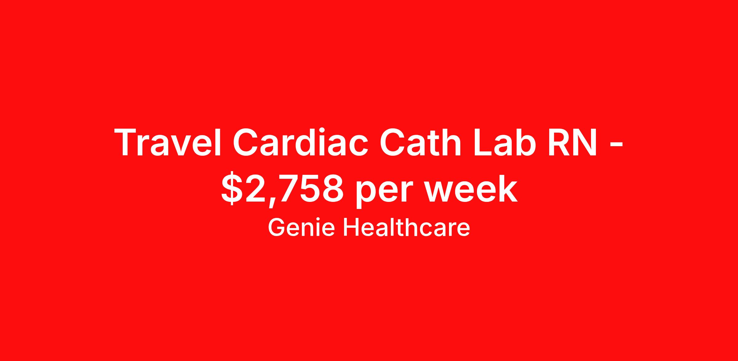 Genie Healthcare is seeking a travel nurse RN Cardiac Cath Lab for a travel nursing job in Nashua, New Hampshire. Job Description & Requirements Specialty: Cardiac Cath Lab Discipline: RN Start Date: 04/13/2026 Duration: 13 weeks 40 hours per week Shift: 8 hours, days Employment Type: Travel Genie Healthcare is looking for a RN to work in Cardiac Cath Lab (CCL) for a 13 weeks travel assignment located in Nashua, NH for the Shift (5x8 Days - Please verify shift details with recruiter, 07:00:00-15:00:00, 8.00-5). Pay and benefits packages are estimated based on client bill rate at time the job was posted. These rates are subject to change. Exact pay and benefits vary based on several things, including, but not limited to, guaranteed hours, client changes in bill rate, experience, etc. Benefits: Medical Insurance, Dental Insurance, Vision Insurance, 401(k) with company matching (50% up to 6% of what you contribute) Genie Healthcare Job ID 17803644. Pay package is based on 8 hour shifts and 40.0 hours per week (subject to confirmation) with tax-free stipend amount to be determined. Posted job title: RN:Cardiac Cath Lab (CCL),07:00:00-15:00:00 About Genie Healthcare Genie Healthcare is one of the fastest growing Nurse Travel Agencies in the USA. Genie serves hundreds of facilities and has over 4000 current travel RN contracts open at any given time. Genie provides travel RN’s flexibility, support, top pay scale, housing and the 1 rated, multi-state health insurance coverage. Genie Healthcare carries with it a commitment to providing a comprehensive level of service and quality care. Growing from a small team of eager recruiters to a company with satisfied clients in nearly every corner of the nation, delivering excellence in patient and customer care is the key to Genie’s success. The management team has 20 years of experience in workforce solutions and staffing in medical and non-medical fields, roles ranging from Clerical job to Cardiologist to software developer to CEO.