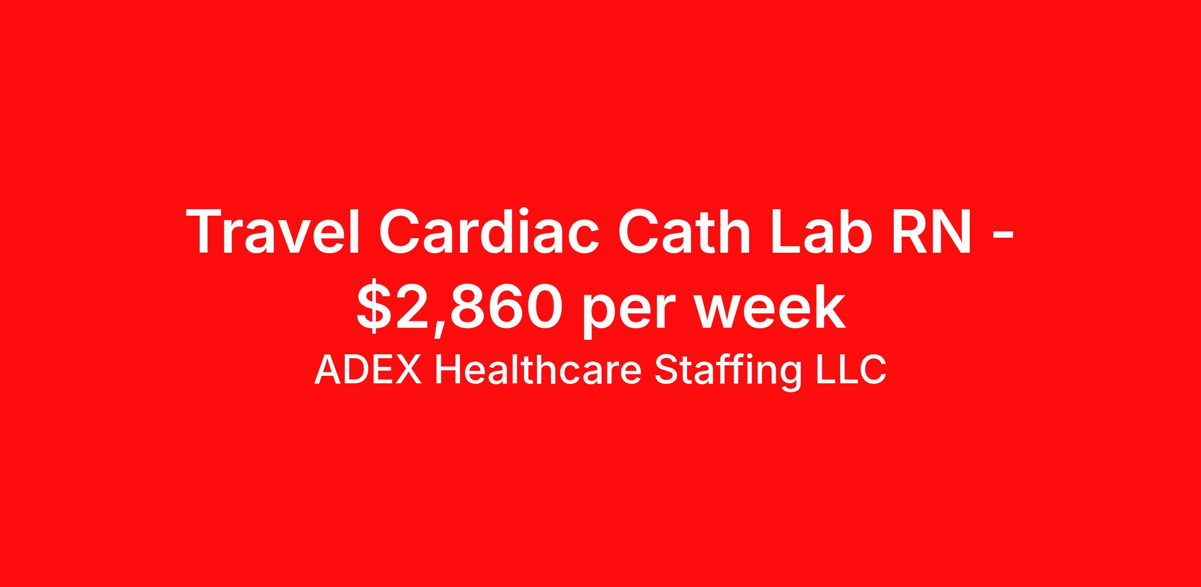ADEX Healthcare Staffing LLC is seeking a travel nurse RN Cardiac Cath Lab for a travel nursing job in Cleveland, Ohio. Job Description & Requirements Specialty: Cardiac Cath Lab Discipline: RN Start Date: 04/26/2026 Duration: 13 weeks 40 hours per week Shift: 10 hours, days Employment Type: Travel RN Position Job Notes: Travel or Local Registered Nurse needed for ASAP start. A minimum of 2 years of recent hospital bedside experience is required. Candidates must be able to start within 5 weeks. Opportunity for extension upon successful completion of the initial assignment. $750 referral bonus available. Opportunity: RN - Cath Lab Job Details: • Work in the most advanced and complex cardiac catheterization laboratory • Perform state-of-the-art procedures including coronary, peripheral, and structural heart disease interventions • Responsibilities include scrubbing, circulating, or monitoring cases • Work with hybrid structural and aortic interventions • Handle busy lab environment with structural heart, endovascular, and cardiology services • Experience required with structural heart procedures and PCI equipment • Familiarity needed with endovascular cases • Work with advanced equipment including Rota/Inari/Laser/Shockwave/IVUS/OCT • Perform procedures such as TAVRs/TMVR/TTVR/LAAO/TEER/CTO/PE • Operate EP lab for ablations and device procedures • Must be experienced Cath Lab RN with knowledge of structural heart procedures Facility: This medical center operates the most advanced cardiac catheterization laboratory within its health system, featuring three dedicated cath labs that handle complex cardiac procedures. The facility is the only location in the health system performing structural heart procedures, providing cutting-edge cardiac care with state-of-the-art technology and equipment. The center specializes in comprehensive cardiovascular services including interventional cardiology, structural heart interventions, and electrophysiology procedures. Location: Cleveland, OH Cleveland offers a vibrant urban environment with a rich cultural scene, world-class healthcare institutions, and affordable cost of living. The city provides excellent professional development opportunities in healthcare while offering diverse entertainment, dining, and recreational activities along with beautiful lakefront access to Lake Erie. Adex Job ID UHS-4462. Pay package is based on 10 hour shifts and 40 hours per week (subject to confirmation) with tax-free stipend amount to be determined. About ADEX Healthcare Staffing LLC ADEX has been placing healthcare professionals across the US since 2004. Originally founded in Atlanta, GA, the company's headquarters are now located in Tampa, FL. JCAHO certified since 2009. Benefits Referral bonus