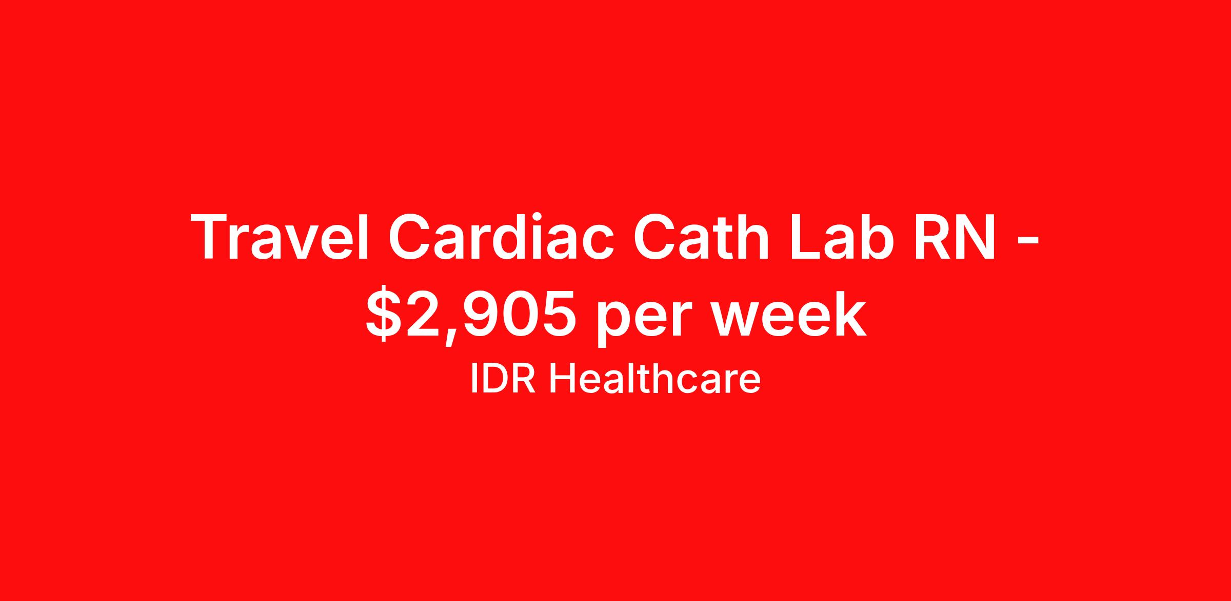 IDR Healthcare is seeking a travel nurse RN Cardiac Cath Lab for a travel nursing job in Nashua, New Hampshire. Job Description & Requirements Specialty: Cardiac Cath Lab Discipline: RN Start Date: ASAP Duration: 13 weeks 40 hours per week Shift: 8 hours, days Employment Type: Travel IDR Healthcare is an awarding winning staffing firm that believes it is a privilege and awesome responsibility to serve those who selflessly care for others. Our mission is to empower healthcare professionals to achieve their fullest potential both personally and professionally while they create positive change within the healthcare community. We exercise true grit, tenacity, and authenticity while embracing and ownership mindset to go above and beyond providing healthcare professionals a world class experience. We are employee owned and our travelers and clinicians earn shares/equity by just completing multiple assignments! We have been named SIA’s Fastest Growing Staffing Firms and have won ClearlyRated® Best of Staffing for 11 consecutive years! This cements our commitment to clinician satisfaction earning top net promoter scores putting us in the top 2% of agencies in North America! TravelFarWithIDR and see what an extraordinary experience is all about! Benefits 2024 World Staffing Best Staffing Firms to Work For! ESOP (Equity) Healthcare Benefits for up to 30 days Between Assignments Comprehensive Health Insurance Dental and Vision Insurance Sign-On, Completion, & Referral Bonus Programs License and Certification Reimbursement Weekly Pay and Competitive Compensation Large Network of Clients and Job Opportunities 401k retirement plan Exclusive Assignments IDR Job ID 488967. Pay package is based on 8 hour shifts and 40 hours per week (subject to confirmation) with tax-free stipend amount to be determined. About IDR Healthcare IDR Healthcare is an awarding winning staffing firm that believes it is a privilege and awesome responsibility to serve those who selflessly care for others. Our mission is to empower healthcare professionals to achieve their fullest potential both personally and professionally while they create positive change within the healthcare community. We exercise true grit, tenacity, and authenticity while embracing and ownership mindset to go above and beyond providing healthcare professionals a world class experience. We are employee owned and our travelers and clinicians earn shares/equity by just completing multiple assignments! We have been named SIA’s Fastest Growing Staffing Firms and have won ClearlyRated® Best of Staffing for 11 consecutive years! This cements our commitment to clinician satisfaction earning top net promoter scores putting us in the top 2% of agencies in North America! Help us give back! For every booked assignment, proceeds are donated to St. Jude and Feeding America! Last year we raised over $18,000 for St. Jude and provided over 49,000 meals for children in need. TravelFarWithIDR and see what it is all about! Benefits Weekly pay 401k retirement plan Referral bonus Medical benefits Dental benefits License and certification reimbursement Vision benefits