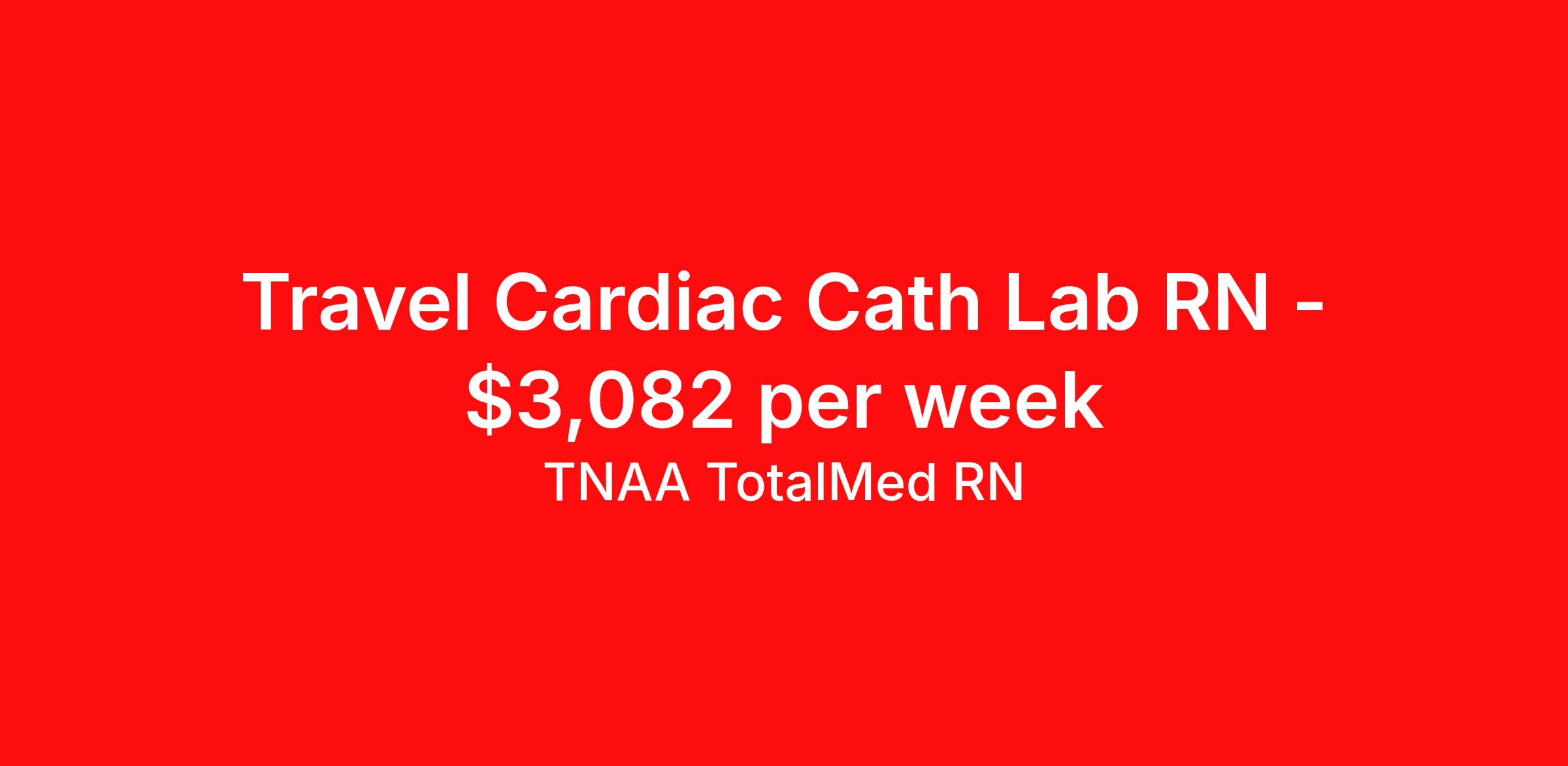 TNAA TotalMed RN is seeking a travel nurse RN Cardiac Cath Lab for a travel nursing job in Denville, New Jersey. Job Description & Requirements Specialty: Cardiac Cath Lab Discipline: RN Duration: 13 weeks 40 hours per week Shift: 10 hours, days Employment Type: Travel We're looking for Cardiac Cath Lab RNs for an immediate travel nurse opening in Denville, NJ. The right RN should have 1-2 years recent acute care experience. Read below for more requirements. As a Cath Lab RN, you'll work with a highly skilled team of medical professionals in a cardiovascular surgical environment providing assistance to the physician including maintenance and monitoring of EKG equipment, and assisting during angioplasty, cardiac catheterization and electrophysiology. As a Cath Lab Travel Nurse, you should be prepared to perform the following tasks: Learn complex technologies effectively. Assist physicians with cardiac catheterization as a way to diagnose heart conditions or as a treatment. Assist with angioplasties, valvuloplasties and stent placements. Help implant pacemakers and implantable cardioverter-defibrillators (ICDs). Cath Lab Travel Nurses should be able to stand and walk for long periods of time, as well as bend, lean and stoop without difficulty. RNs should be able to easily lift 20 pounds. Moving or lifting of patients may require lifting of up to 50 pounds at times. Because of the fast-paced environment, Cardiac Cath Lab Travel Nurses must possess good skills for coping with stress and be able to relate to people of all ages and backgrounds. Requirements*: ACLS, BLS, 2 Years * Additional certifications may be required before beginning an assignment. TotalMed Travel Job ID 1334979. Pay package is based on 10 hour shifts and 40 hours per week (subject to confirmation) with tax-free stipend amount to be determined. Posted job title: Catheterization lab - CathLab RN - Travel Nurse About TNAA TotalMed RN TotalMed is a Top Ten, travel nursing and healthcare staffing agency with the mission of igniting purpose in healthcare. The organization staffs nurses, therapists, pharmacists, and other clinicians of all specialties in all 50 states. They offer local and travel jobs and match caregivers with the right organization to assist both facilities and patients. As an organization, they focus on putting highly-skilled staff into facilities to ensure adequate staffing for a better patient experience. TotalMed specializes in recruiting and placing healthcare professionals in travel, PRN, and permanent positions across the country in Nursing and Allied Health. Throughout 2020, the organization filled roles at even the most short-staffed facilities during the most challenging time in healthcare. By matching the right travel healthcare professional with the right organization, TotalMed continues to offer a lifeline to facilities and their patients. Benefits Weekly pay Guaranteed Hours Continuing Education 401k retirement plan Sick pay Wellness and fitness programs Referral bonus Employee assistance programs Medical benefits Dental benefits Vision benefits Benefits start day 1