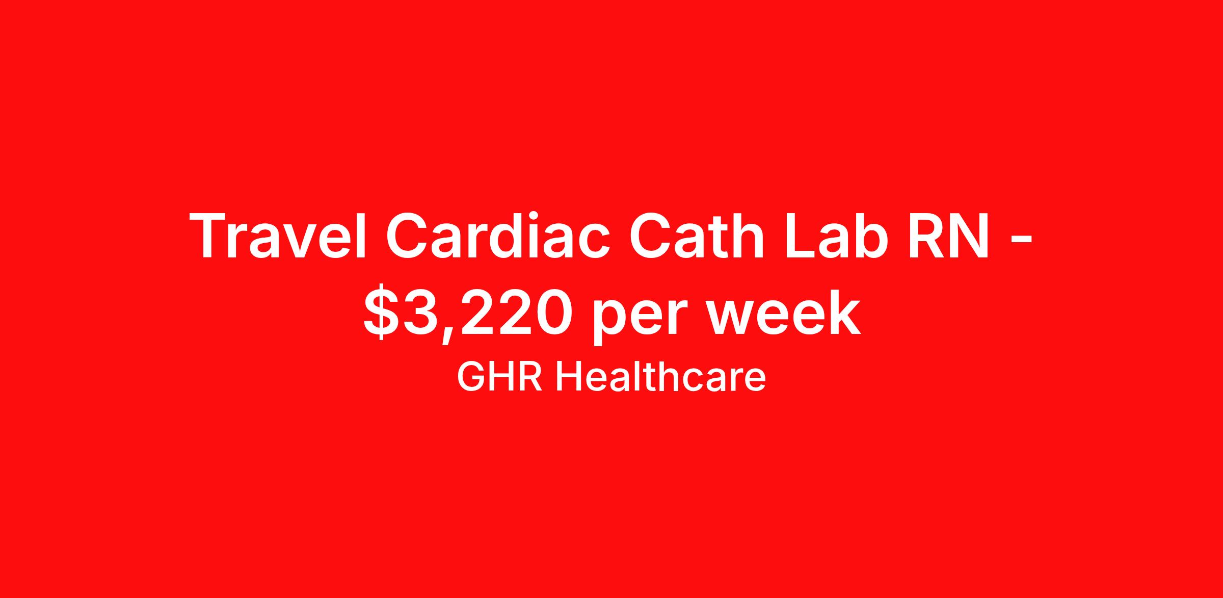 GHR Healthcare is seeking a travel nurse RN Cardiac Cath Lab for a travel nursing job in Salem, Massachusetts. Job Description & Requirements Specialty: Cardiac Cath Lab Discipline: RN Start Date: 04/19/2026 Duration: 13 weeks 40 hours per week Shift: 8 hours Employment Type: Travel Cath Lab Registered Nurse (RN) – 13-Week Travel Assignment | Salem, MA Cath Lab Registered Nurse (RN) travel assignment in Salem, MA — experienced Cardiac Cath Lab / EP Lab RN needed for interventional cardiology procedures and device implants near the Boston area. Quick Job Summary Position: Cath Lab Registered Nurse (Cath Lab RN / EP Lab RN) – Travel Nurse Location: Salem, MA 01970 (North of Boston; Massachusetts nursing job) Assignment Length: 13 weeks (April 19, 2026 – July 18, 2026) Setting: Cardiac Catheterization and EP Lab (2 rooms) – interventional cardiology, electrophysiology Shift: 4 x 10-hour days (7:00 AM – 5:30 PM); Guaranteed 40 hours/week Job Details & Perks Estimated Weekly Pay: $2,870 - $3,020 per week Facility Size: 400 beds (Med Surg, ICU, Maternity, etc.) On-Call: 7 on-call nights per month (includes one full weekend 4 additional nights) Parking & Call Room: Free on-site parking and brand new on-site call room Patient Population: Adult patients in a high-acuity cardiac practice EMR: EPIC (Cupid) experience preferred Required Qualifications Minimum 4 years of recent Cath Lab / EP Lab RN experience (interventional cardiac procedures) Proven experience with PCI, device implants, impella, balloon pump, ablations, and scrubbing/circulating Active Massachusetts RN license Current AHA ACLS certification Experience caring for adult patient population Ability to participate in on-call rotation, including nights and weekends EPIC (Cupid) EMR proficiency preferred Key Responsibilities Provide skilled nursing care in the Cardiac Cath and EP Lab for interventional cardiology and electrophysiology procedures Scrub and circulate during procedures including PCI, device implants, and complex ablations Monitor, assess, and manage adult patients before, during, and after procedures Collaborate closely with cardiologists, electrophysiologists, and multidisciplinary teams to ensure optimal patient outcomes Maintain accurate, timely documentation in EPIC (Cupid) EMR Participate in scheduled on-call coverage and adhere to hospital policies and safety standards Why Join This Travel Nursing Opportunity? Work in a modern, high-volume cardiac program with advanced interventional and EP technologies Competitive travel nurse assignment in a supportive Cardiac Cath Lab team Enjoy Salem’s historic charm, coastal lifestyle, and convenient access to Boston — ideal for travel nurses seeking both career growth and quality of life Ready to take the next step in your cardiac nursing career? Apply now to join the Cath Lab team in Salem, MA — a prime Massachusetts travel nursing job in interventional cardiology and EP. Join our healthcare team today! Benefits 401K with Matching, Healthcare, Dental and Vision Equal Opportunity We are an equal opportunity employer and value diversity across our organization. We do not discriminate on the basis of race, religion, color, national origin, gender, sexual orientation, age, marital status, veteran status, or disability status. GHR Healthcare Job ID 465431. Pay package is based on 8 hour shifts and 40 hours per week (subject to confirmation) with tax-free stipend amount to be determined. Posted job title: Cath Lab About GHR Healthcare For over 30 years, GHR Healthcare has been the bridge between healthcare professionals and the facilities that need them nationwide. We're committed to uncovering your ideal fit, supported by GHR's dedication to competitive compensation, transparent communication, and a devoted team that genuinely cares about your career journey. You can trust us to stand by your side as your advocate, confidante, and partner in advancing your career. At GHR, care and consideration are at the heart of everything we do. Visit ghrhealthcare.com to learn more.