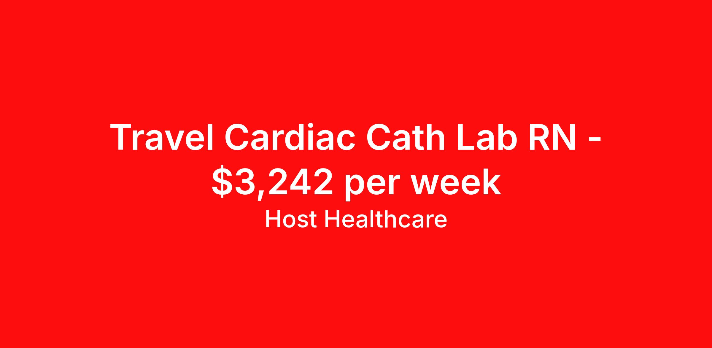 Host Healthcare is seeking a travel nurse RN Cardiac Cath Lab for a travel nursing job in Denville, New Jersey. Job Description & Requirements Specialty: Cardiac Cath Lab Discipline: RN Start Date: 04/11/2026 Duration: 13 weeks 40 hours per week Shift: 10 hours, days Employment Type: Travel Host Healthcare Job ID a1fVJ000007cQogYAE. Pay package is based on 10 hour shifts and 40 hours per week (subject to confirmation) with tax-free stipend amount to be determined. Posted job title: RN - Cardiac Cath Lab About Host Healthcare At Host Healthcare, we provide a truly comfortable experience as you explore your travel nursing, therapy, or allied career. We make your travel healthcare journey easy by taking care of all the details, so you don’t have to. We are on a mission to help others live better and we do this by helping the healers of the world be as comfortable as possible. With access to tens of thousands of travel nursing, therapy, and allied jobs in all 50 states, our responsive and friendly recruiters find your dream position based on what’s important to you. During your assignment, get access to premium benefits, including Day 1 medical that continues up to 30 days between assignments, 401K matching, travel reimbursements, dedicated housing support, and more. We also offer 24/7 support from our team and access to our on-staff clinicians so you can feel comfortable and confident throughout your entire assignment. Travel comfortably with Host Healthcare. Benefits Referral bonus School loan reimbursement Vision benefits Wellness and fitness programs Company provided housing options License and certification reimbursement Life insurance Medical benefits Mileage reimbursement Pet insurance Discount program Employee assistance programs Guaranteed Hours Health savings account Holiday Pay 401k retirement plan Continuing Education Dental benefits