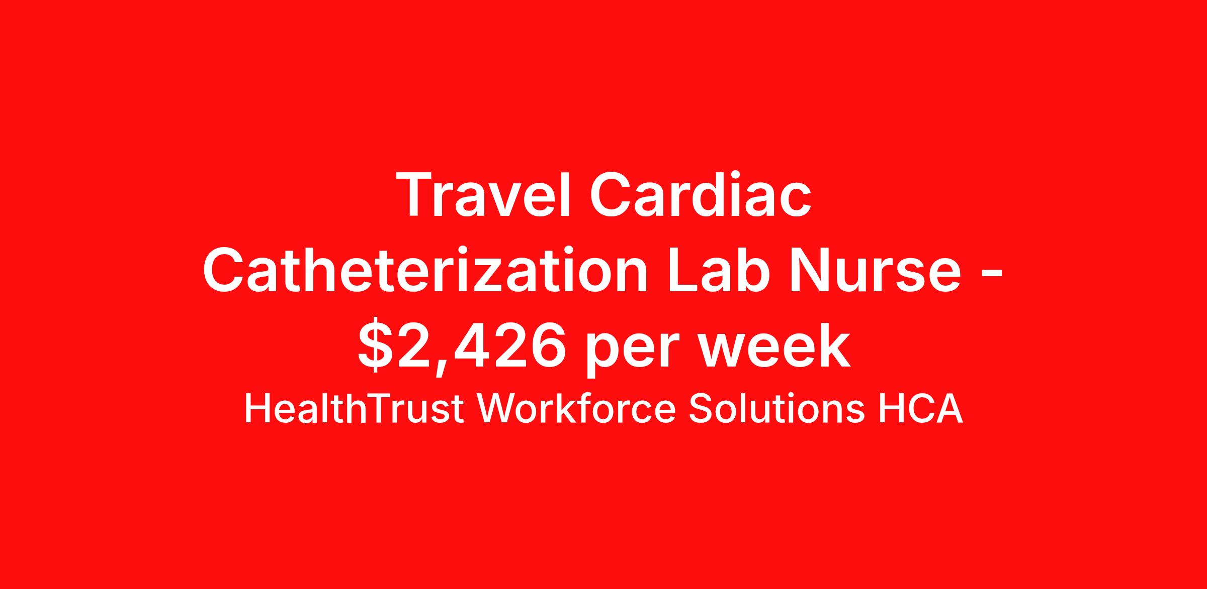 HealthTrust Workforce Solutions HCA is seeking a travel nurse RN Cardiac Cath Lab for a travel nursing job in Dickson, Tennessee. Job Description & Requirements Specialty: Cardiac Cath Lab Discipline: RN Duration: 13 weeks 36 hours per week Shift: 10 hours, days Employment Type: Travel Entrust Your Career to HealthTrust! At HealthTrust, we believe that healthcare is not defined by the four walls in which it is practiced; it’s defined by its people. We pride ourselves on crafting opportunities that expand skill sets, broaden career horizons, provide economic stability, and cultivate personal growth. HealthTrust Offers: Competitive Pay Packages Guaranteed hours Weekly direct deposit options 401k with Company Match Earn up to $750 for referrals Free Private Furnished Housing or Tax-Free Subsidy To get started, you will need: RN's a minimum of 1 year in specialty Allied 6 months of experience An adventurous spirit and fierce dedication Degree in corresponding specialty as required Appropriate certifications and licensure as needed for the specific position HealthTrust Benefits: Opportunities for a lifetime: When you become a part of the HCA family, you will have exclusive access to more opportunities than any other healthcare system in the nation. At HWS, we help open the door to a lifetime of lasting career opportunities. A culture of care: Our clinicians have made HWS an industry leader for over 25 years. We are passionate about our mission that, above all else, we are committed to the care and improvement of human life. Career Development: As a wholly owned subsidiary of HCA Healthcare, HWS is a preferred partner to thousands of top-performing hospitals. We provide our healthcare professionals with first-priority access to more than 200,000 jobs nationwide. We are uniquely positioned to offer you exclusive and direct access to HCA Healthcare’s vast network of facilities. Let us open the door to nationwide opportunities that fit your lifestyle! We are an equal opportunity employer and value diversity at our company. We do not discriminate on the basis of race, religion, color, national origin, gender, sexual orientation, age, marital status, veteran status, or disability status. Job Requirements Certifications ACLS (Required) BLS (Required) HealthTrust Workforce Solutions HCA Job ID 981583. Posted job title: Travel Nurse - Cath Lab About HealthTrust Workforce Solutions HCA At HealthTrust Workforce Solutions, healthcare is not just about the four walls of a facility but about the people who provide and receive care. Our focus is on empowering healthcare professionals to deliver exceptional patient experiences by providing them with the necessary skills, tools, and support. We partner with healthcare facilities nationwide to ensure that the right professionals are in the right roles. We prioritize our clinicians by giving them a voice and access to opportunities to fulfill their mission of improving lives by providing quality patient care. We are committed to our core values of Trust, Innovation, Adaptability, Courage, and Accountability. We are dedicated to positively impacting the healthcare industry by providing first-priority access to more than 200,000 jobs nationwide to our healthcare professionals. Join us and be part of the HealthTrust family, where you can make a difference every day. We embrace our changing environment, and we maintain a culture that has a rich tradition of transforming itself to meet the challenges of the future. MISSION STATEMENT While putting great people in the right roles is essential, our mission is far greater. We want our clinicians to be part of the HealthTrust family, where healthcare professionals have a voice and are empowered with the right tools and opportunities to fulfill their personal mission of improving lives. Plus, as a preferred partner to thousands of top-performing hospitals, we provide our healthcare professionals with first-priority access to more than 200,000 jobs nationwide. Benefits Dental benefits Vision benefits Referral bonus Continuing Education Life insurance