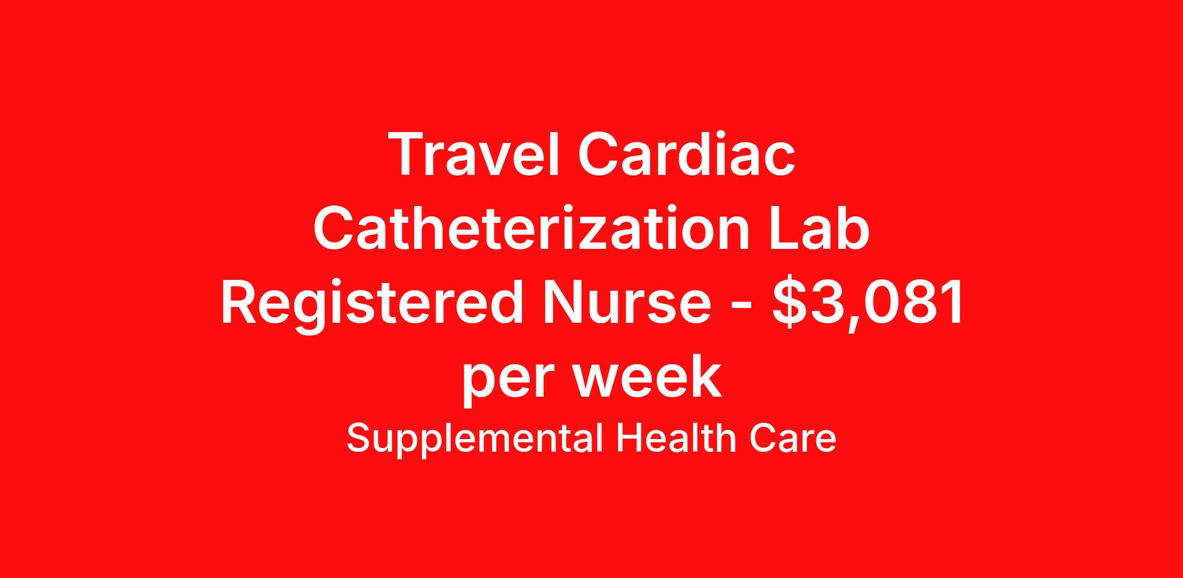Supplemental Health Care is seeking a travel nurse RN Cardiac Cath Lab for a travel nursing job in Denville, New Jersey. Job Description & Requirements Specialty: Cardiac Cath Lab Discipline: RN Start Date: ASAP Duration: 13 weeks 40 hours per week Shift: 10 hours, days Employment Type: Travel Job Description: Supplemental Health Care is connecting Cardiac Catherization Registered Nurses with top-tier hospital contracts in Denville, New Jersey. Travel or stay local, either way, we’ll guide you to an opportunity that matches your goals, offering excellent pay, benefits, and support. Qualifications: Current New Jersey Registered Nurse License / Certification American Heart Association BLS 1 to 2 years of recent Cardiac Catherization experience Cardiac Catherization Registered Nurse Contract Details: $2,860 - $3,081 per week* Weekly pay 13-week contract with possibility to extend AM shifts available *Estimated weekly payment may include both taxable wages and tax-free reimbursements for meals, housing, and incidentals. Please speak with a recruiter for details. What We Offer: Full medical, dental, vision, life, and even pet insurance! Round the clock support. No matter where you are or what time it is, Supplemental Health Care is standing by. SHC's Share the Care referral program is the most dynamic, profitable referral program in the industry. 401(k) Retirement Savings Program with a wide range of investment options. Discounted and free online access to CEU courses through Supplemental University. Apply now to launch your next Cardiac Catherization Registered Nurse assignment, or ask our team about other exciting Registered Nurse opportunities. Supplemental Health Care is an Equal Opportunity Employer. All candidates, including veterans and those with disabilities, are encouraged to apply. SHC will consider for employment qualified applicants with criminal histories in a manner consistent with the requirements of applicable local, state, or federal law. To learn more, visit www.shccares.com/eeo Supplemental Health Care Job ID 1466234. Pay package is based on 10 hour shifts and 40 hours per week (subject to confirmation) with tax-free stipend amount to be determined. Posted job title: Cardiac Catherization Registered Nurse About Supplemental Health Care At Supplemental Health Care, a simple belief in the power of caring guides a unique commitment to world-class service in healthcare staffing. For 40 years, we’ve supported talented professionals pursuing their life calling in hospitals, schools, home health, corrections, behavioral health, and other settings. At SHC, we inspire vital connections and enrich lives and inspire better outcomes. As recipients of the Best in Staffing Awards for both Client and Talent, Supplemental Health Care is proud to be among only 2% of staffing companies singled out for the distinction based on the real feedback of our employees and the clients we serve. SHC has also earned The Joint Commission’s Gold Seal of Approval and is named among the Largest Health Care Staffing companies in the United States by Staffing Industry Analysts. We are also thrilled to recognize our very own SLP, Dr. Kelly Byrd as the American Staffing Association 2024 National Staffing Employee of the Year and Health Care Sector All-Star. We’re honored to connect Dr. Byrd to employment, share her incredible story, and support her family literacy nonprofit. For everyone that we serve, SHC is the place where caring hearts thrive. Benefits Referral bonus Benefits start day 1 401k retirement plan Continuing Education Discount program Health savings account