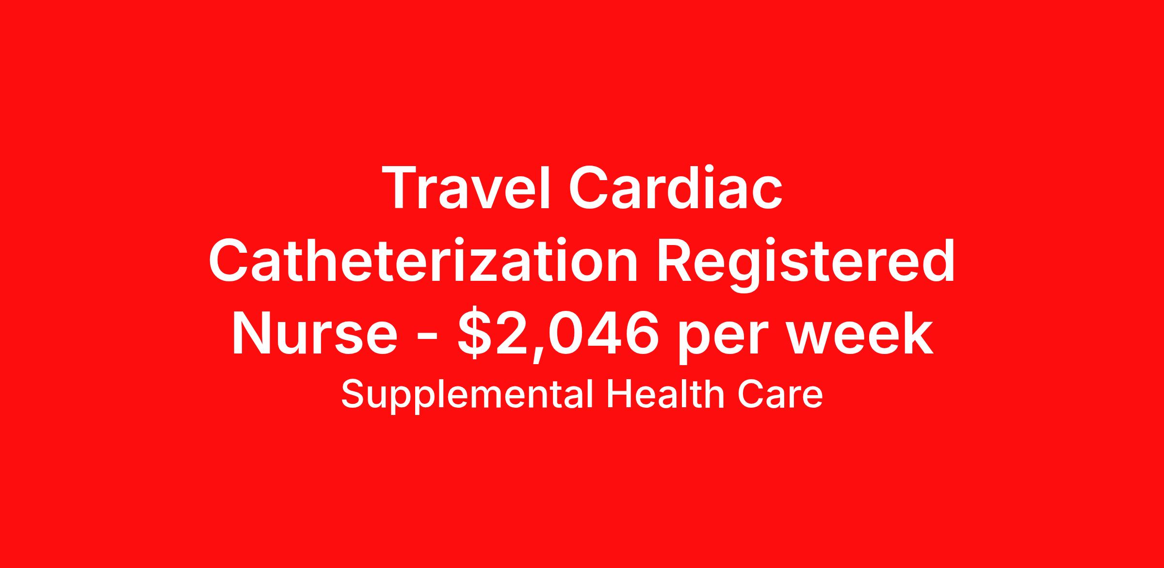 Supplemental Health Care is seeking a travel nurse RN Cardiac Cath Lab for a travel nursing job in Nashville, Tennessee. Job Description & Requirements Specialty: Cardiac Cath Lab Discipline: RN Start Date: ASAP Duration: 13 weeks 40 hours per week Shift: 8 hours, days Employment Type: Travel Job Description: Supplemental Health Care is connecting Cardiac Catherization Registered Nurses with top-tier hospital contracts in Nashville, Tennessee. Travel or stay local, either way, we’ll guide you to an opportunity that matches your goals, offering excellent pay, benefits, and support. Qualifications: Current Tennessee Registered Nurse License / Certification American Heart Association BLS 1 to 2 years of recent Cardiac Catherization experience Cardiac Catherization Registered Nurse Contract Details: $1,860 - $2,046 per week* Weekly pay 12-week contract with possibility to extend AM shifts available *Estimated weekly payment may include both taxable wages and tax-free reimbursements for meals, housing, and incidentals. Please speak with a recruiter for details. What We Offer: Full medical, dental, vision, life, and even pet insurance! Round the clock support. No matter where you are or what time it is, Supplemental Health Care is standing by. SHC's Share the Care referral program is the most dynamic, profitable referral program in the industry. 401(k) Retirement Savings Program with a wide range of investment options. Discounted and free online access to CEU courses through Supplemental University. Apply now to launch your next Cardiac Catherization Registered Nurse assignment, or ask our team about other exciting Registered Nurse opportunities. Supplemental Health Care is an Equal Opportunity Employer. All candidates, including veterans and those with disabilities, are encouraged to apply. SHC will consider for employment qualified applicants with criminal histories in a manner consistent with the requirements of applicable local, state, or federal law. To learn more, visit www.shccares.com/eeo Supplemental Health Care Job ID 1463328. Pay package is based on 8 hour shifts and 40 hours per week (subject to confirmation) with tax-free stipend amount to be determined. Posted job title: Cardiac Catherization Registered Nurse About Supplemental Health Care At Supplemental Health Care, a simple belief in the power of caring guides a unique commitment to world-class service in healthcare staffing. For 40 years, we’ve supported talented professionals pursuing their life calling in hospitals, schools, home health, corrections, behavioral health, and other settings. At SHC, we inspire vital connections and enrich lives and inspire better outcomes. As recipients of the Best in Staffing Awards for both Client and Talent, Supplemental Health Care is proud to be among only 2% of staffing companies singled out for the distinction based on the real feedback of our employees and the clients we serve. SHC has also earned The Joint Commission’s Gold Seal of Approval and is named among the Largest Health Care Staffing companies in the United States by Staffing Industry Analysts. We are also thrilled to recognize our very own SLP, Dr. Kelly Byrd as the American Staffing Association 2024 National Staffing Employee of the Year and Health Care Sector All-Star. We’re honored to connect Dr. Byrd to employment, share her incredible story, and support her family literacy nonprofit. For everyone that we serve, SHC is the place where caring hearts thrive. Benefits Referral bonus Benefits start day 1 401k retirement plan Continuing Education Discount program Health savings account