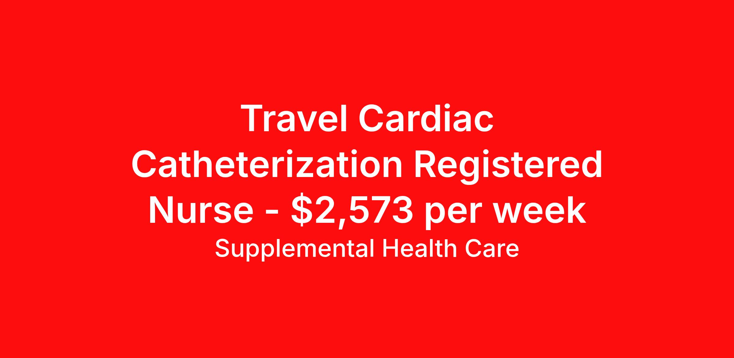 Supplemental Health Care is seeking a travel nurse RN Cardiac Cath Lab for a travel nursing job in Cleveland, Ohio. Job Description & Requirements Specialty: Cardiac Cath Lab Discipline: RN Start Date: ASAP Duration: 13 weeks 40 hours per week Shift: 10 hours, days Employment Type: Travel Job Description: Supplemental Health Care is connecting Cardiac Catherization Registered Nurses with top-tier hospital contracts in Cleveland, Ohio. Travel or stay local, either way, we’ll guide you to an opportunity that matches your goals, offering excellent pay, benefits, and support. Qualifications: Current Ohio Registered Nurse License / Certification American Heart Association BLS 1 to 2 years of recent Cardiac Catherization experience Cardiac Catherization Registered Nurse Contract Details: $2,340 - $2,573 per week* Weekly pay 13-week contract with possibility to extend AM shifts available *Estimated weekly payment may include both taxable wages and tax-free reimbursements for meals, housing, and incidentals. Please speak with a recruiter for details. What We Offer: Full medical, dental, vision, life, and even pet insurance! Round the clock support. No matter where you are or what time it is, Supplemental Health Care is standing by. SHC's Share the Care referral program is the most dynamic, profitable referral program in the industry. 401(k) Retirement Savings Program with a wide range of investment options. Discounted and free online access to CEU courses through Supplemental University. Apply now to launch your next Cardiac Catherization Registered Nurse assignment, or ask our team about other exciting Registered Nurse opportunities. Supplemental Health Care is an Equal Opportunity Employer. All candidates, including veterans and those with disabilities, are encouraged to apply. SHC will consider for employment qualified applicants with criminal histories in a manner consistent with the requirements of applicable local, state, or federal law. To learn more, visit www.shccares.com/eeo Supplemental Health Care Job ID 1466258. Pay package is based on 10 hour shifts and 40 hours per week (subject to confirmation) with tax-free stipend amount to be determined. Posted job title: Cardiac Catherization Registered Nurse About Supplemental Health Care At Supplemental Health Care, a simple belief in the power of caring guides a unique commitment to world-class service in healthcare staffing. For 40 years, we’ve supported talented professionals pursuing their life calling in hospitals, schools, home health, corrections, behavioral health, and other settings. At SHC, we inspire vital connections and enrich lives and inspire better outcomes. As recipients of the Best in Staffing Awards for both Client and Talent, Supplemental Health Care is proud to be among only 2% of staffing companies singled out for the distinction based on the real feedback of our employees and the clients we serve. SHC has also earned The Joint Commission’s Gold Seal of Approval and is named among the Largest Health Care Staffing companies in the United States by Staffing Industry Analysts. We are also thrilled to recognize our very own SLP, Dr. Kelly Byrd as the American Staffing Association 2024 National Staffing Employee of the Year and Health Care Sector All-Star. We’re honored to connect Dr. Byrd to employment, share her incredible story, and support her family literacy nonprofit. For everyone that we serve, SHC is the place where caring hearts thrive. Benefits Referral bonus Benefits start day 1 401k retirement plan Continuing Education Discount program Health savings account