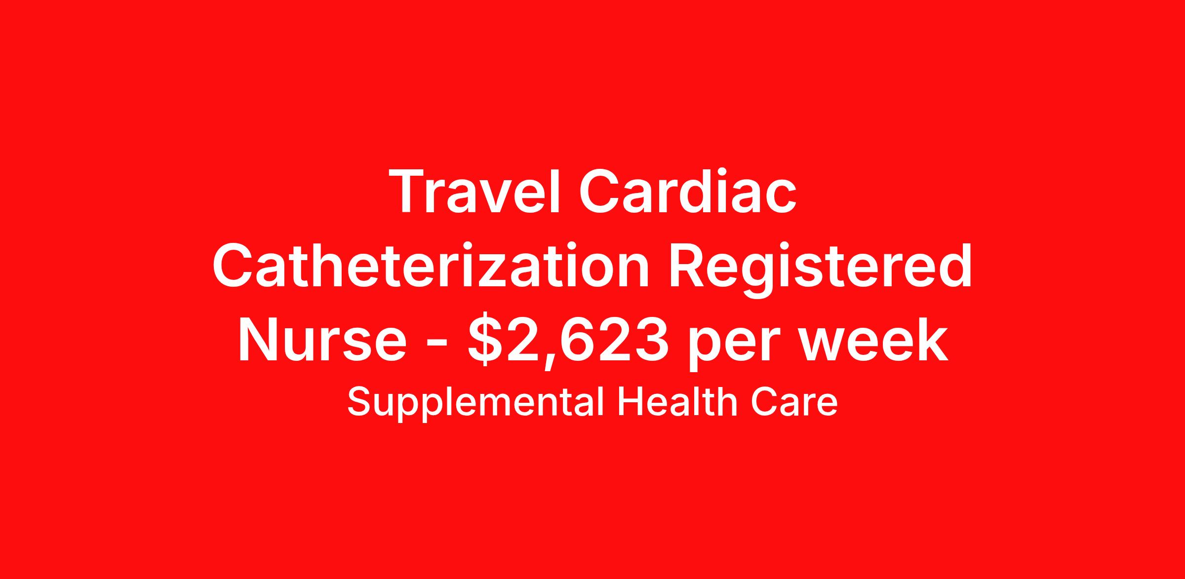 Supplemental Health Care is seeking a travel nurse RN Cardiac Cath Lab for a travel nursing job in Wellington, Florida. Job Description & Requirements Specialty: Cardiac Cath Lab Discipline: RN Start Date: ASAP Duration: 13 weeks 40 hours per week Shift: 8 hours, days Employment Type: Travel Job Description: Supplemental Health Care is connecting Cardiac Catherization Registered Nurses with top-tier hospital contracts in Wellington, Florida. Travel or stay local, either way, we’ll guide you to an opportunity that matches your goals, offering excellent pay, benefits, and support. Qualifications: Current Florida Registered Nurse License / Certification American Heart Association BLS 1 to 2 years of recent Cardiac Catherization experience Cardiac Catherization Registered Nurse Contract Details: $2,400 - $2,623 per week* Weekly pay 13-week contract with possibility to extend AM shifts available *Estimated weekly payment may include both taxable wages and tax-free reimbursements for meals, housing, and incidentals. Please speak with a recruiter for details. What We Offer: Full medical, dental, vision, life, and even pet insurance! Round the clock support. No matter where you are or what time it is, Supplemental Health Care is standing by. SHC's Share the Care referral program is the most dynamic, profitable referral program in the industry. 401(k) Retirement Savings Program with a wide range of investment options. Discounted and free online access to CEU courses through Supplemental University. Apply now to launch your next Cardiac Catherization Registered Nurse assignment, or ask our team about other exciting Registered Nurse opportunities. Supplemental Health Care is an Equal Opportunity Employer. All candidates, including veterans and those with disabilities, are encouraged to apply. SHC will consider for employment qualified applicants with criminal histories in a manner consistent with the requirements of applicable local, state, or federal law. To learn more, visit www.shccares.com/eeo Supplemental Health Care Job ID 1464972. Pay package is based on 8 hour shifts and 40 hours per week (subject to confirmation) with tax-free stipend amount to be determined. Posted job title: Cardiac Catherization Registered Nurse About Supplemental Health Care At Supplemental Health Care, a simple belief in the power of caring guides a unique commitment to world-class service in healthcare staffing. For 40 years, we’ve supported talented professionals pursuing their life calling in hospitals, schools, home health, corrections, behavioral health, and other settings. At SHC, we inspire vital connections and enrich lives and inspire better outcomes. As recipients of the Best in Staffing Awards for both Client and Talent, Supplemental Health Care is proud to be among only 2% of staffing companies singled out for the distinction based on the real feedback of our employees and the clients we serve. SHC has also earned The Joint Commission’s Gold Seal of Approval and is named among the Largest Health Care Staffing companies in the United States by Staffing Industry Analysts. We are also thrilled to recognize our very own SLP, Dr. Kelly Byrd as the American Staffing Association 2024 National Staffing Employee of the Year and Health Care Sector All-Star. We’re honored to connect Dr. Byrd to employment, share her incredible story, and support her family literacy nonprofit. For everyone that we serve, SHC is the place where caring hearts thrive. Benefits Referral bonus Benefits start day 1 401k retirement plan Continuing Education Discount program Health savings account
