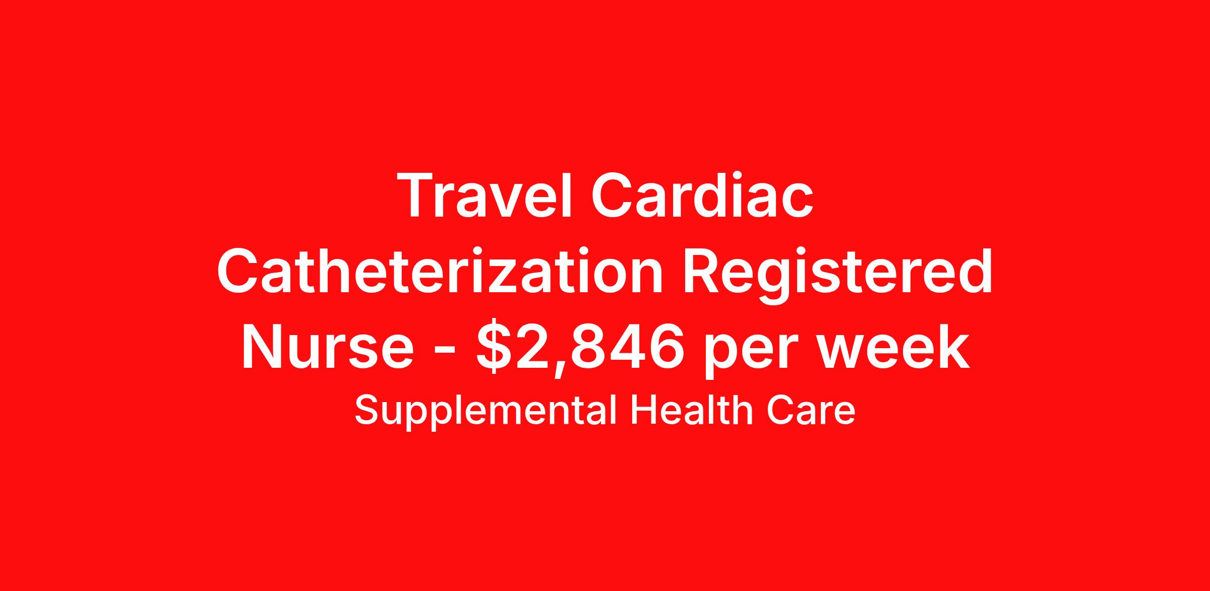 Supplemental Health Care is seeking a travel nurse RN Cardiac Cath Lab for a travel nursing job in Wilkes Barre, Pennsylvania. Job Description & Requirements Specialty: Cardiac Cath Lab Discipline: RN Start Date: ASAP Duration: 13 weeks 40 hours per week Shift: 8 hours, days Employment Type: Travel Job Description: Supplemental Health Care is connecting Cardiac Catherization Registered Nurses with top-tier hospital contracts in Wilkes Barre, Pennsylvania. Travel or stay local, either way, we’ll guide you to an opportunity that matches your goals, offering excellent pay, benefits, and support. Qualifications: Current Pennsylvania Registered Nurse License / Certification American Heart Association BLS 1 to 2 years of recent Cardiac Catherization experience Cardiac Catherization Registered Nurse Contract Details: $2,660 - $2,846 per week* Weekly pay 13-week full-time contract with possibility to extend AM shifts available 40 hours per week *Estimated weekly payment may include both taxable wages and tax-free reimbursements for meals, housing, and incidentals. Please speak with a recruiter for details. What We Offer: Full medical, dental, vision, life, and even pet insurance! Round the clock support. No matter where you are or what time it is, Supplemental Health Care is standing by. SHC's Share the Care referral program is the most dynamic, profitable referral program in the industry. 401(k) Retirement Savings Program with a wide range of investment options. Discounted and free online access to CEU courses through Supplemental University. Apply now to launch your next Cardiac Catherization Registered Nurse assignment, or ask our team about other exciting Registered Nurse opportunities. Supplemental Health Care is an Equal Opportunity Employer. All candidates, including veterans and those with disabilities, are encouraged to apply. SHC will consider for employment qualified applicants with criminal histories in a manner consistent with the requirements of applicable local, state, or federal law. To learn more, visit www.shccares.com/eeo Supplemental Health Care Job ID 1472398. Pay package is based on 8 hour shifts and 40 hours per week (subject to confirmation) with tax-free stipend amount to be determined. Posted job title: Cardiac Catherization Registered Nurse About Supplemental Health Care At Supplemental Health Care, a simple belief in the power of caring guides a unique commitment to world-class service in healthcare staffing. For 40 years, we’ve supported talented professionals pursuing their life calling in hospitals, schools, home health, corrections, behavioral health, and other settings. At SHC, we inspire vital connections and enrich lives and inspire better outcomes. As recipients of the Best in Staffing Awards for both Client and Talent, Supplemental Health Care is proud to be among only 2% of staffing companies singled out for the distinction based on the real feedback of our employees and the clients we serve. SHC has also earned The Joint Commission’s Gold Seal of Approval and is named among the Largest Health Care Staffing companies in the United States by Staffing Industry Analysts. We are also thrilled to recognize our very own SLP, Dr. Kelly Byrd as the American Staffing Association 2024 National Staffing Employee of the Year and Health Care Sector All-Star. We’re honored to connect Dr. Byrd to employment, share her incredible story, and support her family literacy nonprofit. For everyone that we serve, SHC is the place where caring hearts thrive. Benefits Referral bonus Benefits start day 1 401k retirement plan Continuing Education Discount program Health savings account