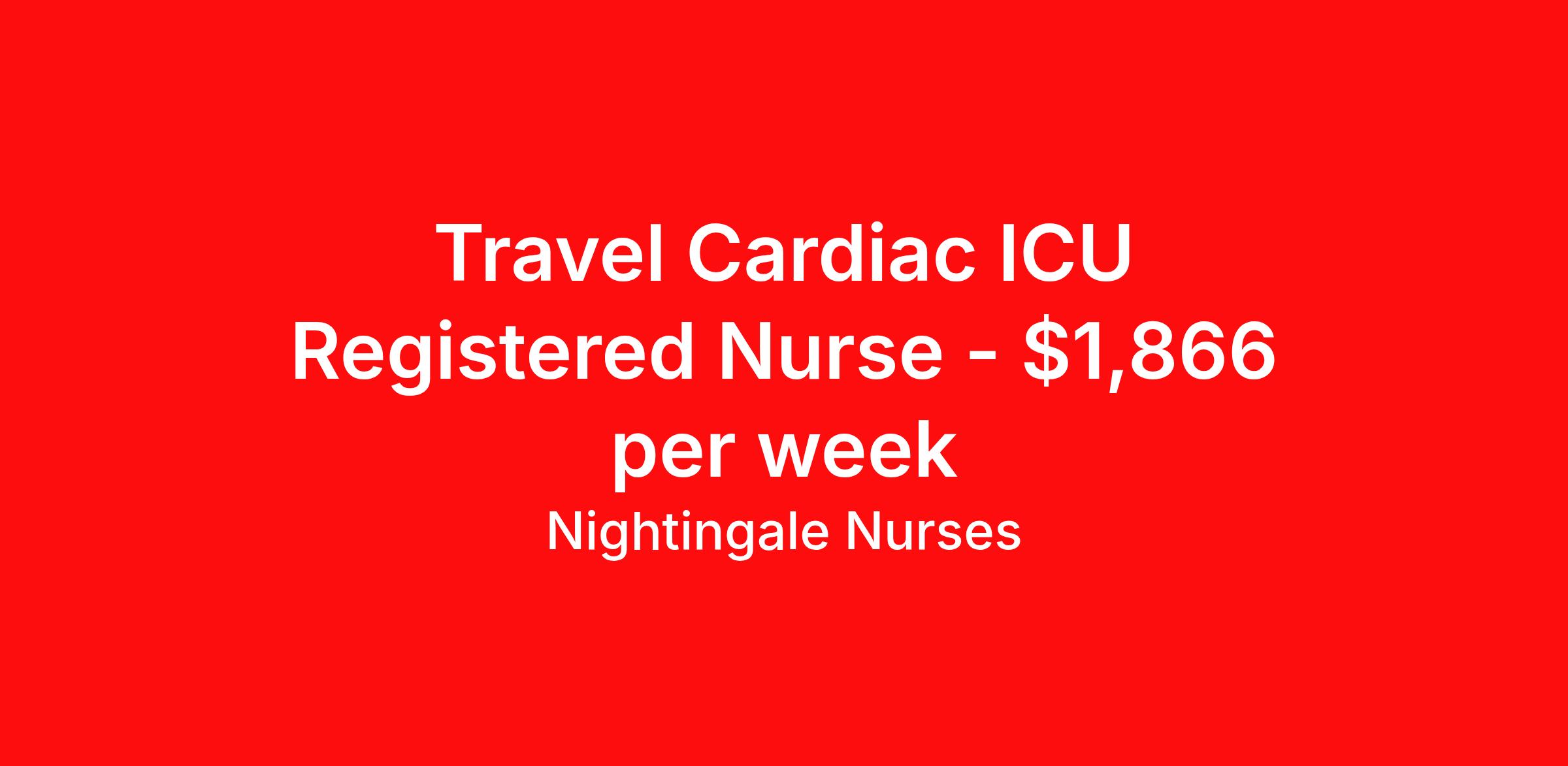 Nightingale Nurses is seeking a travel nurse RN CVICU for a travel nursing job in Columbia, Missouri. Job Description & Requirements Specialty: CVICU Discipline: RN Start Date: 04/13/2026 Duration: 13 weeks 36 hours per week Shift: 12 hours, nights Employment Type: Travel About Nightingale Nurses the first name in travel nursing You may not realize it, but as an RN with real world hospital experience, you are legendary. To the lives you’ve helped save, the patients you’ve cared for, and to the hospitals where you’ve done it. And you’re just getting started. Legendary is where Nightingale begins. We’re the first name in travel nursing, representing only the very best RNs. That’s why hospitals prefer us, allowing us to offer exceptional travel nursing assignments all over the US, as well as the highest pay rates and most extensive benefits in the industry. Nightingale facilitates every aspect of your travel nursing assignment, so you can focus on doing what you do best. We want you to grow, explore, and enjoy unrivaled liberty, the freedom to nurse.