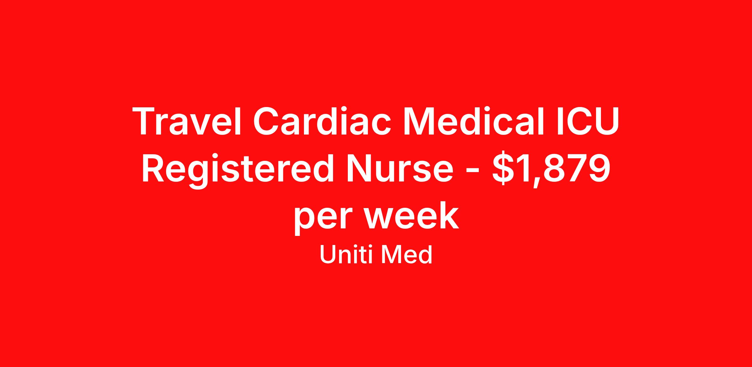 Travel Cardiac Medical ICU Registered Nurse - $1,879 per week