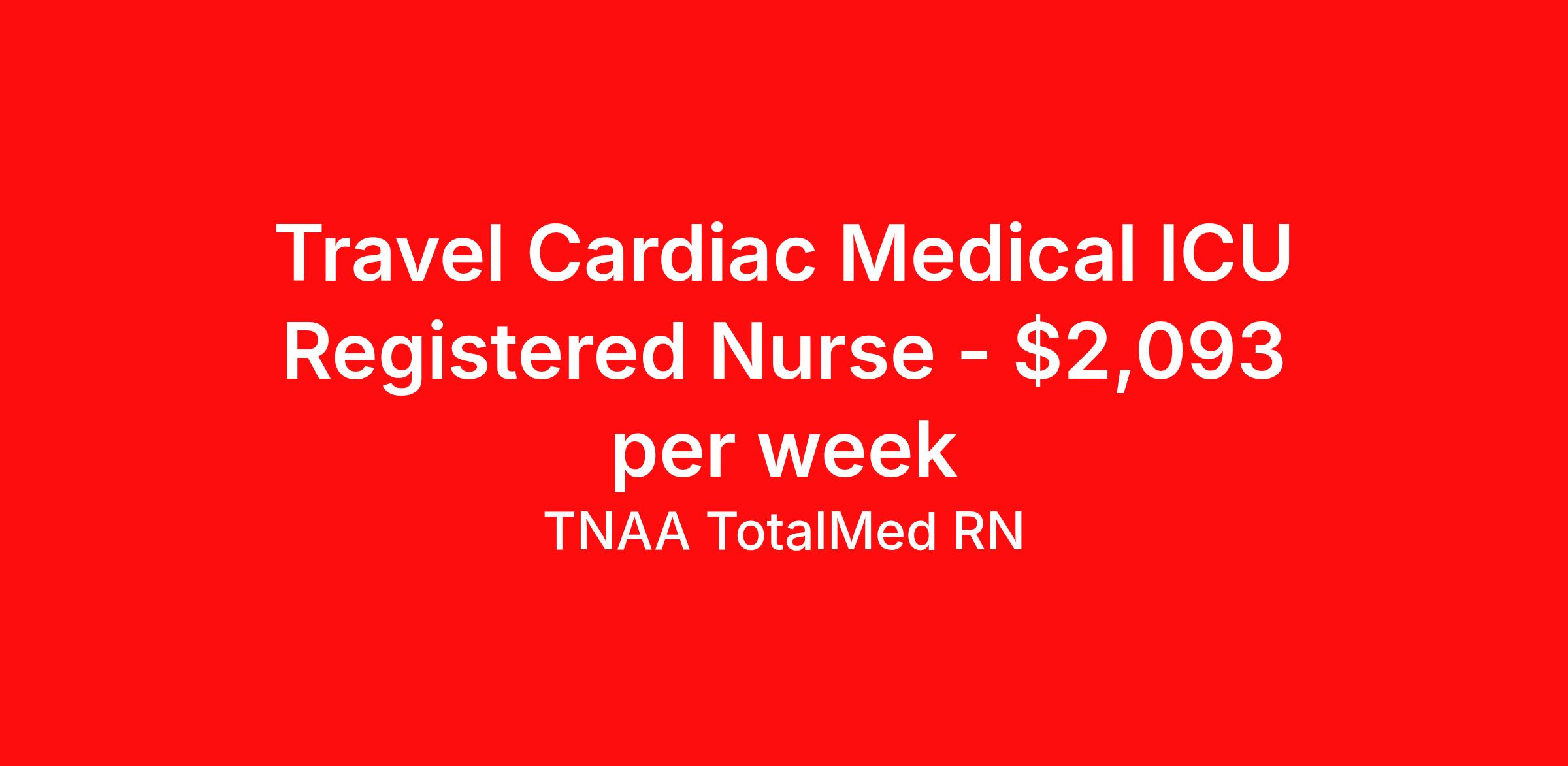 TNAA TotalMed RN is seeking a travel nurse RN CVICU for a travel nursing job in Saint Louis, Missouri. Job Description & Requirements Specialty: CVICU Discipline: RN Duration: 13 weeks 36 hours per week Shift: 12 hours, nights Employment Type: Travel We're looking for Cardiovascular Intensive Care Unit RNs for an immediate travel nurse opening in Saint Louis, MO. The right RN should have 1-2 years' recent acute care experience. Read below for more requirements. As a CVICU Travel Nurse, you will work with a diverse team of caregivers to administer care to patients following specialized procedures including open-heart surgery and heart transplants. Cardiovascular Intensive Care Unit RNs should have experience and skill caring for patients in a fast-paced, urgent and critical care environment. As a CVICU Travel Nurse, you should be prepared to perform the following tasks: Provide critical care to patients with potentially life-threatening heart conditions. Prepare and administer prescribed medications. Take samples for diagnostic tests; order, interpret and evaluate diagnostic tests. Apply hemodynamic, phlebotomy and IV protocols. Be called in for emergencies to provide CPR and operate defibrillators hospital-wide. Educate patients and family members on how to manage recovery at home. CVICU Travel Nurses should be able to stand and walk for long periods of time, as well as bend, lean and stoop without difficulty. RNs should be able to easily lift 20 pounds. Moving or lifting of patients may require lifting of up to 50 pounds at times. Because of the fast-paced environment, Cardiovascular Intensive Care Unit RNs must possess good skills for coping with stress and be able to relate to people of all ages and backgrounds. Requirements*: ACLS, BLS, NIH, 3 Years * Additional certifications may be required before beginning an assignment. TotalMed Travel Job ID 1394617. Pay package is based on 12 hour shifts and 36 hours per week (subject to confirmation) with tax-free stipend amount to be determined. Posted job title: Cardiovascular Intensive Care Unit - CVICU RN - Travel Nurse About TNAA TotalMed RN TotalMed is a Top Ten, travel nursing and healthcare staffing agency with the mission of igniting purpose in healthcare. The organization staffs nurses, therapists, pharmacists, and other clinicians of all specialties in all 50 states. They offer local and travel jobs and match caregivers with the right organization to assist both facilities and patients. As an organization, they focus on putting highly-skilled staff into facilities to ensure adequate staffing for a better patient experience. TotalMed specializes in recruiting and placing healthcare professionals in travel, PRN, and permanent positions across the country in Nursing and Allied Health. Throughout 2020, the organization filled roles at even the most short-staffed facilities during the most challenging time in healthcare. By matching the right travel healthcare professional with the right organization, TotalMed continues to offer a lifeline to facilities and their patients. Benefits Weekly pay Guaranteed Hours Continuing Education 401k retirement plan Sick pay Wellness and fitness programs Referral bonus Employee assistance programs Medical benefits Dental benefits Vision benefits Benefits start day 1