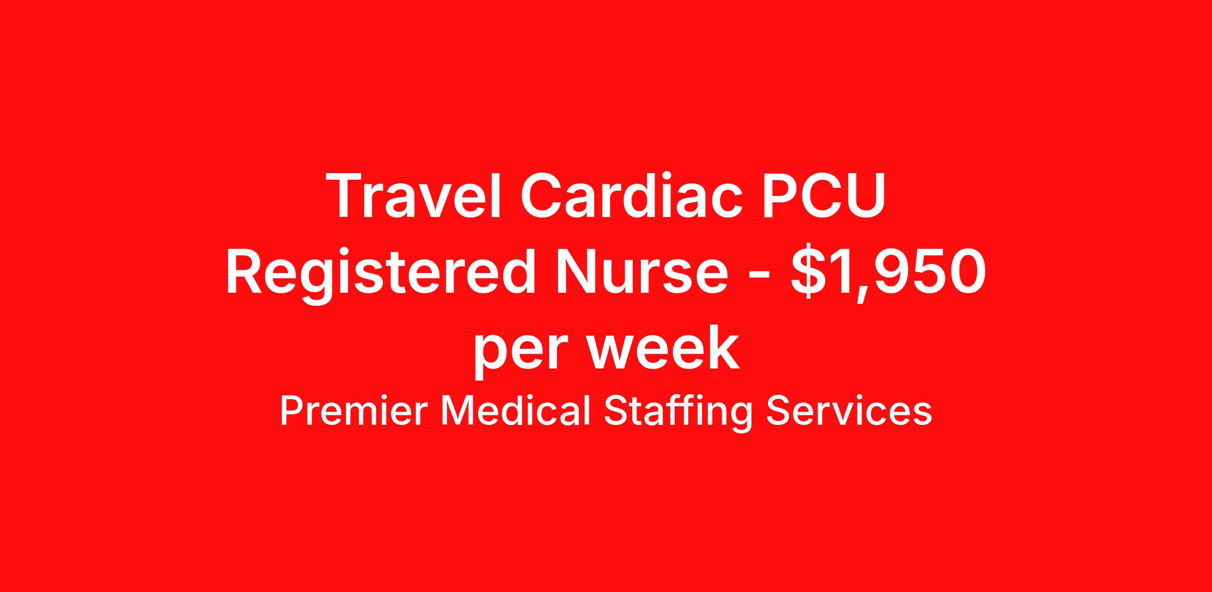 Premier Medical Staffing Services is seeking a travel nurse RN Cardiac Stepdown for a travel nursing job in Wilmington, North Carolina. Job Description & Requirements Specialty: Cardiac Stepdown Discipline: RN Start Date: ASAP Duration: 13 weeks 36 hours per week Shift: 12 hours Employment Type: Travel Premier Medical Staffing Job ID 607183. Pay package is based on 12 hour shifts and 36 hours per week (subject to confirmation) with tax-free stipend amount to be determined. Posted job title: RN PCU About Premier Medical Staffing Services Premier Medical Staffing Services, LLC is a nationally expanding healthcare staffing firm for healthcare professionals and companies. We understand our clients’ need for highly qualified, expertly trained medical professionals and are passionate about helping clinicians find employment opportunities that fit their personality and needs. Able to accommodate the ever-changing needs of the healthcare landscape, we offer per-diem, contract and direct hire placements to support the unique needs of each industry sector. Premier Medical Staffing Services is Joint Commission Certified, a Military Spouse Employment Partner and is certified as a Women’s Business Enterprise. We are proudly nurse owned.