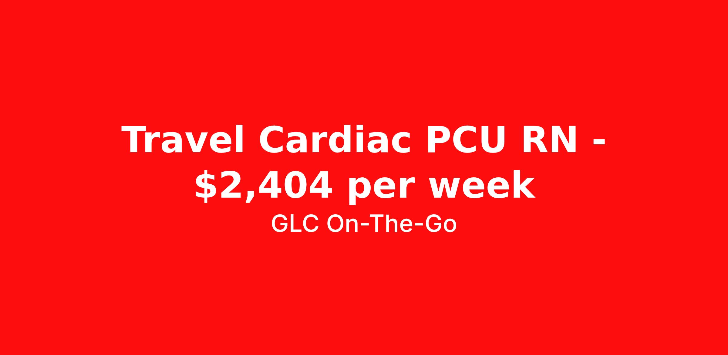 GLC On-The-Go is seeking a travel nurse RN Intermediate Care for a travel nursing job in Burlington, Vermont. Job Description & Requirements Specialty: Intermediate Care Discipline: RN Start Date: 05/18/2026 Duration: 13 weeks 36 hours per week Shift: 12 hours Employment Type: Travel GLC is hiring: RN IMC/IMU/PCU/STEPDOWN - Burlington, VT - 16-week contract GLC – Named Best Nurse Agency 2024–2025 We connect nurses, nursing professionals, and allied health professionals like you to contracts that align with your skills, schedule, and career goals. About this Assignment Join the care team in IMC/IMU/PCU/STEPDOWN where you’ll provide patient-centered care in a collaborative environment. Typical responsibilities include direct patient care, timely documentation, and coordination with the care team. Specific duties will be confirmed during your interview with a recruiter. Assignment Details Location: Burlington, VT Assignment Length: 16 weeks Start Date: 05/18/2026 End Date: 09/07/2026 Pay Range: $2,164 - $2,404 Minimum Requirements Active license in IMC/IMU/PCU/STEPDOWN 1 year full-time RN, IMC/IMU/PCU/STEPDOWN experience within the last 2 years What you can expect from GLC Weekly on-time pay with direct deposit Transparent communication, clear assignment details, and recruiter support from start to finish - or extension Referral bonus up to $500 Health, dental, and vision insurance 401(k) plan Completion and signing bonuses may also be available Ready to move forward? Apply now and start your rewarding journey with GLC - a recruiter will connect quickly to review pay , start date , and assignment details so you can make the best decision for your next contract. GLC On-The-Go Job ID 504977. Pay package is based on 12 hour shifts and 36 hours per week (subject to confirmation) with tax-free stipend amount to be determined. Posted job title: IMC Registered Nurse About GLC On-The-Go GLC is more than just a staffing agency – we’re your trusted partner in finding travel, local, and PRN contracts that align with your career aspirations and lifestyle. We specialize in connecting travel nurses and allied healthcare professionals like you with opportunities in acute care, long-term care, behavioral health, and allied fields across the U.S. Our attentive and friendly recruiters are always just a call or text away, ready to guide you at every step, ensuring you feel valued and heard. We understand the unique needs of travel healthcare professionals, which is why we offer comprehensive benefits and 24/7 support. Join GLC, where our 20 years of experience mean we know how to help you find the assignments that turn your career goals into reality. With us, it's not just a placement – it's your dream career made possible