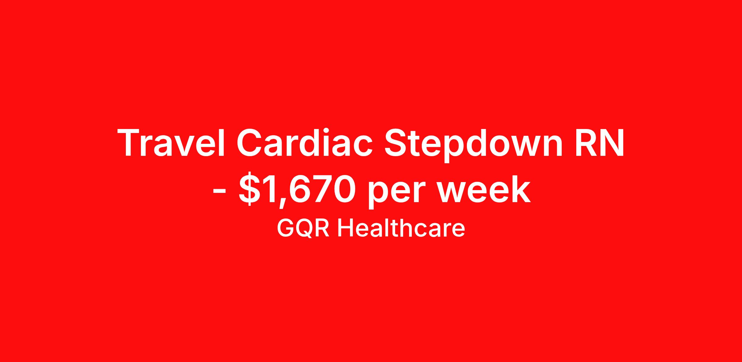 GQR Healthcare is seeking a travel nurse RN Cardiac Stepdown for a travel nursing job in St. Louis, Missouri. Job Description & Requirements Specialty: Cardiac Stepdown Discipline: RN Start Date: ASAP Duration: 13 weeks 36 hours per week Shift: 12 hours, nights Employment Type: Travel Step Down Unit RN Job Location: St. Louis, MO Profession: Registered Nurse Estimated Pay: $1670.40 Duration (weeks): 13 Specialty: Step Down Unit Shift Details: Night *Estimated weekly pay includes projected hourly wages and weekly meal and lodging per diems for eligible clinicians based on nationally published GSA rates. Actual weekly pay and per diems may differ from the amount shown and are subject to change during an assignment. Benefits: Day 1 Insurance Cigna medical, MetLife dental and vision insurance License reimbursement for new licenses needed for each assignment Discounts with hotels and rental cars A dedicated recruiter and support team that will help you every step of the way to sure you start on time and have an exceptional experience Referral bonus up to $700 About the Company: Finding the right role is about more than just matching skills to a job—it’s about aligning with your goals, values, and the way you want to work. As an award-winning talent partner, we support healthcare professionals through every step of that process, offering meaningful opportunities, clear guidance, and long-term partnership. From our first conversation to your first day on the job (and beyond!), we’re here to help you move forward with confidence. GQR Job ID 789126. Pay package is based on 12 hour shifts and 36 hours per week (subject to confirmation) with tax-free stipend amount to be determined. Posted job title: Registered Nurse (RN) About GQR Healthcare GQR’s Healthcare team specializes in connecting experts within the industry to highly skilled healthcare professionals across the US market. In the competitive healthcare market, we recognize that the industry’s common goals of improved quality of care and patient outcomes are wholly reliant upon the professionals directly supporting these initiatives. Leveraging our extensive candidate network, we deliver continuity of care for the communities our partners serve to ensure the patient experience is of the highest quality. Through deep market specialization and a unique approach to talent acquisition, GQR Healthcare provides an unparalleled and personalized experience across all medical specialties in nursing and within diverse healthcare platforms across the industry.
