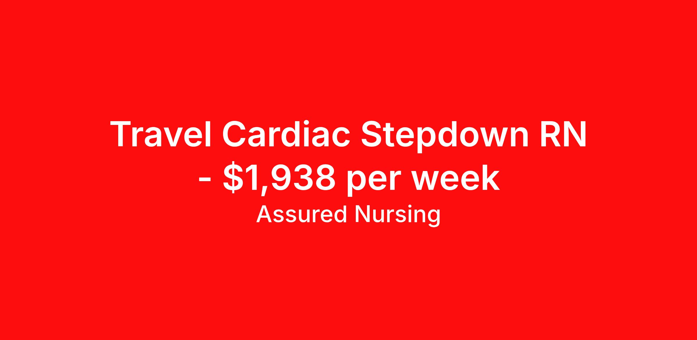 Assured Nursing is seeking a travel nurse RN Cardiac Stepdown for a travel nursing job in Saint Louis, Missouri. Job Description & Requirements Specialty: Cardiac Stepdown Discipline: RN Start Date: ASAP Duration: 13 weeks 36 hours per week Shift: 12 hours, nights Employment Type: Travel Assured Nursing is currently seeking a RN for a contract position in Saint Louis Missouri . This is a 7p-7:30a, 19:00:00-07:30:00, 12.00-3 position in the Mercy . The ideal candidate will possess a current state license as a RN and have at least 2 years of recent experience as a Stepdown RN . Assured Nursing Job ID 36197928. Pay package is based on 12 hour shifts and 36.0 hours per week (subject to confirmation) with tax-free stipend amount to be determined. Posted job title: RN:Stepdown,19:00:00-07:30:00 Benefits Weekly pay Holiday Pay 401k retirement plan Referral bonus Medical benefits Dental benefits Vision benefits