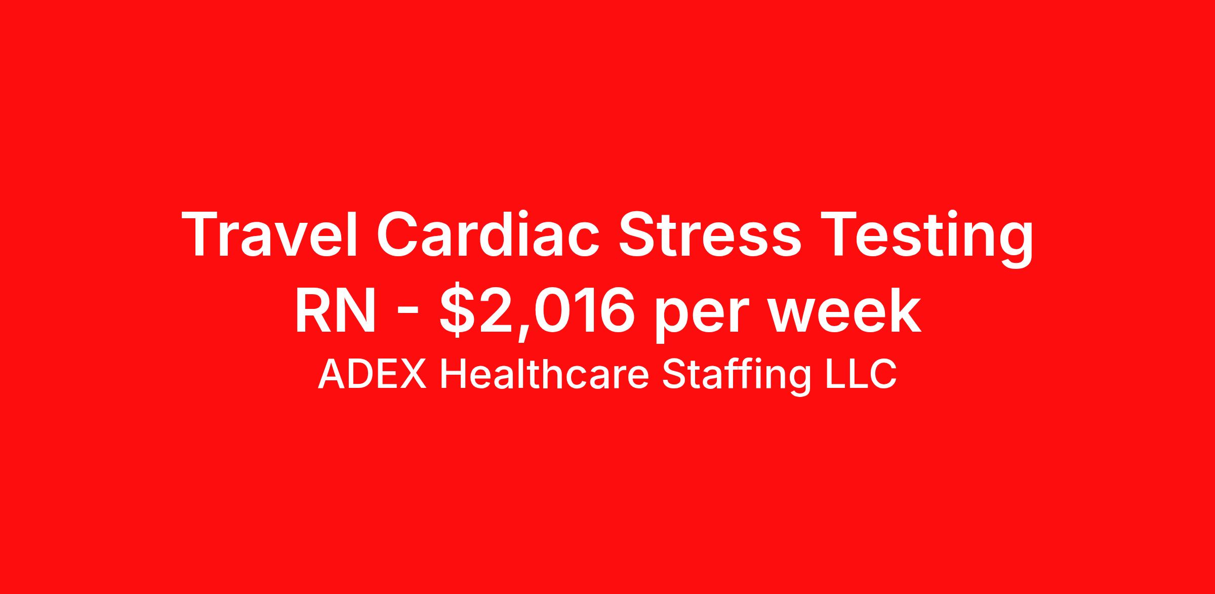 ADEX Healthcare Staffing LLC is seeking a travel nurse RN Cardiology for a travel nursing job in Snellville, Georgia. Job Description & Requirements Specialty: Cardiology Discipline: RN Start Date: 04/13/2026 Duration: 14 weeks 40 hours per week Shift: 10 hours, days Employment Type: Travel RN Position Job Notes: Travel or Local Registered Nurse needed for ASAP start. A minimum of 2 years of recent hospital bedside experience is required. Candidates must be able to start within 5 weeks. Opportunity for extension upon successful completion of the initial assignment. $750 referral bonus available. Opportunity: RN - Cardiac Job Details: • Minimum 2 years of nursing experience required • Travel experience required • Patient population includes adults to geriatrics • Required certifications: BLS, ACLS • Perform cardiac stress testing including Exercise Stress Test, Pharmacological Stress Test (primarily Dobutamine), and Stress Echo • Obtain 12 lead EKG/ECG • Work with Epic and Pyxis systems • Dark blue scrubs required • Maximum 7 days requested time off allowed • No weekend requirements • Floating within facility/scope of practice as needed • No call requirements • Holiday work required based on assignment period: work one holiday if one falls during assignment, work both if two fall during assignment, work two of three if three fall during assignment • Major holidays include Memorial Day, Independence Day, Labor Day, Thanksgiving/Black Friday, Christmas Eve/Christmas Day, New Years Eve/New Years Day • Clinical screening required to determine clinical fit • Full compliance required to start on time • Georgia or Compact license must be in hand at time of submittal • Two supervisory references highly preferred • Must be available to submit core items and complete labs within 48 hours of signing contract Facility: This healthcare facility provides comprehensive cardiac services with a focus on diagnostic testing and cardiac care. The facility utilizes modern technology including Epic electronic health records and Pyxis medication management systems. The organization maintains high clinical standards with thorough screening processes and structured orientation programs to ensure quality patient care and safety. Location: Snellville, GA Snellville offers a charming suburban atmosphere just outside of Atlanta, providing easy access to big-city amenities while maintaining a close-knit community feel. The area features excellent schools, parks, and recreational opportunities, making it an ideal location for healthcare professionals seeking work-life balance in the greater Atlanta metropolitan area. Adex Job ID 3211362. Pay package is based on 10 hour shifts and 40 hours per week (subject to confirmation) with tax-free stipend amount to be determined. About ADEX Healthcare Staffing LLC ADEX has been placing healthcare professionals across the US since 2004. Originally founded in Atlanta, GA, the company's headquarters are now located in Tampa, FL. JCAHO certified since 2009. Benefits Referral bonus