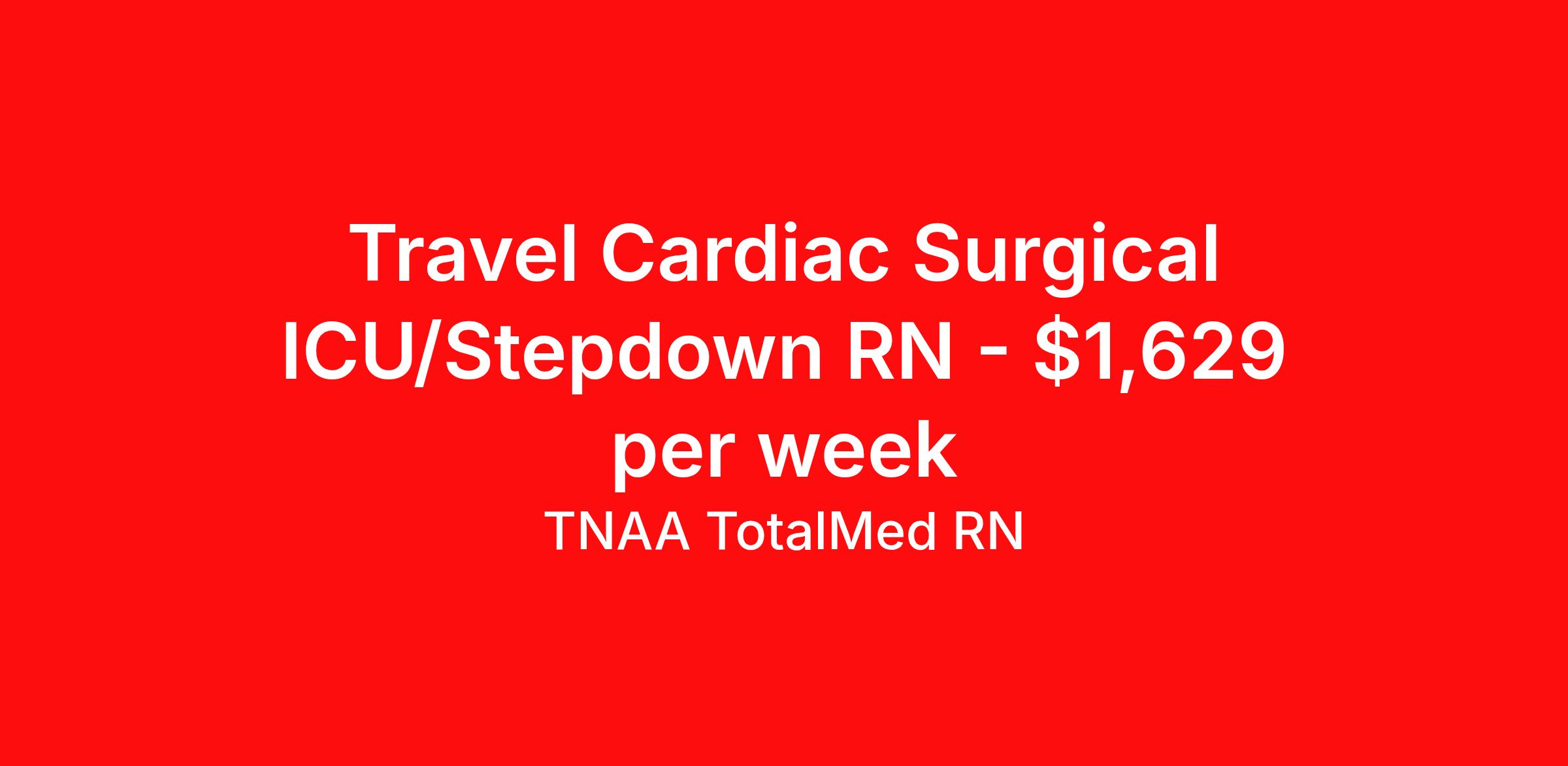 TNAA TotalMed RN is seeking a travel nurse RN CVICU for a travel nursing job in Tuscaloosa, Alabama. Job Description & Requirements Specialty: CVICU Discipline: RN Start Date: ASAP Duration: 13 weeks 36 hours per week Shift: 12 hours, nights Employment Type: Travel We're looking for Cardiovascular Intensive Care Unit RNs for an immediate travel nurse opening in Tuscaloosa, AL. The right RN should have 1-2 years' recent acute care experience. Read below for more requirements. As a CVICU Travel Nurse, you will work with a diverse team of caregivers to administer care to patients following specialized procedures including open-heart surgery and heart transplants. Cardiovascular Intensive Care Unit RNs should have experience and skill caring for patients in a fast-paced, urgent and critical care environment. As a CVICU Travel Nurse, you should be prepared to perform the following tasks: Provide critical care to patients with potentially life-threatening heart conditions. Prepare and administer prescribed medications. Take samples for diagnostic tests; order, interpret and evaluate diagnostic tests. Apply hemodynamic, phlebotomy and IV protocols. Be called in for emergencies to provide CPR and operate defibrillators hospital-wide. Educate patients and family members on how to manage recovery at home. CVICU Travel Nurses should be able to stand and walk for long periods of time, as well as bend, lean and stoop without difficulty. RNs should be able to easily lift 20 pounds. Moving or lifting of patients may require lifting of up to 50 pounds at times. Because of the fast-paced environment, Cardiovascular Intensive Care Unit RNs must possess good skills for coping with stress and be able to relate to people of all ages and backgrounds. Requirements*: ACLS, BLS, NIH, 2 Years * Additional certifications may be required before beginning an assignment. TotalMed Travel Job ID 1368336. Pay package is based on 12 hour shifts and 36 hours per week (subject to confirmation) with tax-free stipend amount to be determined. Posted job title: Cardiovascular Intensive Care Unit - CVICU RN - Travel Nurse About TNAA TotalMed RN TotalMed is a Top Ten, travel nursing and healthcare staffing agency with the mission of igniting purpose in healthcare. The organization staffs nurses, therapists, pharmacists, and other clinicians of all specialties in all 50 states. They offer local and travel jobs and match caregivers with the right organization to assist both facilities and patients. As an organization, they focus on putting highly-skilled staff into facilities to ensure adequate staffing for a better patient experience. TotalMed specializes in recruiting and placing healthcare professionals in travel, PRN, and permanent positions across the country in Nursing and Allied Health. Throughout 2020, the organization filled roles at even the most short-staffed facilities during the most challenging time in healthcare. By matching the right travel healthcare professional with the right organization, TotalMed continues to offer a lifeline to facilities and their patients. Benefits Weekly pay Guaranteed Hours Continuing Education 401k retirement plan Sick pay Wellness and fitness programs Referral bonus Employee assistance programs Medical benefits Dental benefits Vision benefits Benefits start day 1