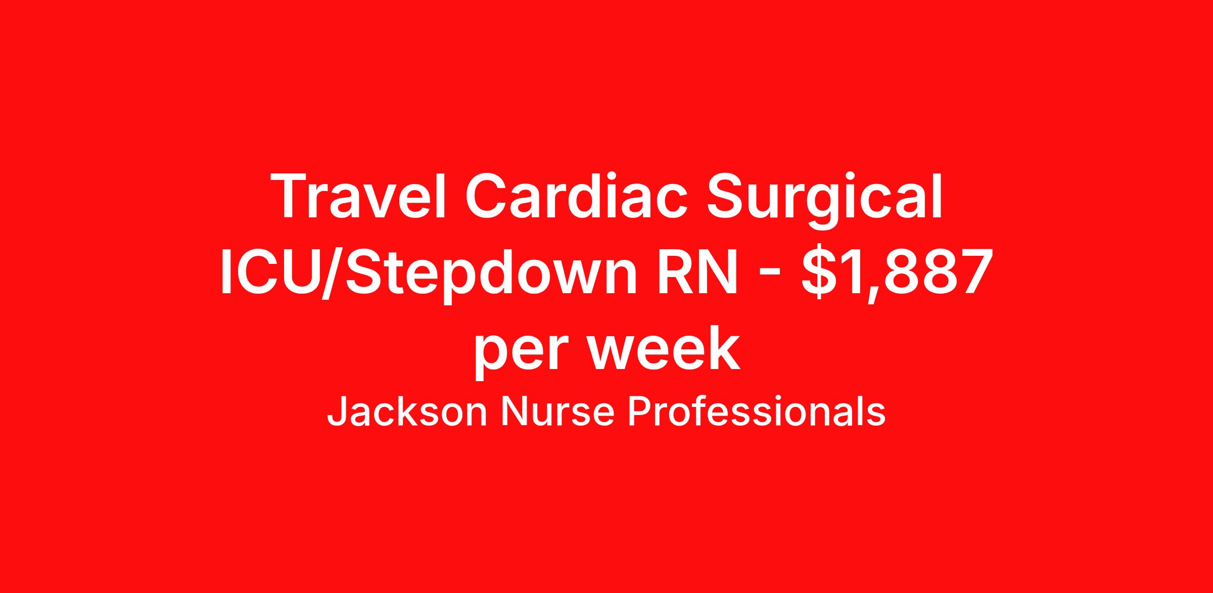 Jackson Nurse Professionals is seeking a travel nurse RN PCU - Progressive Care Unit for a travel nursing job in Tuscaloosa, Alabama. Job Description & Requirements Specialty: PCU - Progressive Care Unit Discipline: RN Start Date: ASAP Duration: 9 weeks 36 hours per week Shift: 12 hours, nights Employment Type: Travel At Jackson Nurse Professionals , we are dedicated to supporting travel nurses and helping you build a fulfilling nursing career. Whether you’re looking for your first or next travel nursing assignment, we specialize in connecting healthcare professionals with leading medical facilities. With a focus on personalized service and a wide range of opportunities, we make it easier than ever for nurses to find the right balance of adventure and professional growth. Qualifications: 2 years of recent experience in area of specialty listed on job Current BLS required (certifications vary by location – job may require ACLS) Valid license and/or certification in state of practice Valid Driver's License Background and drug screen Benefits: Full Medical, Dental and Vision Insurance 401(k) with Employer Match 24/7/365 Support from your Recruiter available by text, phone, or email Referral Bonus Program: Give $200, Get $500 for every referral Same Day Immediate Pay Access Certification & Licensure Reimbursement Apply today to experience the Jackson Nurse Professionals difference! Jackson Nurse Professionals Job ID 2434622. Pay package is based on 12 hour shifts and 36 hours per week (subject to confirmation) with tax-free stipend amount to be determined. About Jackson Nurse Professionals Filling critical needs in patient care, Jackson Nurse Professionals delivers cost-effective travel nurse staffing solutions to over 500 hospitals, outpatient clinics, and home health clients nationwide. Awarded Best of Staffing - Talent and Client 2024, and rated as a Top Workplace 2023 by the Orlando Sentinel, Jackson Nurse Professionals goes the extra mile to provide travel nurses the career they deserve, while providing clients with a large range of highly skilled nurses to fill short, long-term, and temporary assignments. As a member of Jackson Healthcare’s family of award-winning staffing companies, we’re part of a growing community that’s impacting 10 million patients nationwide. Join our mission to improve the delivery of patient care, and the lives of everyone we touch.