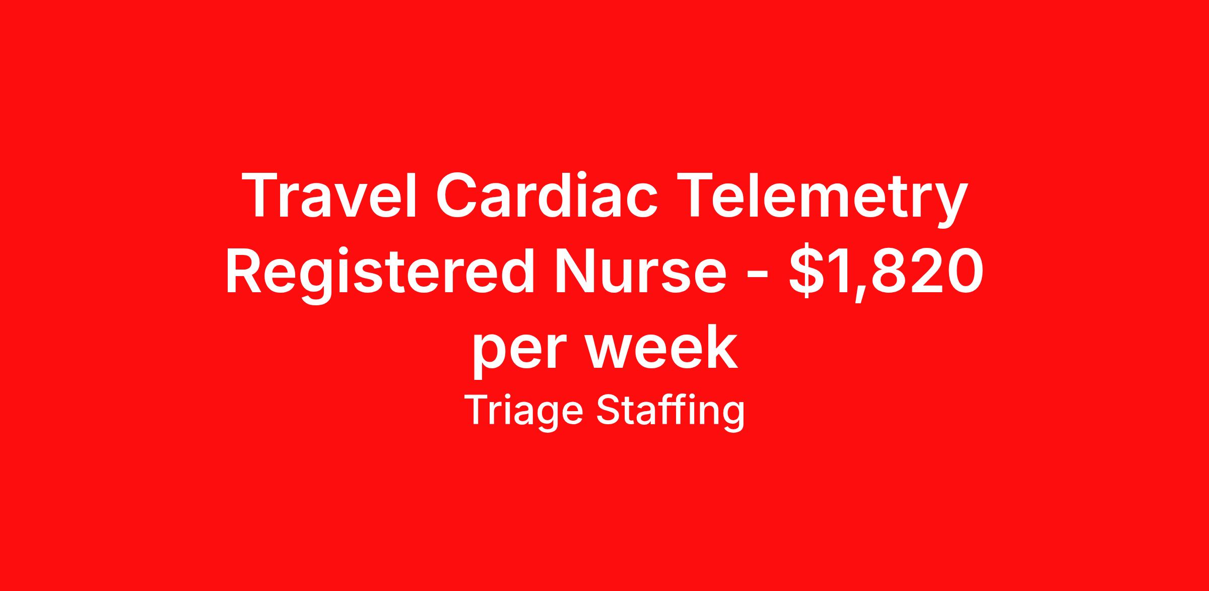 Travel Cardiac Telemetry Registered Nurse - $1,820 per week