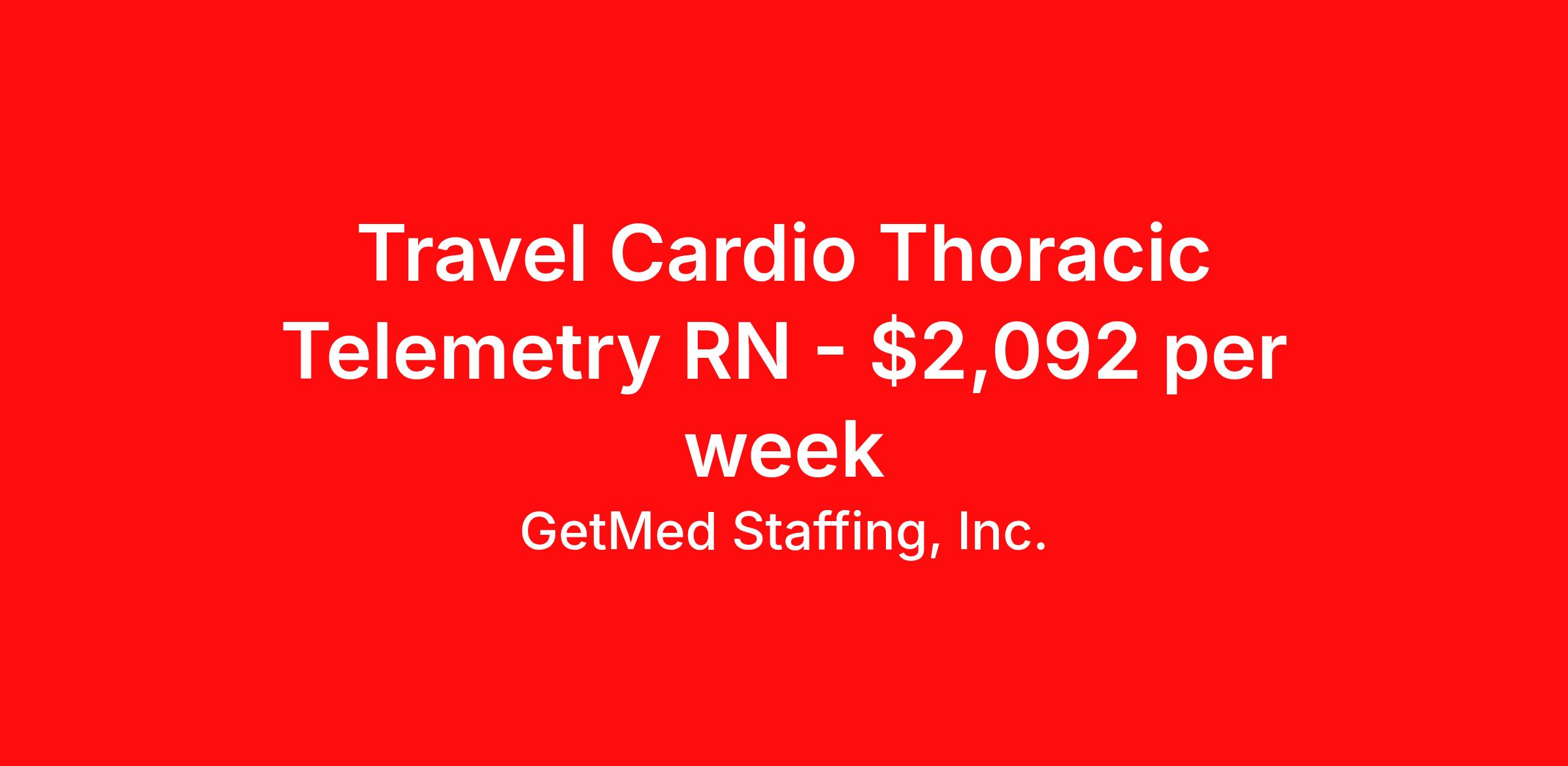 GetMed Staffing, Inc. is seeking a travel nurse RN Telemetry for a travel nursing job in Peoria, Illinois. Job Description & Requirements Specialty: Telemetry Discipline: RN Start Date: 03/30/2026 Duration: 13 weeks 36 hours per week Shift: 12 hours, nights Employment Type: Travel GetMed Staffing is searching for a strong Telemetry RN to assist our traveler-friendly client. A minimum of 1-2 years of experience is required. Traveling with GetMed Staffing offers the unique opportunity to gain diverse experiences, both personally and professionally. Gain experience that matters. GetMed Staffing, Inc. Job ID 36161638. Pay package is based on 12 hour shifts and 36.0 hours per week (subject to confirmation) with tax-free stipend amount to be determined. Posted job title: RN:Telemetry,19:00:00-07:00:00 About GetMed Staffing, Inc. We are a diversity owned company, specializing in healthcare recruiting services. We truly understand how important a healthcare travelers' relationship is with their recruiter, as well as our relationship is with our healthcare facilities. We recognize that the needs of our healthcare travelers can vary, and therefore we provide the personalized touch necessary to ensure a successful travel assignment each and every time. Our healthcare facilities and clients benefit from us putting our healthcare travelers first. GetMed Staffing is excited to be a leader within the industry by focusing on providing healthcare travelers with more choices and possibilities as they plan for their next healthcare travel assignment. Benefits Life insurance Medical benefits Dental benefits Vision benefits 401k retirement plan