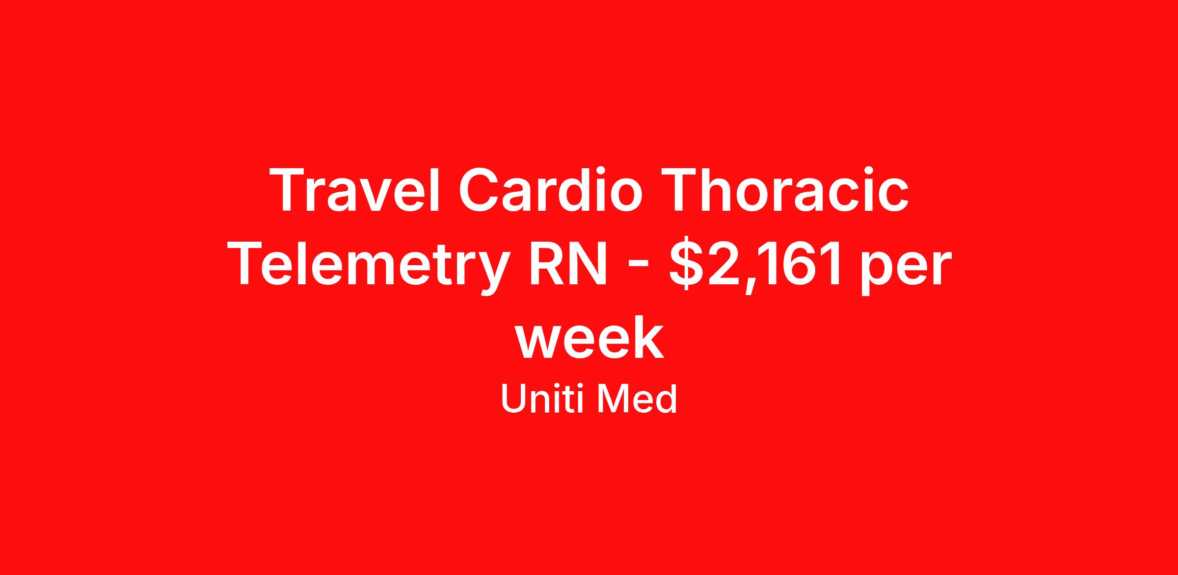Travel Cardio Thoracic Telemetry RN - $2,161 per week