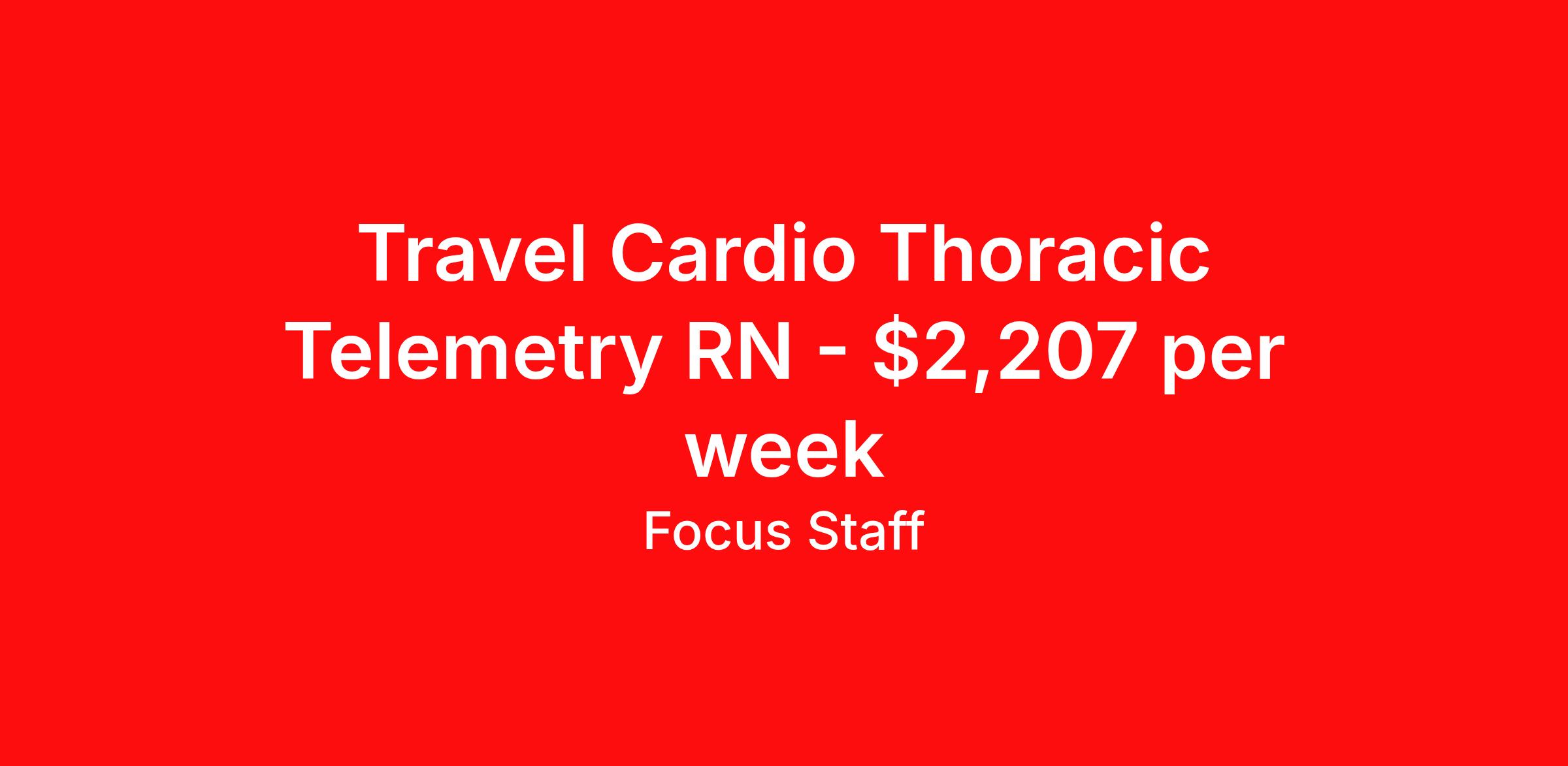 Travel Cardio Thoracic Telemetry RN - $2,207 per week
