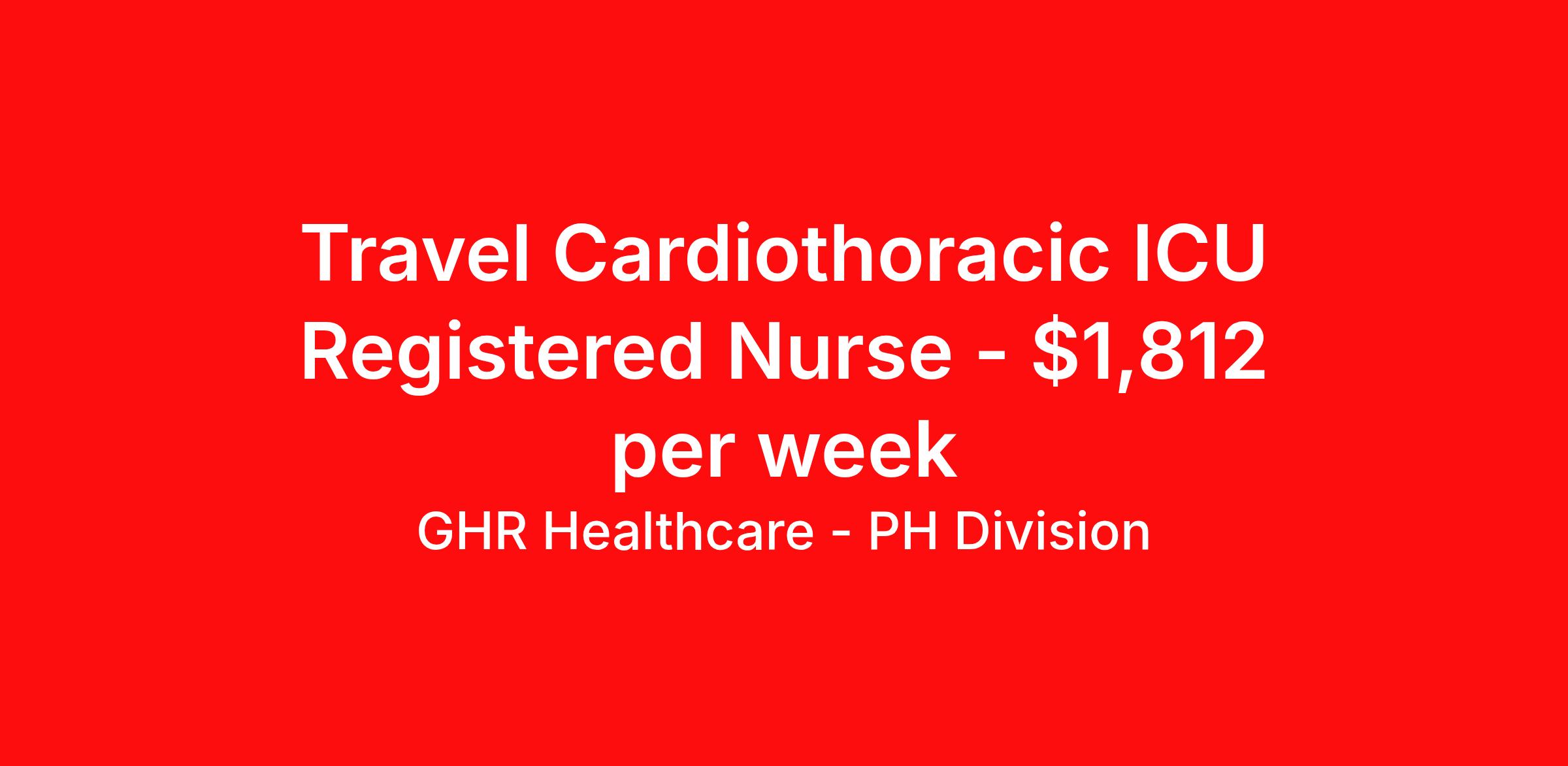 GHR Healthcare - PH Division is seeking a travel nurse RN CTICU - Cardiothoracic Intensive Care for a travel nursing job in Albuquerque, New Mexico. Job Description & Requirements Specialty: CTICU - Cardiothoracic Intensive Care Discipline: RN Start Date: 05/04/2026 Duration: 13 weeks 36 hours per week Shift: 12 hours Employment Type: Travel Planet Healthcare Job ID 76376937. Pay package is based on 12 hour shifts and 36 hours per week (subject to confirmation) with tax-free stipend amount to be determined. About GHR Healthcare - PH Division For over 30 years, GHR Healthcare has been the bridge between healthcare professionals and the facilities that need them nationwide. We're committed to uncovering your ideal fit, supported by GHR's dedication to competitive compensation, transparent communication, and a devoted team that genuinely cares about your career journey. You can trust us to stand by your side as your advocate, confidante, and partner in advancing your career. At GHR, care and consideration are at the heart of everything we do. Visit ghrhealthcare.com to learn more.