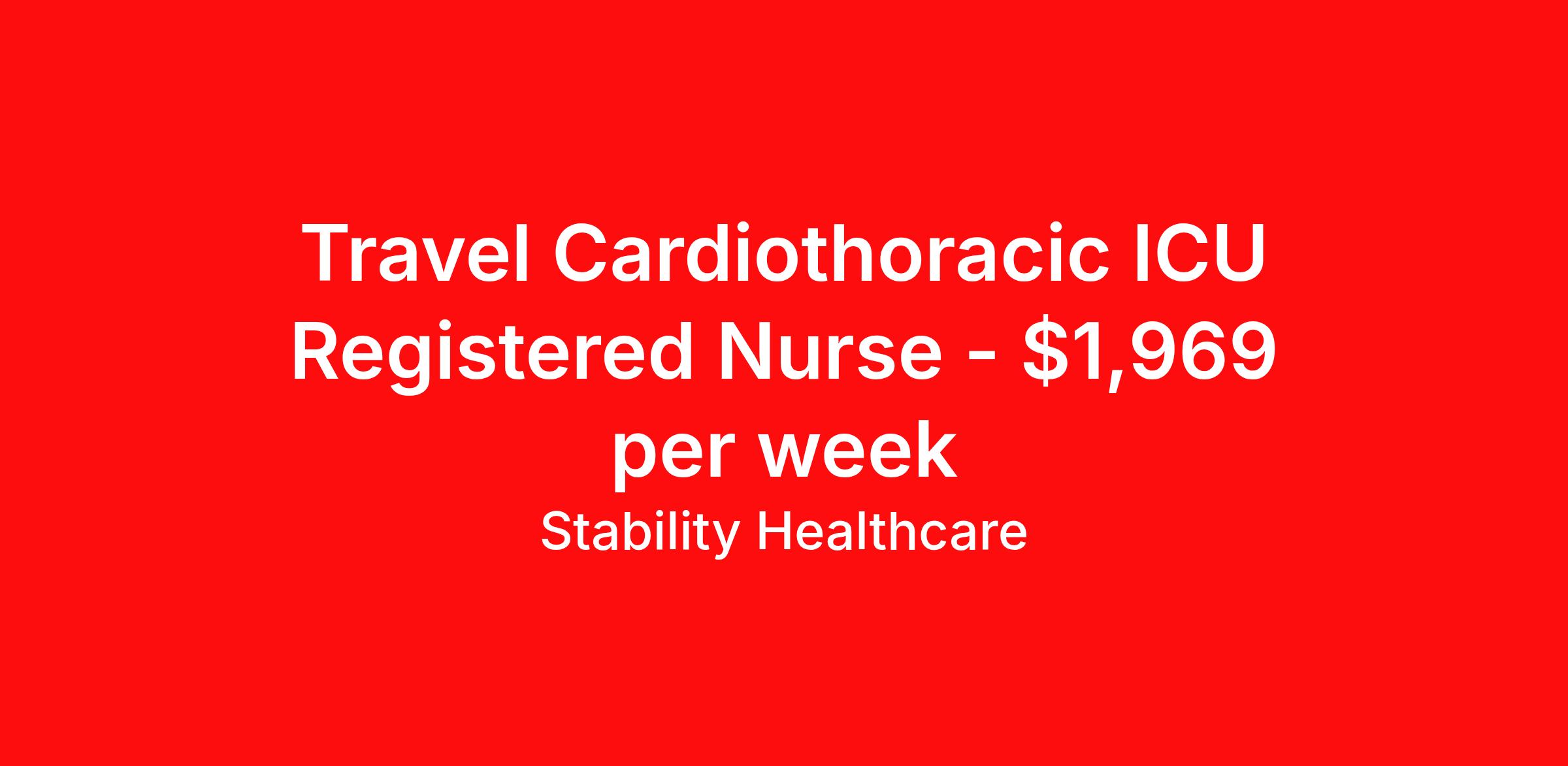 Stability Healthcare is seeking a travel nurse RN CVICU for a travel nursing job in Seattle, Washington. Job Description & Requirements Specialty: CVICU Discipline: RN Duration: 13 weeks 36 hours per week Shift: 12 hours Employment Type: Travel Stability Healthcare is looking for a CVICU RN contract position in Seattle, WA. Nurses working in the cardiovascular intensive care unit provide care for patients recovering from open-heart surgery and heart transplants. CVICU Nurses observe changes, perform diagnostics tests, analyze charts, and record medical histories of patients. *$600 travel bonus *Day 1 health insurance with United Healthcare *PTO plan start accruing on day 1, use during contract or cash out at the end! *Guaranteed stipend if facility calls you off *Extra hour bonus earn an additional hourly bonus for working over your weekly contracted hours Stability Job ID 827676. Pay package is based on 12 hour shifts and 36 hours per week (subject to confirmation) with tax-free stipend amount to be determined. Posted job title: CVICU About Stability Healthcare Stability Healthcare was founded in 2009, with the mission of becoming the best Travel Nursing Agency in California. We have been rated one of the top travel nursing agencies and offer our nurses the highest paying travel nursing jobs available. We have access to the best travel assignments from 1000’s of facilities. You can start the year off in sunny California, spend the Spring in the Colorado Rockies, enjoy the Summer in the Mid-West, experience the change of seasons in Boston and New York, and hit the beaches of Florida in the winter. Our Nurses work in the best hospitals and health systems in the country. Benefits Guaranteed Hours Benefits start day 1