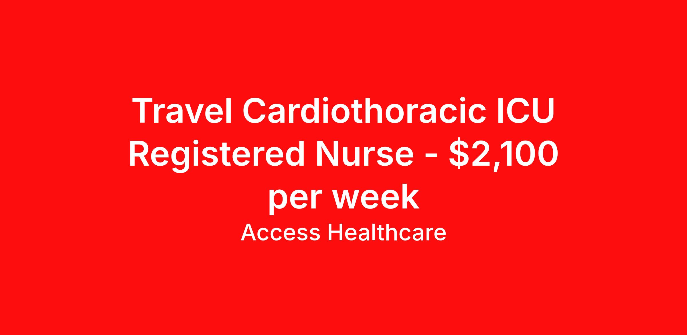 Access Healthcare is seeking a travel nurse RN CVICU for a travel nursing job in Seattle, Washington. Job Description & Requirements Specialty: CVICU Discipline: RN Start Date: 04/06/2026 Duration: 13 weeks 36 hours per week Shift: 12 hours, rotating Employment Type: Travel Access Healthcare Job ID 76321500. Pay package is based on 12 hour shifts and 36 hours per week (subject to confirmation) with tax-free stipend amount to be determined. About Access Healthcare Access Healthcare aims to provide superior service to our nursing family by providing around the clock support, competitive pay packages and an unmatched benefits package! Unlike other agencies, we offer a true family feel and work with you to find the placement that is right for you. We offer one of the top leading pay packages in the industry and we are ready to get you the money you deserve! Access Healthcare was founded by two travel nurses, Danielle and Diego, who had a dream and a shared vision of creating an agency which all nurses would want to work with. Our passion has led us to where we are today as one of the top 10 agencies in our home state of New Jersey, with access to contracts in all 50 states! We encourage you to join our team and we cannot wait to get to know you!