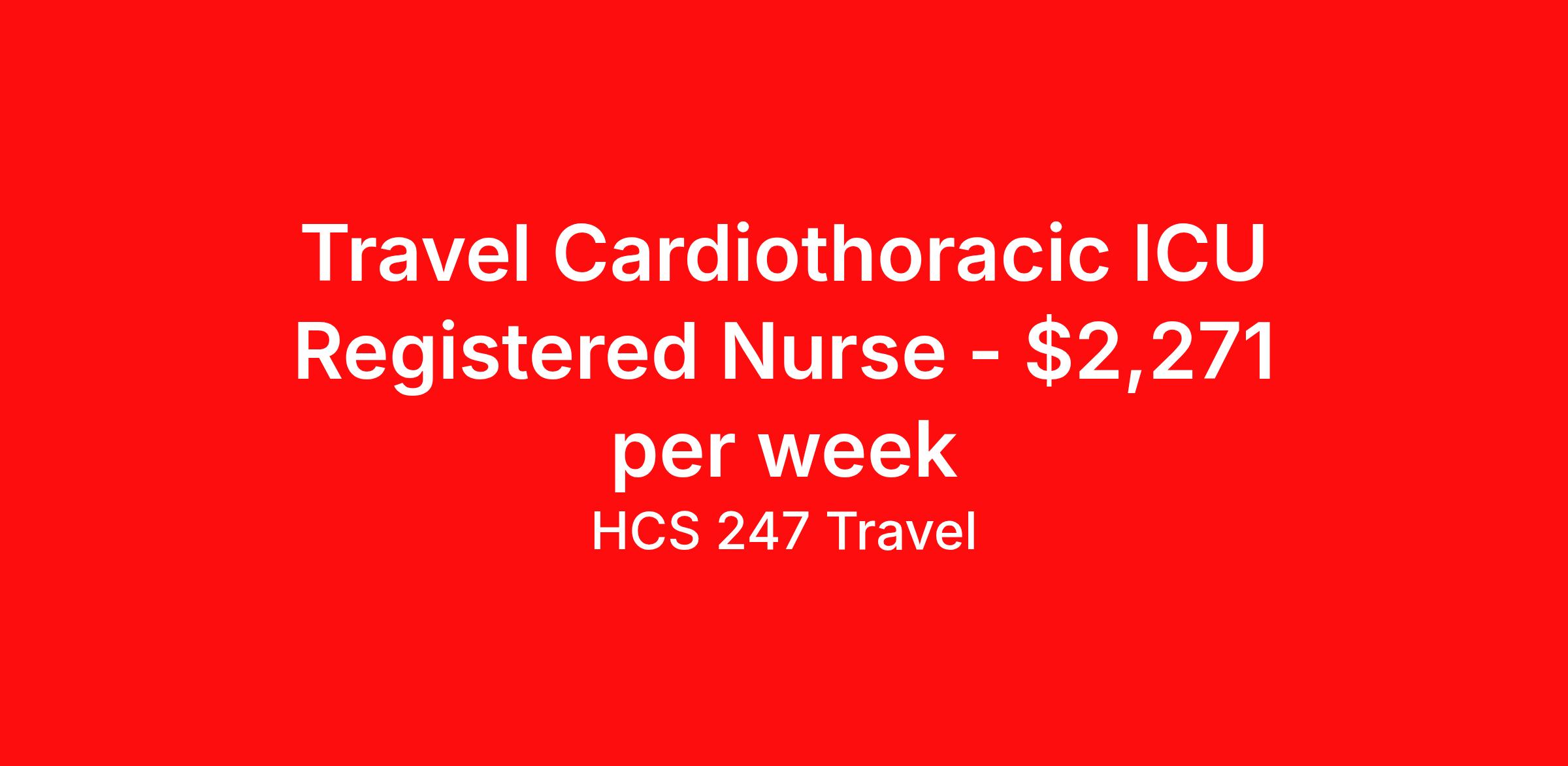 Travel Cardiothoracic ICU Registered Nurse - $2,271 per week
