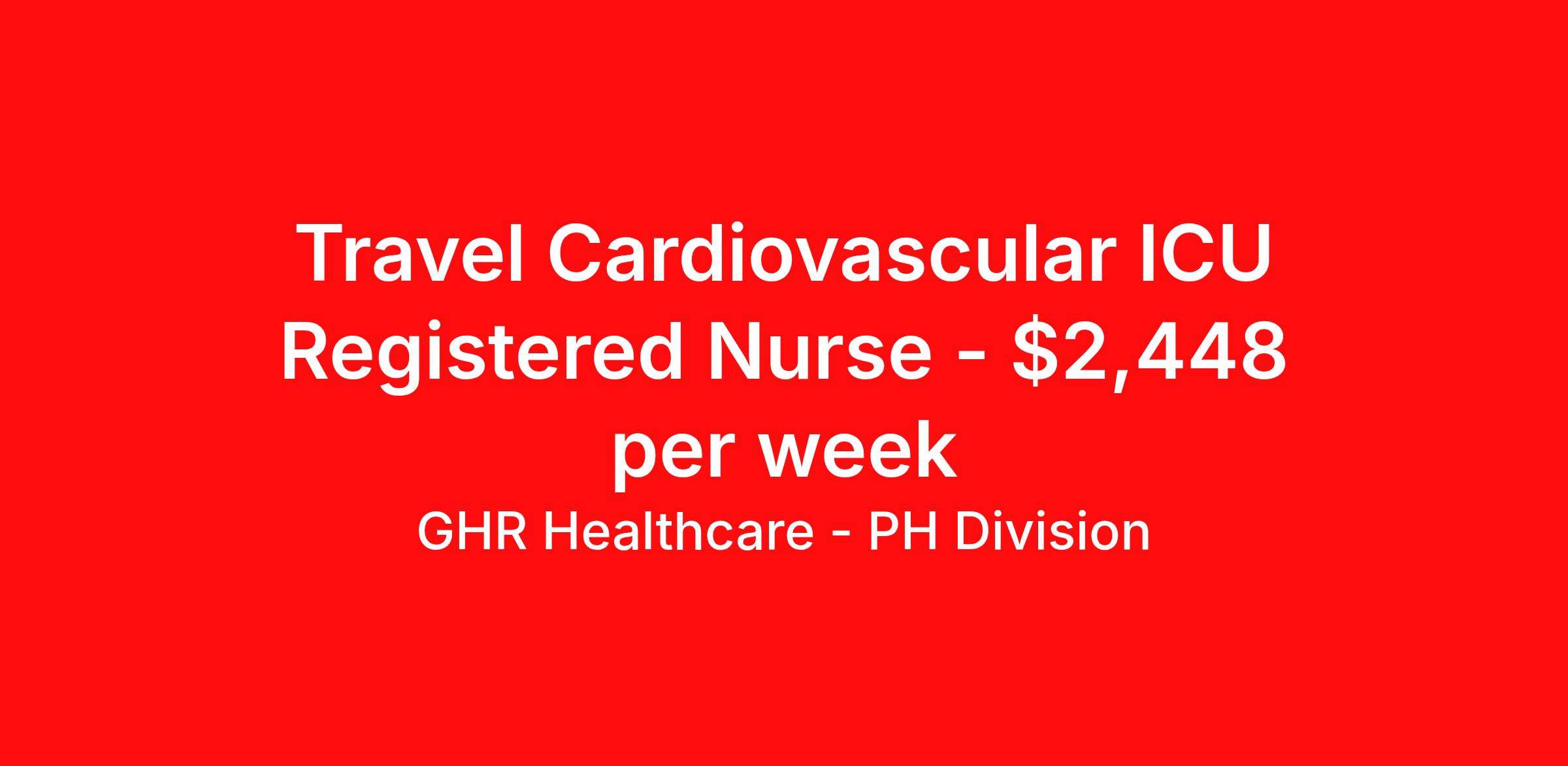 GHR Healthcare - PH Division is seeking a travel nurse RN CVICU for a travel nursing job in Great Falls, Montana. Job Description & Requirements Specialty: CVICU Discipline: RN Start Date: ASAP Duration: 13 weeks 36 hours per week Shift: 12 hours Employment Type: Travel Registered Nurse (RN) - CVICU / Cardiac ICU (Night) — Travel | Great Falls, MT CVICU Registered Nurse (RN) — Night Shift travel nurse in Great Falls, MT; 13-week contract starting March 4, 2026. Provide expert post-op open heart and critical care nursing in a state-of-the-art 10-bed Cardiovascular Intensive Care Unit. Job Details Location: Great Falls, MT 59405 — Montana nursing jobs / Great Falls healthcare Setting: Cardiovascular ICU (CVICU) — 10-bed unit within a 36-bed hospital Position: Registered Nurse (RN), Cardiac ICU Nurse / Critical Care RN Employment Type: Travel Contract (Travel Nurse, Critical Care) Start Date: March 4, 2026 End Date: June 3, 2026 Duration: 13 weeks Shift: 12-hour nights — night shift RN Guaranteed Hours: 36 hours per week Estimated Weekly Pay: $2,250–$2,370 per week Qualifications / Job Requirements Active Registered Nurse (RN) license in the State of Montana Graduate of an accredited nursing program (ASN/BSN) Current BLS, ACLS, and PALS certifications required Minimum 1 year recent critical care experience; CVICU or open heart recovery experience strongly preferred Clinical proficiency with central lines, chest tubes, arterial lines (A-lines), multiple IVs, and ventilator/short-term ventilation support Strong patient assessment, clinical leadership, critical care decision-making, and communication skills Key Responsibilities Provide direct patient care for post-operative open heart and critically ill cardiac patients from admission through discharge Monitor, assess, and intervene for complex cardiac and medical conditions using cardiac telemetry and advanced monitoring Manage invasive lines, chest tubes, and mechanical ventilation/airway support as needed Collaborate with multidisciplinary providers, charge nurses, and the ICU director to optimize patient outcomes Precept, mentor, and provide direction to nursing staff, LPNs, CNAs, and support personnel Participate in discharge planning, patient and family education, and continuity of care for cardiac patients Adhere to hospital policies, infection control standards, and patient safety protocols Why Join Our Team Work in a focused 10-bed CVICU with a supportive critical care team — excellent for cardiac ICU and CVICU RNs Opportunity for professional growth, skills refinement in open heart recovery and critical care nursing Enjoy Great Falls, MT — outdoor recreation, welcoming community, and Montana healthcare lifestyle Travel nurse opportunity ideal for clinicians seeking short-term contracts and diverse clinical experiences Ready to apply? Join our healthcare team today — apply now to be considered for this CVICU Registered Nurse (RN) night shift travel position in Great Falls, MT. Benefits 401K with Matching, Healthcare, Dental and Vision Equal Opportunity We are an equal opportunity employer and value diversity across our organization. We do not discriminate on the basis of race, religion, color, national origin, gender, sexual orientation, age, marital status, veteran status, or disability status. Planet Healthcare Job ID 464694. Pay package is based on 12 hour shifts and 36 hours per week (subject to confirmation) with tax-free stipend amount to be determined. Posted job title: CVICU About GHR Healthcare - PH Division For over 30 years, GHR Healthcare has been the bridge between healthcare professionals and the facilities that need them nationwide. We're committed to uncovering your ideal fit, supported by GHR's dedication to competitive compensation, transparent communication, and a devoted team that genuinely cares about your career journey. You can trust us to stand by your side as your advocate, confidante, and partner in advancing your career. At GHR, care and consideration are at the heart of everything we do. Visit ghrhealthcare.com to learn more.
