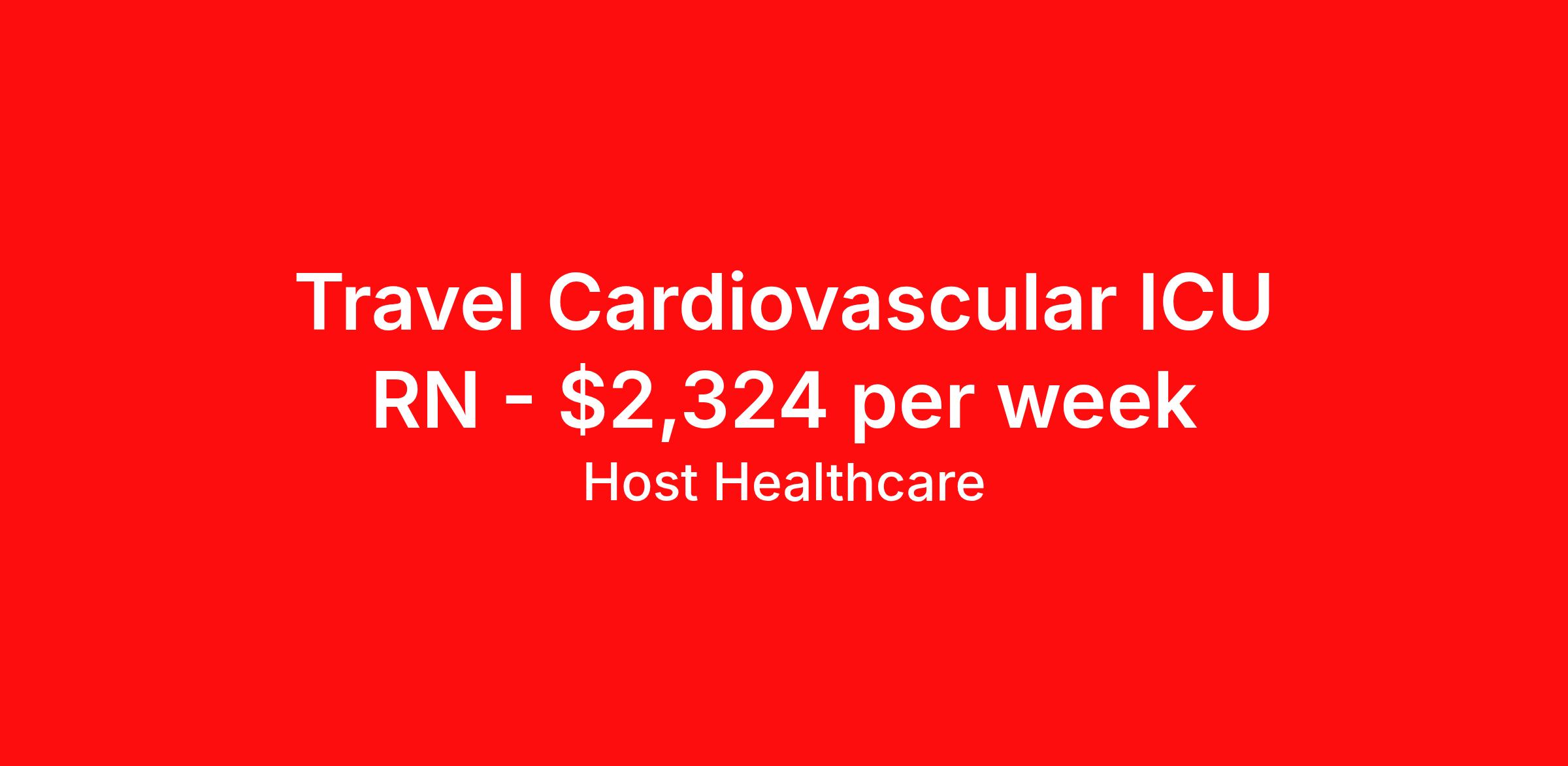 Host Healthcare is seeking a travel nurse RN CVICU for a travel nursing job in Oklahoma City, Oklahoma. Job Description & Requirements Specialty: CVICU Discipline: RN Start Date: 04/06/2026 Duration: 13 weeks 36 hours per week Shift: 12 hours, nights Employment Type: Travel Host Healthcare Job ID a1fVX000002yfojYAA. Pay package is based on 12 hour shifts and 36 hours per week (subject to confirmation) with tax-free stipend amount to be determined. Posted job title: RN - CVICU About Host Healthcare At Host Healthcare, we provide a truly comfortable experience as you explore your travel nursing, therapy, or allied career. We make your travel healthcare journey easy by taking care of all the details, so you don’t have to. We are on a mission to help others live better and we do this by helping the healers of the world be as comfortable as possible. With access to tens of thousands of travel nursing, therapy, and allied jobs in all 50 states, our responsive and friendly recruiters find your dream position based on what’s important to you. During your assignment, get access to premium benefits, including Day 1 medical that continues up to 30 days between assignments, 401K matching, travel reimbursements, dedicated housing support, and more. We also offer 24/7 support from our team and access to our on-staff clinicians so you can feel comfortable and confident throughout your entire assignment. Travel comfortably with Host Healthcare. Benefits Referral bonus School loan reimbursement Vision benefits Wellness and fitness programs Company provided housing options License and certification reimbursement Life insurance Medical benefits Mileage reimbursement Pet insurance Discount program Employee assistance programs Guaranteed Hours Health savings account Holiday Pay 401k retirement plan Continuing Education Dental benefits