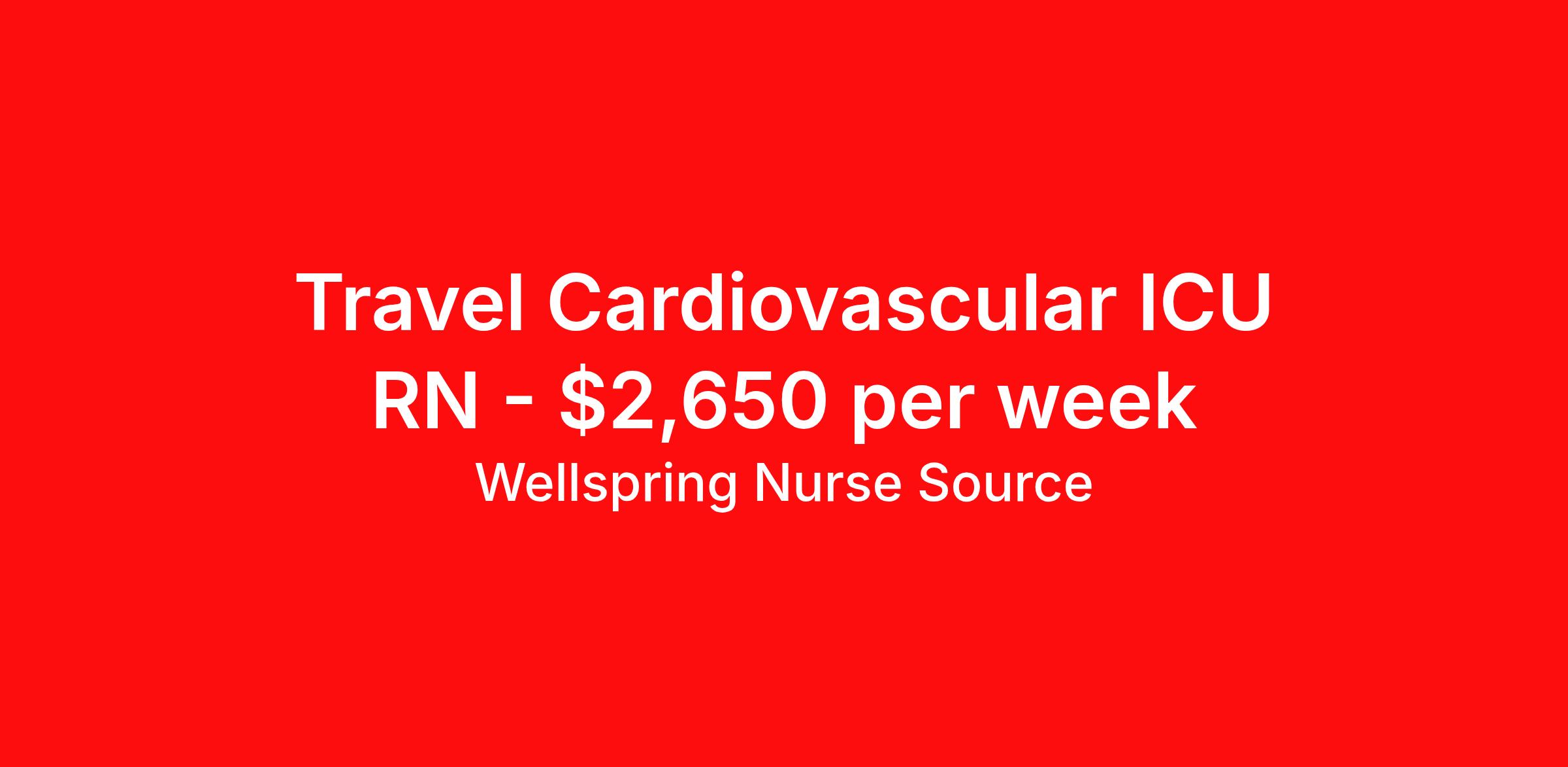 Wellspring Nurse Source is seeking a travel nurse RN CVICU for a travel nursing job in Great Falls, Montana. Job Description & Requirements Specialty: CVICU Discipline: RN Start Date: ASAP Duration: 13 weeks 36 hours per week Shift: 12 hours, nights Employment Type: Travel Wellspring Nurse Source Job ID 36059446. Pay package is based on 12 hour shifts and 36.0 hours per week (subject to confirmation) with tax-free stipend amount to be determined. Posted job title: RN CVICU About Wellspring Nurse Source Wellspring is nurse owned and operated which means that we get you, we stand behind you, and we advocate for you. We are 100% committed to helping you find your best job at the best rate. We are unwavering in our commitment to supporting our clinicians on every step of their travel adventure, assisting with everything from onboarding and payroll to on-the-job clinical support with a dedicated Clinician Success Team. You’re not just a number at Wellspring, you’re a valued member of our family. Join us and experience the Wellspring difference.