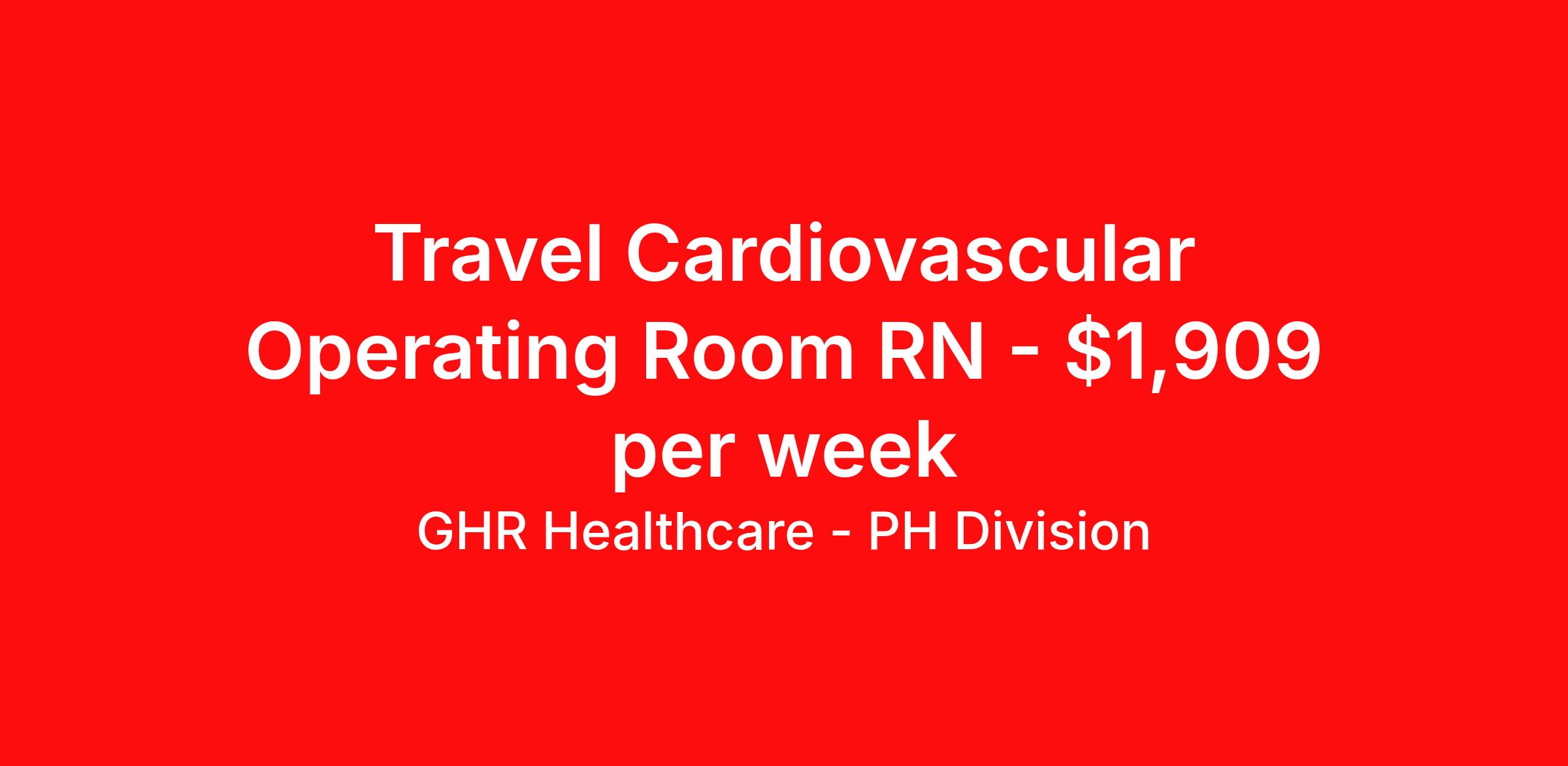 GHR Healthcare - PH Division is seeking a travel nurse RN CVOR for a travel nursing job in Kissimmee, Florida. Job Description & Requirements Specialty: CVOR Discipline: RN Start Date: ASAP Duration: 13 weeks 36 hours per week Shift: 12 hours Employment Type: Travel Planet Healthcare Job ID 76394247. Pay package is based on 12 hour shifts and 36 hours per week (subject to confirmation) with tax-free stipend amount to be determined. About GHR Healthcare - PH Division For over 30 years, GHR Healthcare has been the bridge between healthcare professionals and the facilities that need them nationwide. We're committed to uncovering your ideal fit, supported by GHR's dedication to competitive compensation, transparent communication, and a devoted team that genuinely cares about your career journey. You can trust us to stand by your side as your advocate, confidante, and partner in advancing your career. At GHR, care and consideration are at the heart of everything we do. Visit ghrhealthcare.com to learn more.