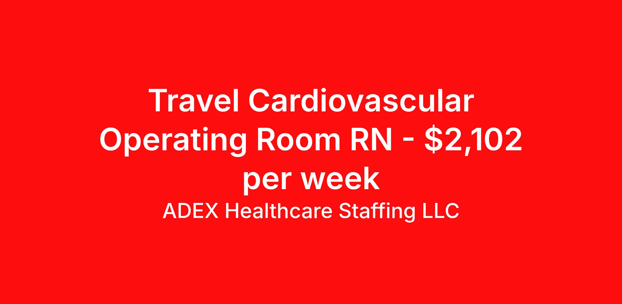 ADEX Healthcare Staffing LLC is seeking a travel nurse RN CVOR for a travel nursing job in Fort Worth, Texas. Job Description & Requirements Specialty: CVOR Discipline: RN Start Date: ASAP Duration: 13 weeks 36 hours per week Shift: 12 hours, days Employment Type: Travel RN Position Job Notes: Travel or Local Registered Nurse needed for ASAP start. A minimum of 2 years of recent hospital bedside experience is required. Candidates must be able to start within 5 weeks. Opportunity for extension upon successful completion of the initial assignment. $750 referral bonus available. Opportunity: RN - Cardiovascular Surgery Job Details: • Work varied shifts in cardiovascular operating room (CVOR) • Travel nursing assignment • Shift times are varied based on facility needs • Single position available • Provide nursing care for cardiovascular surgical procedures • Work in specialized operating room environment Facility: This healthcare facility provides comprehensive cardiovascular surgical services with specialized operating rooms dedicated to heart and vascular procedures. The facility maintains state-of-the-art equipment and technology to support complex cardiovascular operations, ensuring high-quality patient care and optimal surgical outcomes. The organization focuses on delivering advanced cardiac care services to the community. Location: Fort Worth, TX Fort Worth offers a vibrant blend of Western heritage and modern urban amenities, featuring excellent dining, entertainment, and cultural attractions. The city provides a strong job market, affordable cost of living, and numerous recreational opportunities, making it an attractive destination for healthcare professionals seeking both career growth and quality of life. Adex Job ID 949944. Pay package is based on 12 hour shifts and 36 hours per week (subject to confirmation) with tax-free stipend amount to be determined. About ADEX Healthcare Staffing LLC ADEX has been placing healthcare professionals across the US since 2004. Originally founded in Atlanta, GA, the company's headquarters are now located in Tampa, FL. JCAHO certified since 2009. Benefits Referral bonus