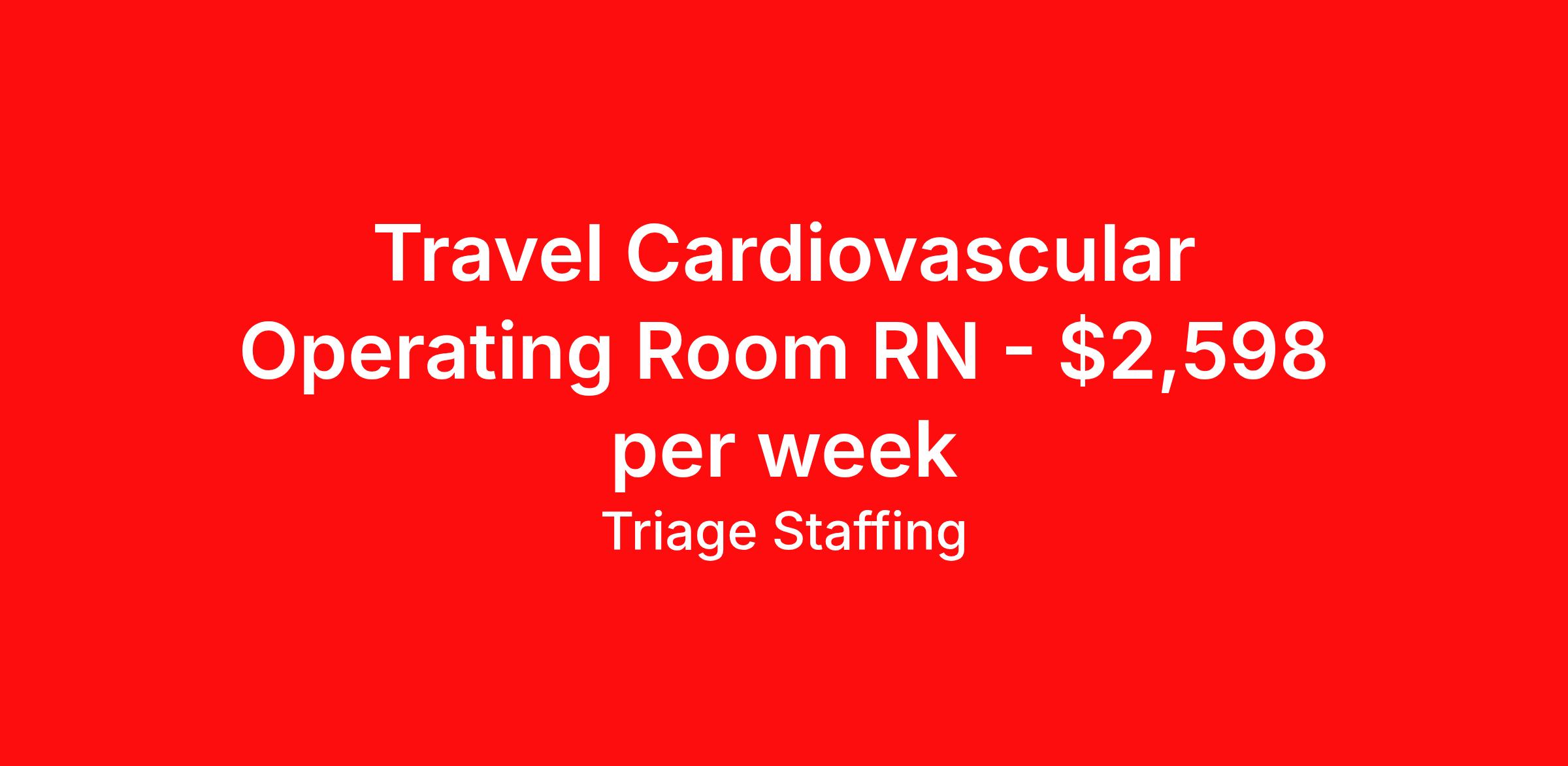 Triage Staffing is seeking a travel nurse RN CVOR for a travel nursing job in Portsmouth, New Hampshire. Job Description & Requirements Specialty: CVOR Discipline: RN Start Date: ASAP Duration: 13 weeks 45 hours per week Shift: 9 hours, days Employment Type: Travel Travel Nursing: Cardiovascular OR Portsmouth Location: Portsmouth Start Date: 1/12/2026 Shift Details: 9H Days 40 hours per week Length: 13 WEEKS Apply for specific facility details.CVOR RN Triage Staffing Job ID C94TRNRN. Posted job title: Nursing: Cardiovascular OR About Triage Staffing At Triage, we prefer to be real . Real about expectations—both ours and yours. Real about how a decision you make today could affect your tomorrows. Real about how compensation actually works. Real about how great—or grating—your next supervisor may be. Being real allows everyone at Triage to be ready . Ready to serve you with real honesty. So if that gig near the ocean is really no day at the beach, or that third shift comes with a second-class rate, we tell you. So you can be ready, too. We staff all five major divisions of acute care—nursing, lab, radiology, cardiopulmonary and rehab therapy, offering: - Competitive, custom pay packages - One point of contact for both travelers and facilities (per division) - A reliable recruiter who's got your back throughout your entire assignment - In-house compliance and accounting specialists - A clinical liaison team available 24/7 to offer medical and professional support and career development - A mentoring program that is run and managed by actual clinicians—yeah, you read that right - And more (because of course there’s more) Are we the biggest? No. Are we the best? That’s rather subjective, but we’re trying to be. Will we work like hell to get you as close to your idea of heaven as possible? Yes. Yes, we will. Benefits: Day One comprehensive, nationwide insurance plans for health, vision and dental and life—including a HSA option Day One 401(k) program with employer-matching contributions once eligible Facility cancelling protection—your time is money on and off-the-clock Guaranteed hours Weekly paychecks via direct deposit Earned vacation bonuses for time worked Paid holidays Employee assistance program (EAP)—your mental health is important, too Continuing education, certification and licensing reimbursement Workers comp—because accidents happen Top-rated professional liability insurance Company provided housing options Referral bonus—$750 in your pocket after they’ve completed a 13-week assignment
