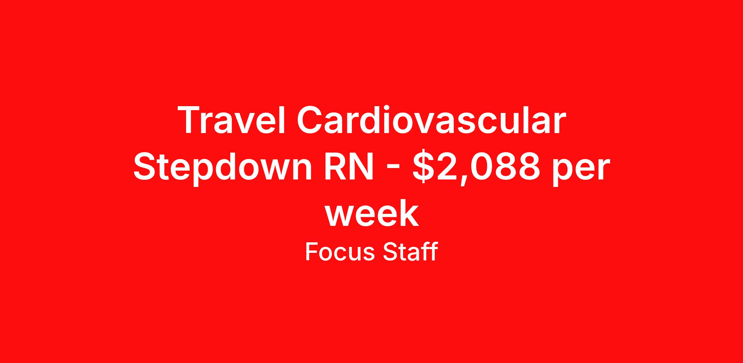 Travel Cardiovascular Stepdown RN - $2,088 per week