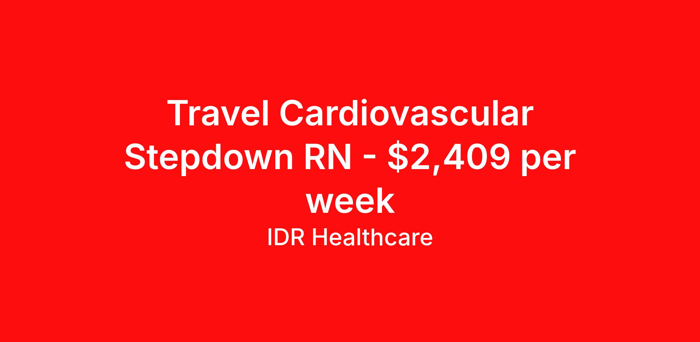 IDR Healthcare is seeking a travel nurse RN Cardiac Stepdown for a travel nursing job in Omaha, Nebraska. Job Description & Requirements Specialty: Cardiac Stepdown Discipline: RN Start Date: 04/13/2026 Duration: 13 weeks 36 hours per week Shift: 12 hours, days Employment Type: Travel IDR Healthcare is an awarding winning staffing firm that believes it is a privilege and awesome responsibility to serve those who selflessly care for others. Our mission is to empower healthcare professionals to achieve their fullest potential both personally and professionally while they create positive change within the healthcare community. We exercise true grit, tenacity, and authenticity while embracing and ownership mindset to go above and beyond providing healthcare professionals a world class experience. We are employee owned and our travelers and clinicians earn shares/equity by just completing multiple assignments! We have been named SIA’s Fastest Growing Staffing Firms and have won ClearlyRated® Best of Staffing for 11 consecutive years! This cements our commitment to clinician satisfaction earning top net promoter scores putting us in the top 2% of agencies in North America! TravelFarWithIDR and see what an extraordinary experience is all about! Benefits 2024 World Staffing Best Staffing Firms to Work For! ESOP (Equity) Healthcare Benefits for up to 30 days Between Assignments Comprehensive Health Insurance Dental and Vision Insurance Sign-On, Completion, & Referral Bonus Programs License and Certification Reimbursement Weekly Pay and Competitive Compensation Large Network of Clients and Job Opportunities 401k retirement plan Exclusive Assignments IDR Job ID 497501. Pay package is based on 12 hour shifts and 36 hours per week (subject to confirmation) with tax-free stipend amount to be determined. About IDR Healthcare IDR Healthcare is an awarding winning staffing firm that believes it is a privilege and awesome responsibility to serve those who selflessly care for others. Our mission is to empower healthcare professionals to achieve their fullest potential both personally and professionally while they create positive change within the healthcare community. We exercise true grit, tenacity, and authenticity while embracing and ownership mindset to go above and beyond providing healthcare professionals a world class experience. We are employee owned and our travelers and clinicians earn shares/equity by just completing multiple assignments! We have been named SIA’s Fastest Growing Staffing Firms and have won ClearlyRated® Best of Staffing for 11 consecutive years! This cements our commitment to clinician satisfaction earning top net promoter scores putting us in the top 2% of agencies in North America! Help us give back! For every booked assignment, proceeds are donated to St. Jude and Feeding America! Last year we raised over $18,000 for St. Jude and provided over 49,000 meals for children in need. TravelFarWithIDR and see what it is all about! Benefits Weekly pay 401k retirement plan Referral bonus Medical benefits Dental benefits License and certification reimbursement Vision benefits