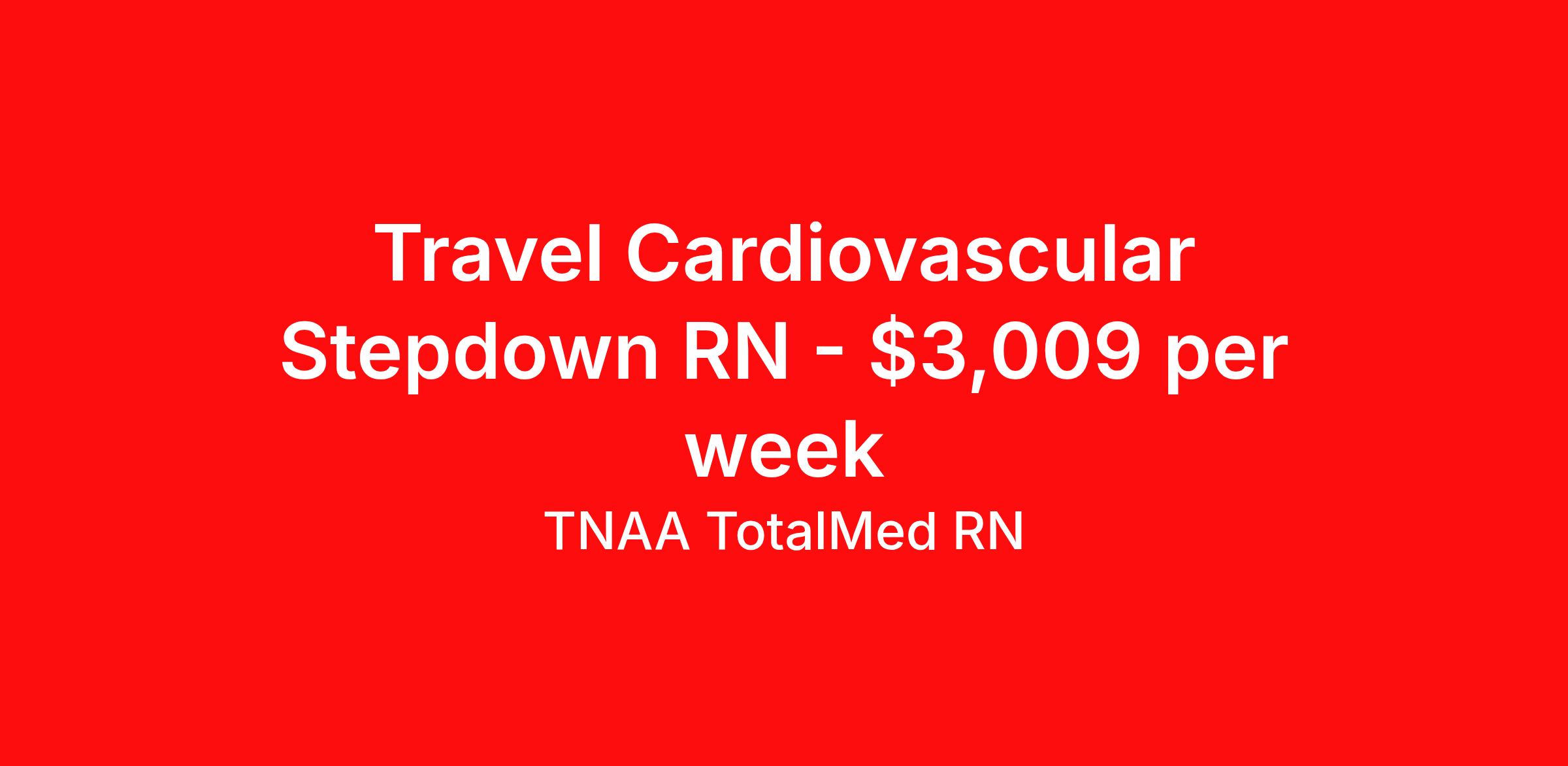 TNAA TotalMed RN is seeking a travel nurse RN Cardiac Stepdown for a travel nursing job in Evansville, Indiana. Job Description & Requirements Specialty: Cardiac Stepdown Discipline: RN Duration: 13 weeks 48 hours per week Shift: 12 hours, nights Employment Type: Travel We're looking for Telemetry RNs for an immediate travel nurse opening in Evansville, IN. The right RN should have 1-2 years' recent acute care experience. Read below for more requirements. As a TELE Travel Nurse, you will provide care by connecting patients to machines that measure heart rate, blood pressure, breathing rate, as well as blood-oxygen levels and electrocardiogram information. These machines then send data to computer screens for RNs to monitor. Telemetry RNs read and interpret the data to better determine patient care. As a TELE Travel Nurse, you should be prepared to perform the following tasks: Provide basic bedside care. Monitor and adjust specialized equipment used on patients, and interpret and record electronic displays. Identify irregular telemetry readings and notify appropriate medical team members. Initiate corrective action whenever information from monitoring equipment shows adverse symptomatology. TELE Travel Nurses should be able to stand and walk for long periods of time, as well as bend, lean and stoop without difficulty. RNs should be able to easily lift 20 pounds. Moving or lifting of patients may require lifting of up to 50 pounds at times. RNs must have specific vision abilities including close vision, distance vision, color vision, peripheral vision, depth perception and ability to adjust focus. Requirements*: BLS, ACLS, NIH, 2 Years * Additional certifications may be required before beginning an assignment. TotalMed Travel Job ID 1354084. Pay package is based on 12 hour shifts and 48 hours per week (subject to confirmation) with tax-free stipend amount to be determined. Posted job title: Telemetry - TELE RN - Travel Nurse About TNAA TotalMed RN TotalMed is a Top Ten, travel nursing and healthcare staffing agency with the mission of igniting purpose in healthcare. The organization staffs nurses, therapists, pharmacists, and other clinicians of all specialties in all 50 states. They offer local and travel jobs and match caregivers with the right organization to assist both facilities and patients. As an organization, they focus on putting highly-skilled staff into facilities to ensure adequate staffing for a better patient experience. TotalMed specializes in recruiting and placing healthcare professionals in travel, PRN, and permanent positions across the country in Nursing and Allied Health. Throughout 2020, the organization filled roles at even the most short-staffed facilities during the most challenging time in healthcare. By matching the right travel healthcare professional with the right organization, TotalMed continues to offer a lifeline to facilities and their patients. Benefits Weekly pay Guaranteed Hours Continuing Education 401k retirement plan Sick pay Wellness and fitness programs Referral bonus Employee assistance programs Medical benefits Dental benefits Vision benefits Benefits start day 1
