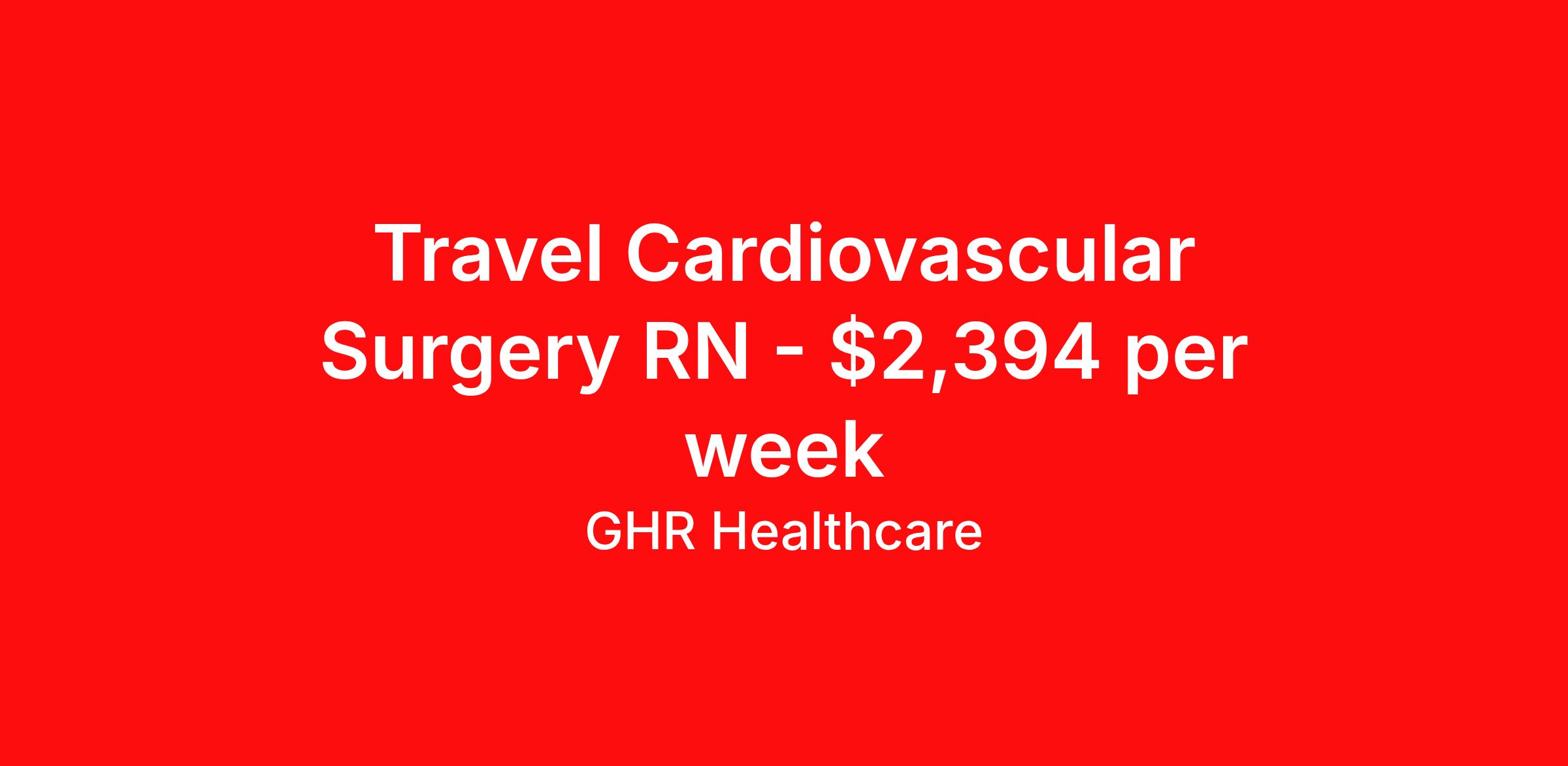 GHR Healthcare is seeking a travel nurse RN CVOR for a travel nursing job in Indianapolis, Indiana. Job Description & Requirements Specialty: CVOR Discipline: RN Start Date: ASAP Duration: 12 weeks 36 hours per week Shift: 12 hours Employment Type: Travel GHR Healthcare Job ID 75691855. Pay package is based on 12 hour shifts and 36 hours per week (subject to confirmation) with tax-free stipend amount to be determined. About GHR Healthcare For over 30 years, GHR Healthcare has been the bridge between healthcare professionals and the facilities that need them nationwide. We're committed to uncovering your ideal fit, supported by GHR's dedication to competitive compensation, transparent communication, and a devoted team that genuinely cares about your career journey. You can trust us to stand by your side as your advocate, confidante, and partner in advancing your career. At GHR, care and consideration are at the heart of everything we do. Visit ghrhealthcare.com to learn more.